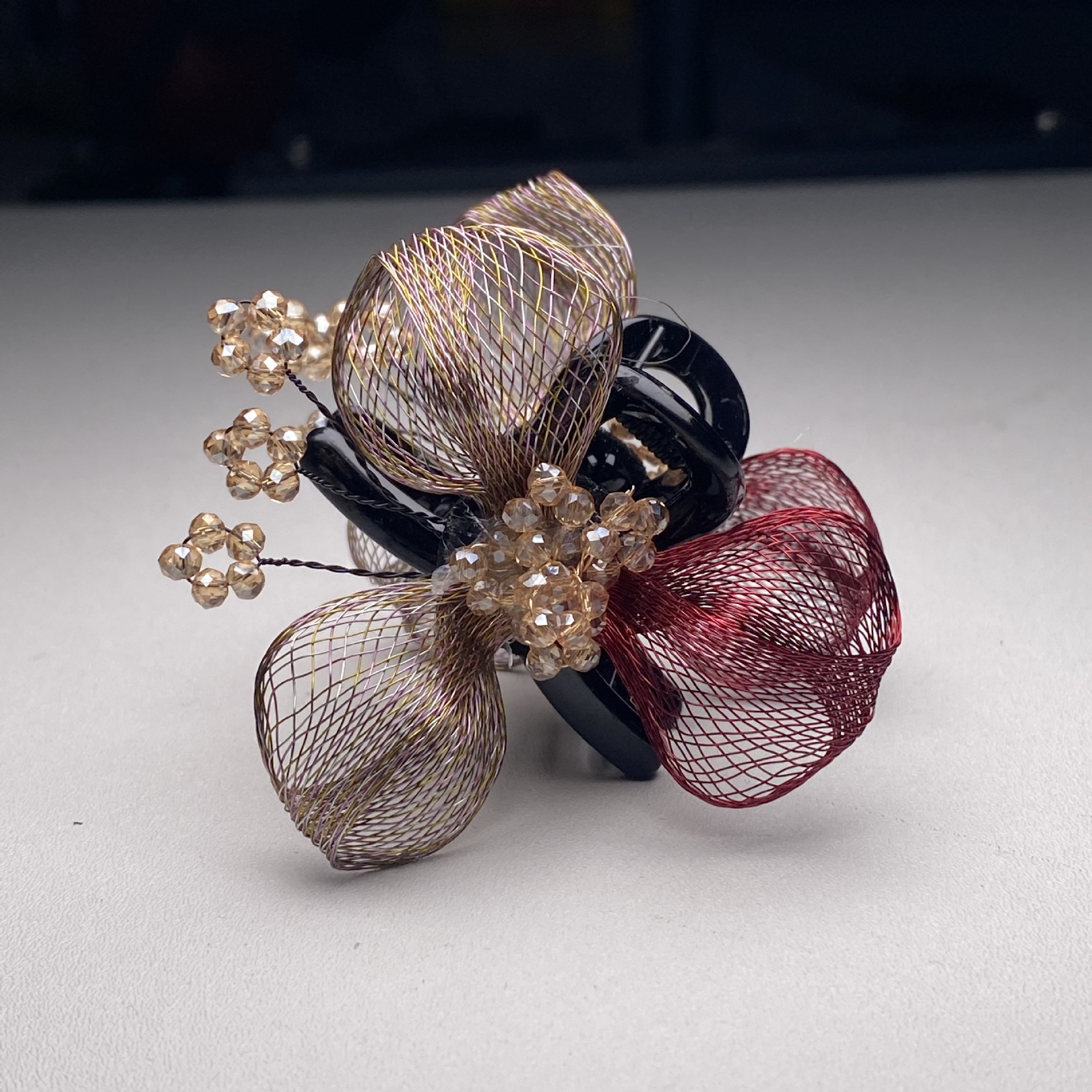 • 와인색 더블 나비 스프링 헤어 클립 8cm 16g