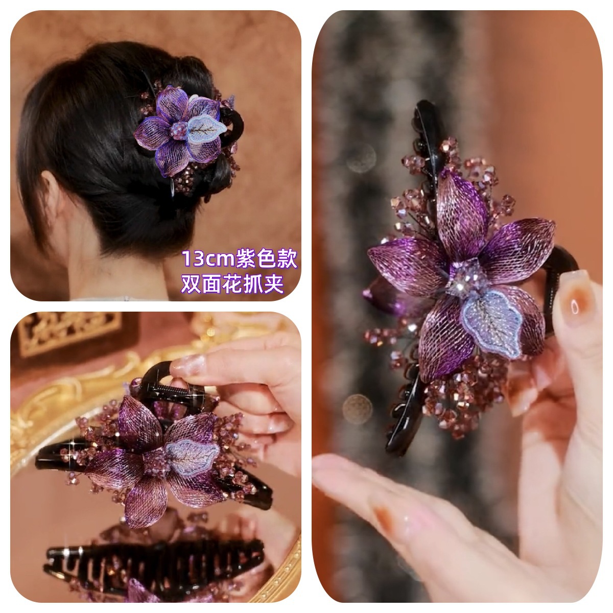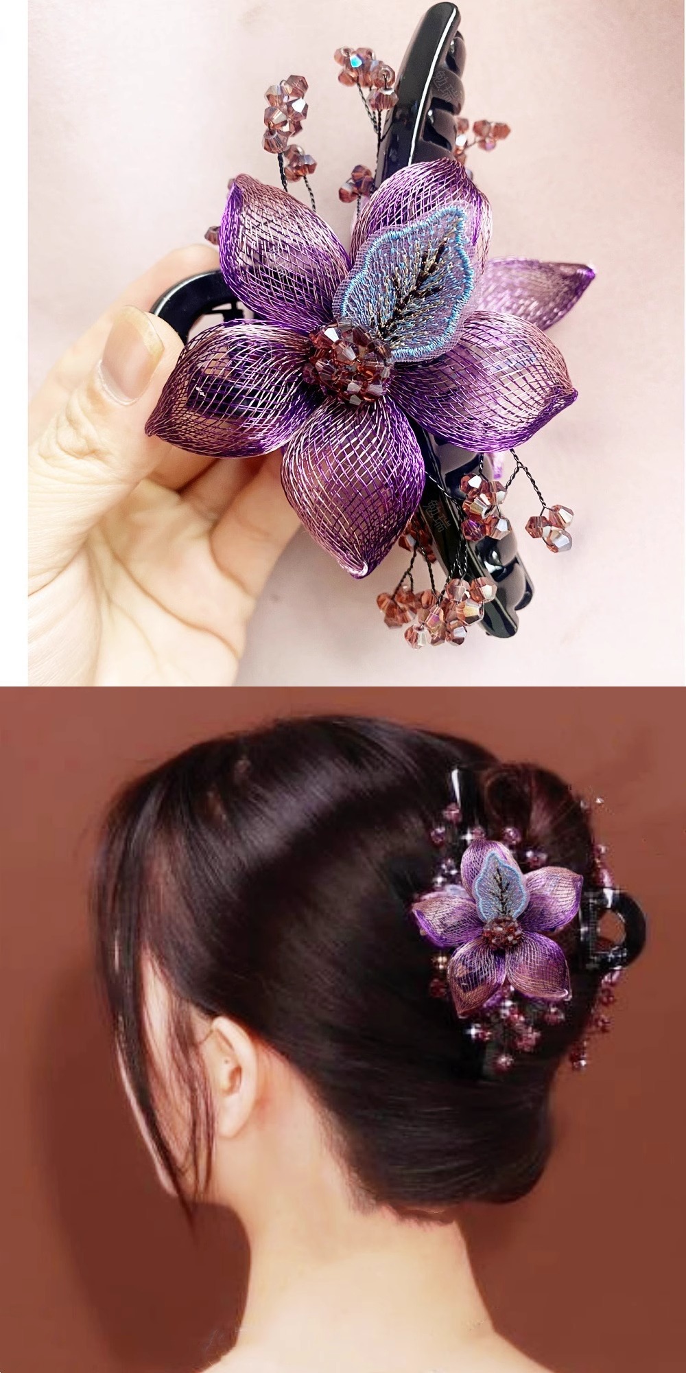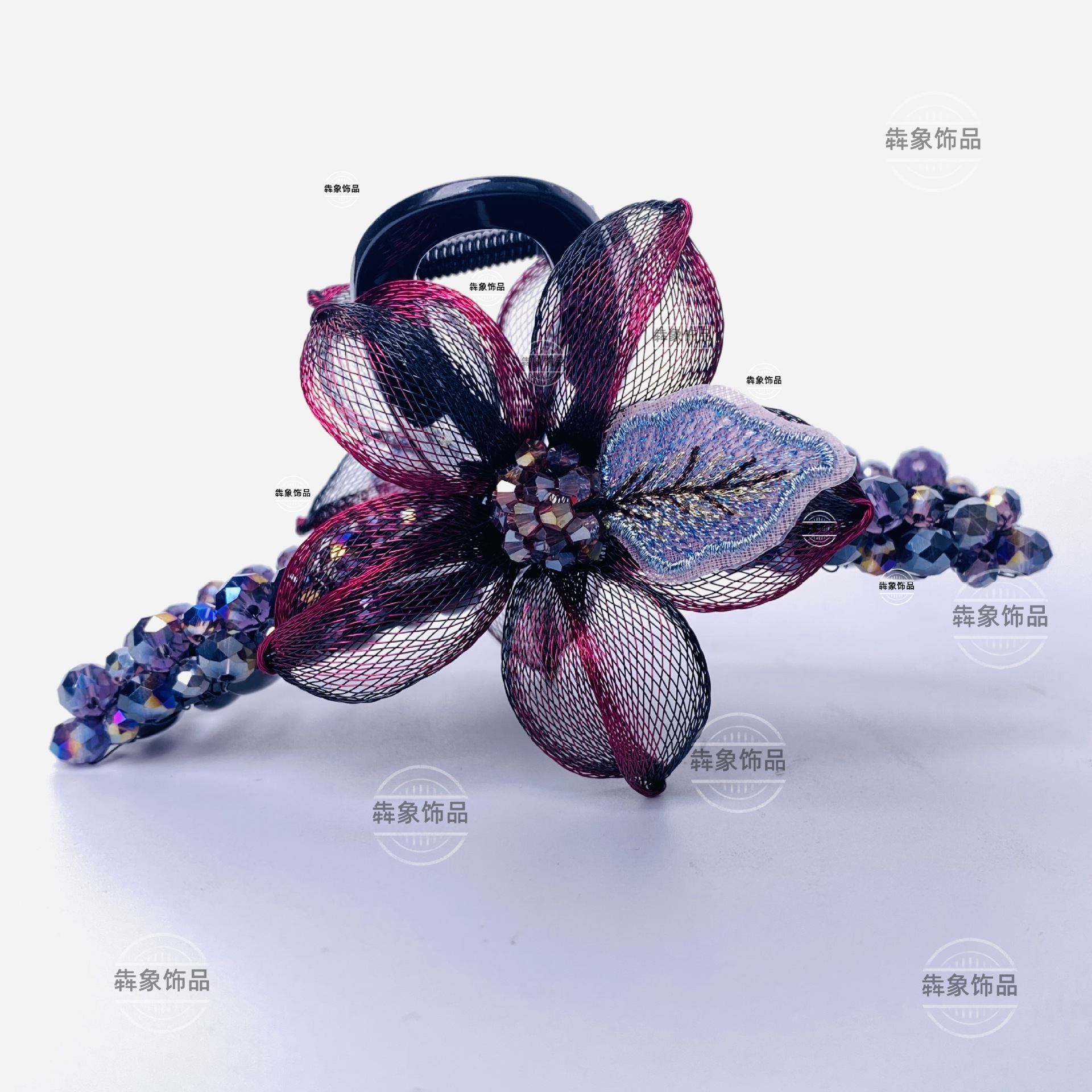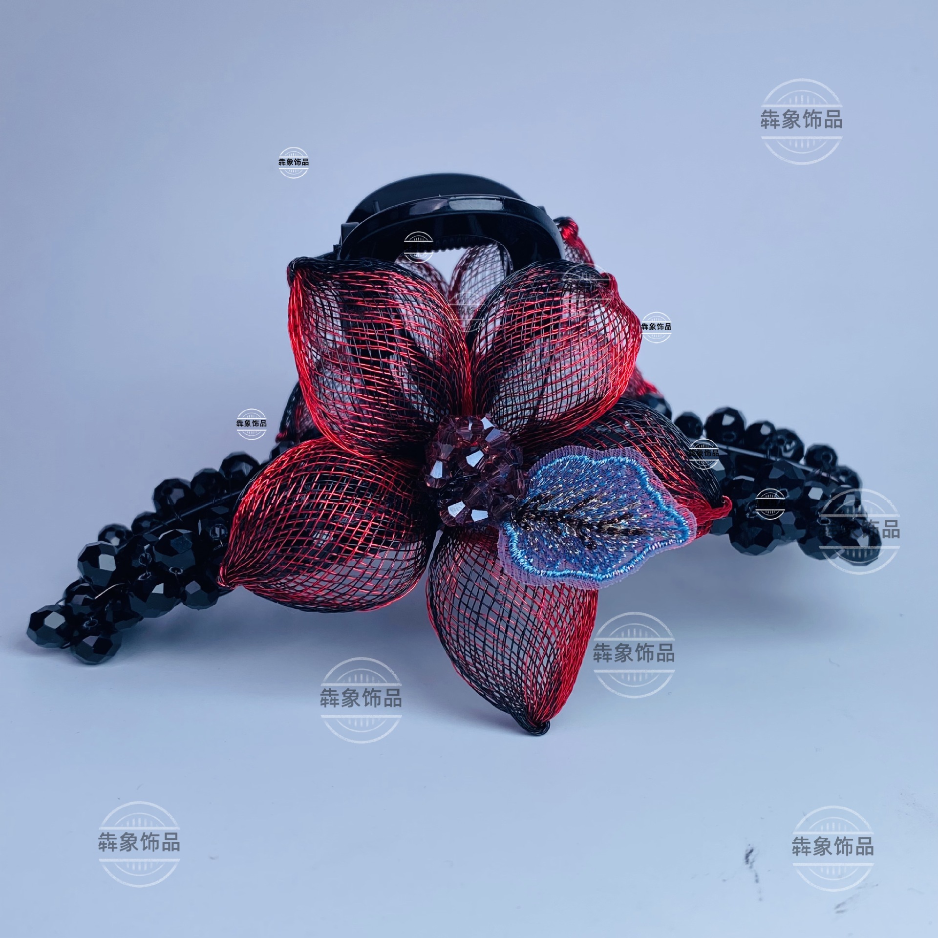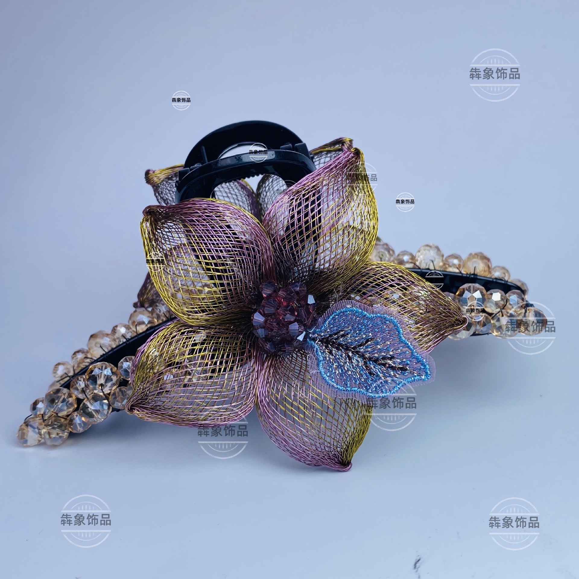한국식 고급 수제 구리 와이어 꼰 꽃 그랩 클립 플라스틱 수지 머리 뒷면 대형 상어 클립