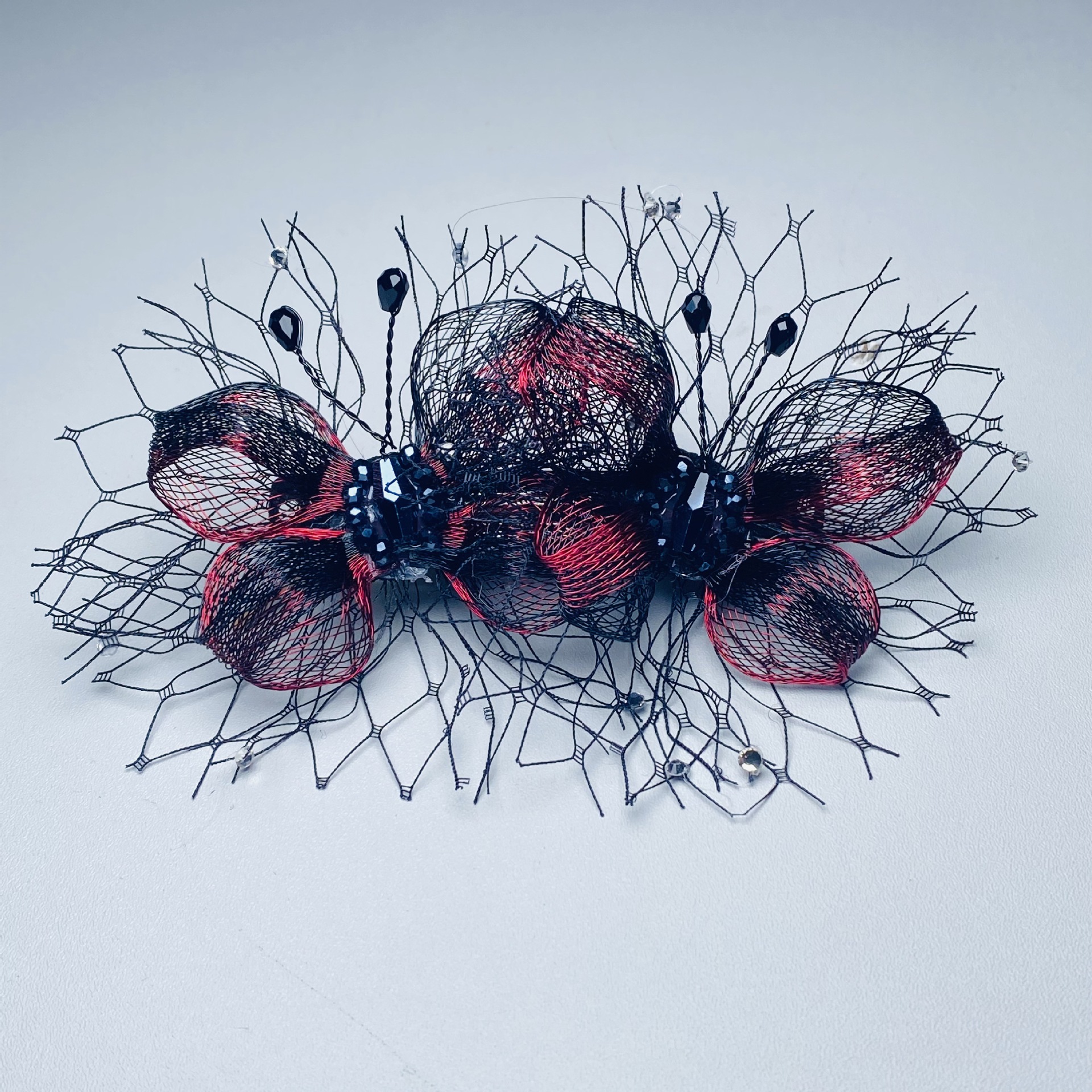 • 【모조 크리스탈 와인 레드 나비】 집게핀 약 13cm 52g
