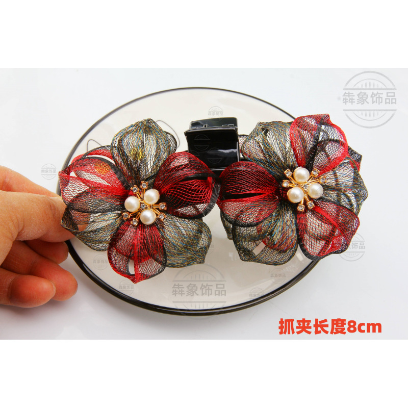 • 한국 스타일 진주 큐빅 배색 플라워 양면 집게핀 (8cm)