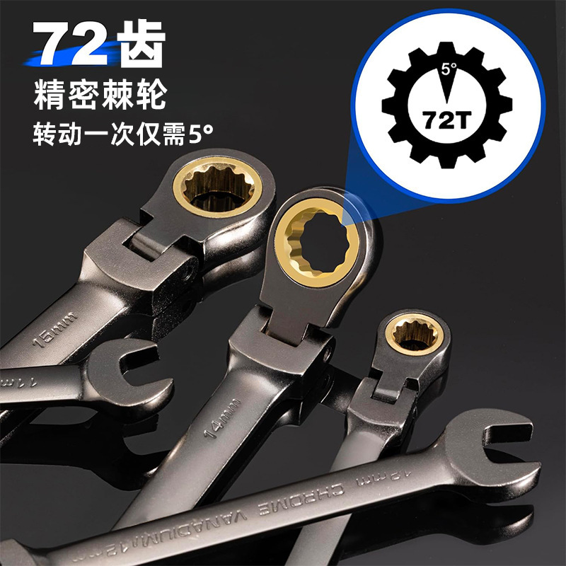 블랙 니켈 유니버설 72 치아 래칫 렌치 이중 목적 렌치 조정 가능한 헤드 래칫 렌치 오픈 Torx 빠르고 노동 절약스토어 가기