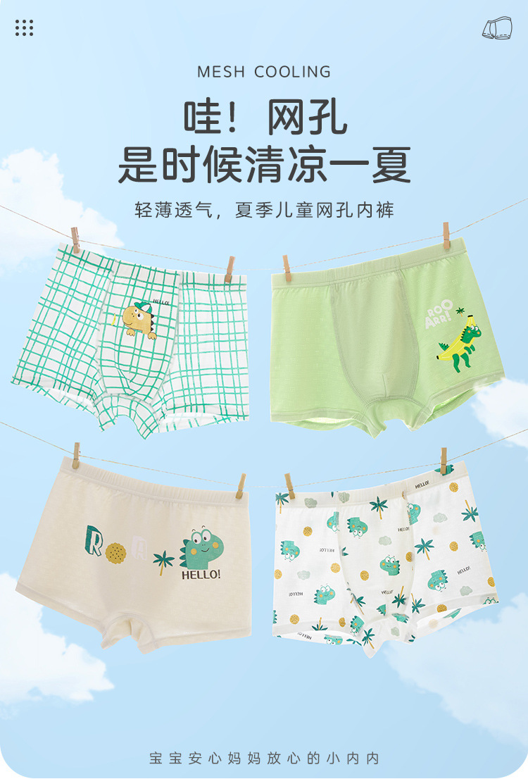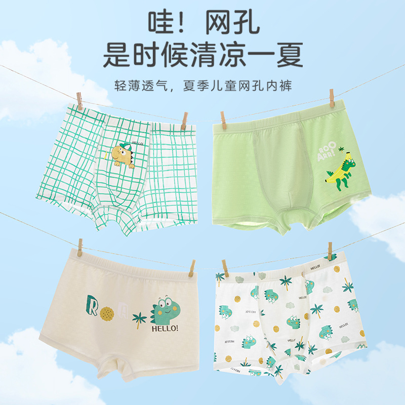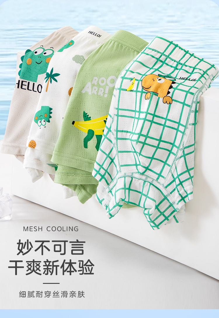 새로운 AiNian 아이스 실크 어린이 속옷 4 팩 여름 얇은 소년 중 큰 어린이 소년 복서 반바지
