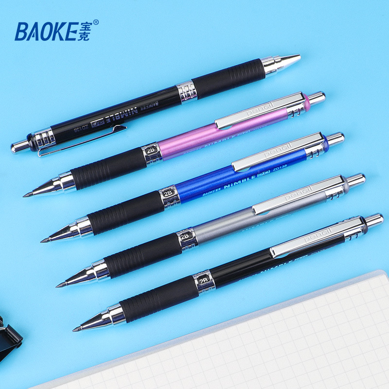 바오커 프레스식 자동연필 HB 학생 미술 드로잉 스케치 시험용 샤프펜슬 0.7 메탈 ZD111