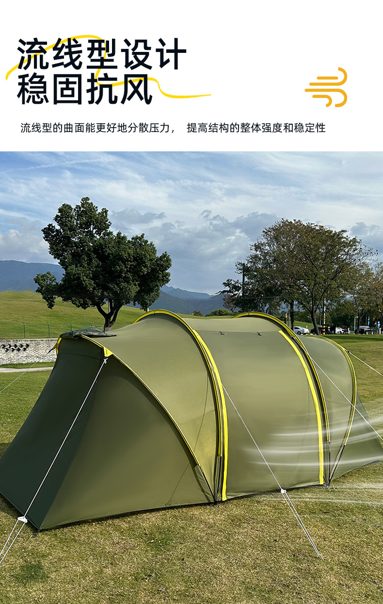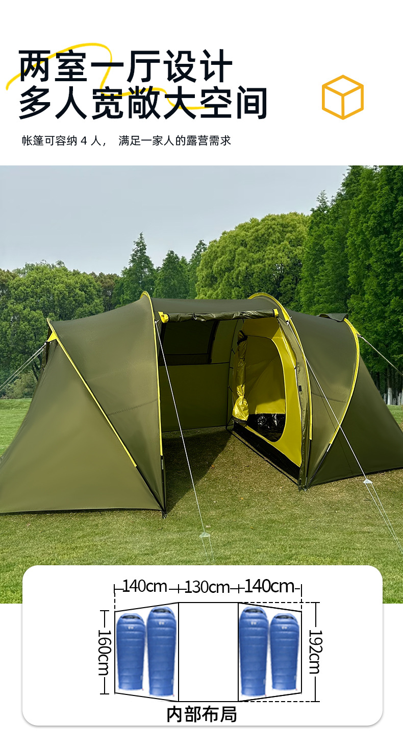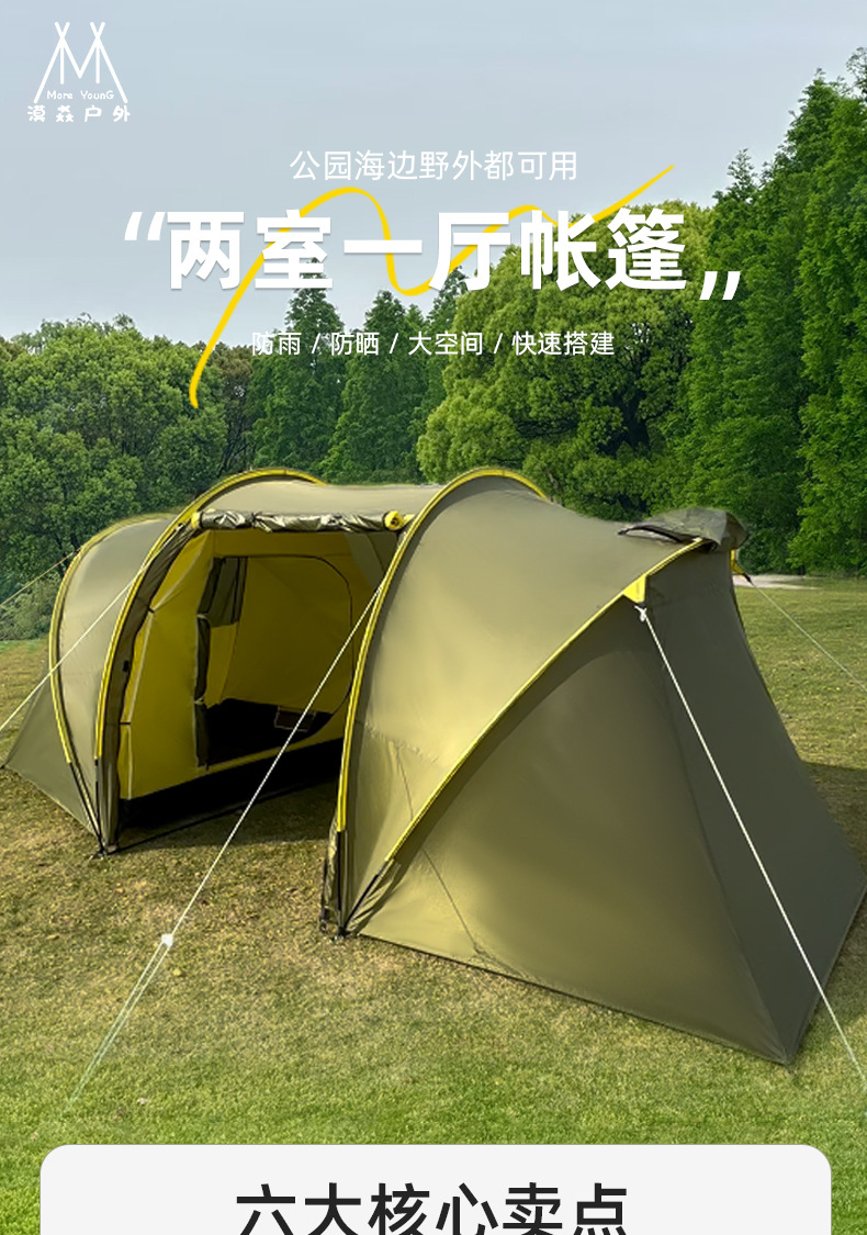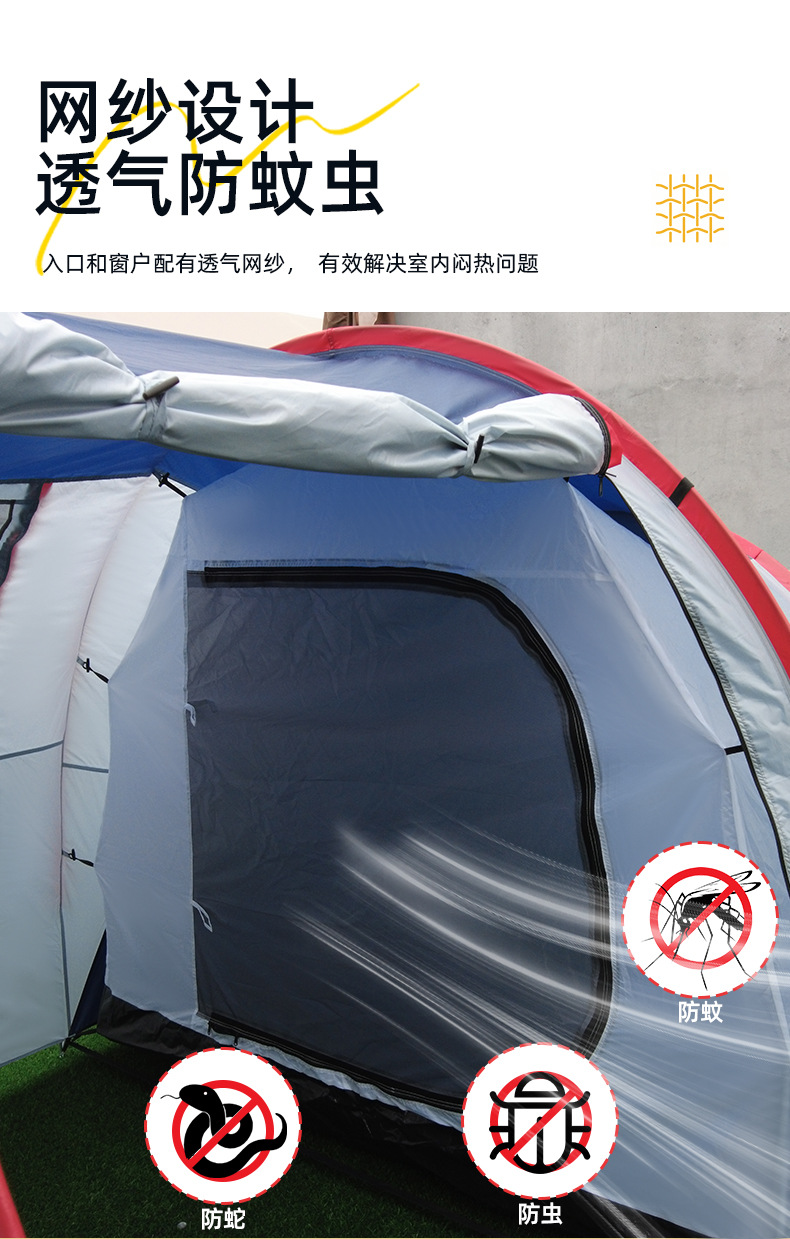 야외 여행 텐트 간단한 건물 터널 텐트 캠핑 가족 텐트 2 방 1 홀 방수 선 스크린 텐트