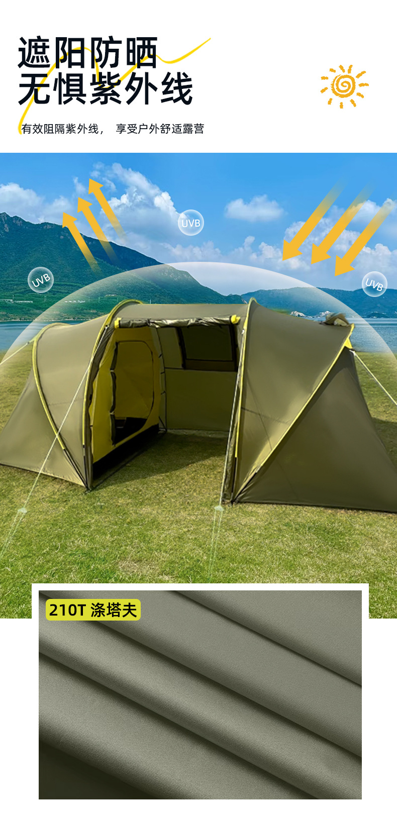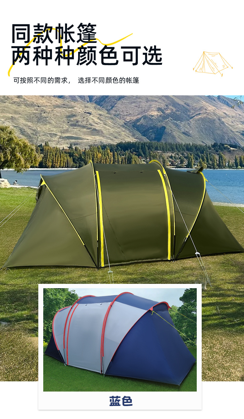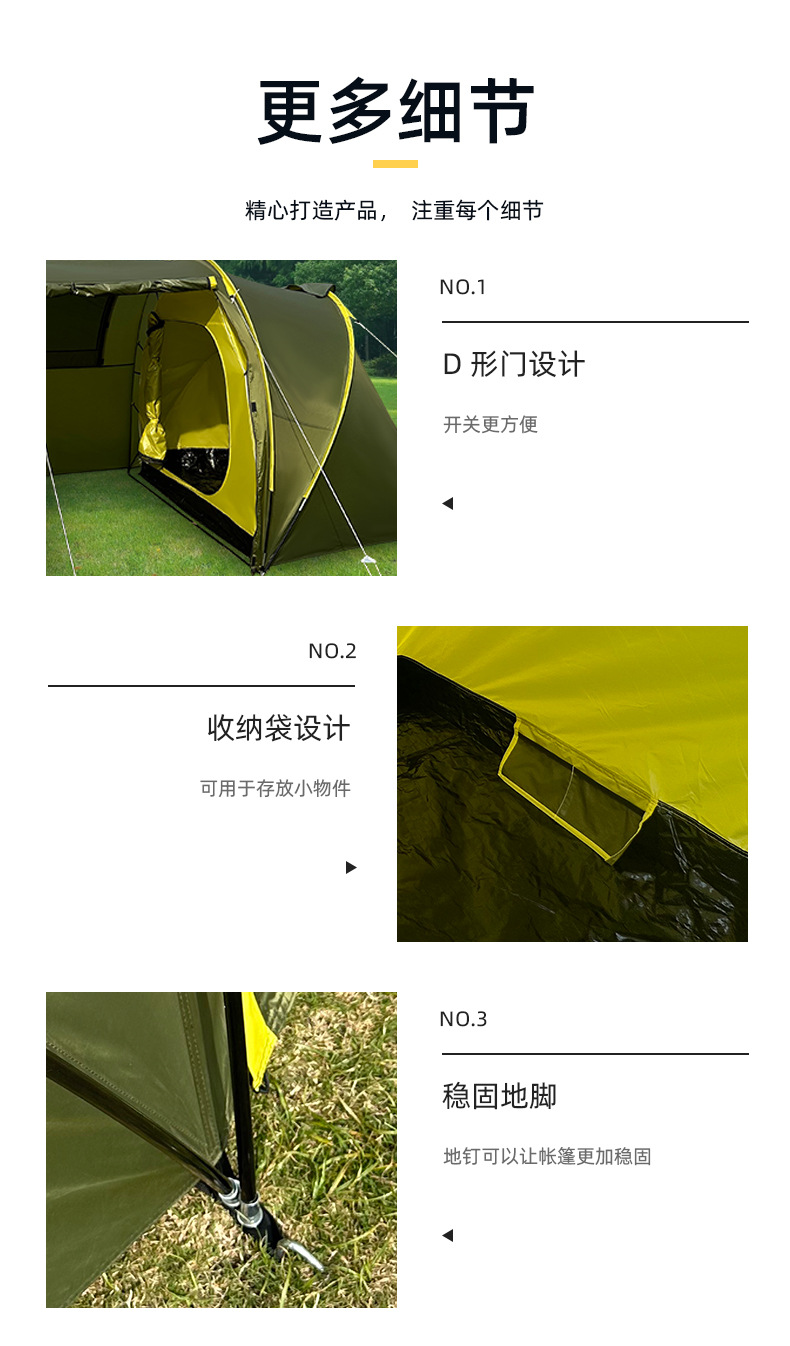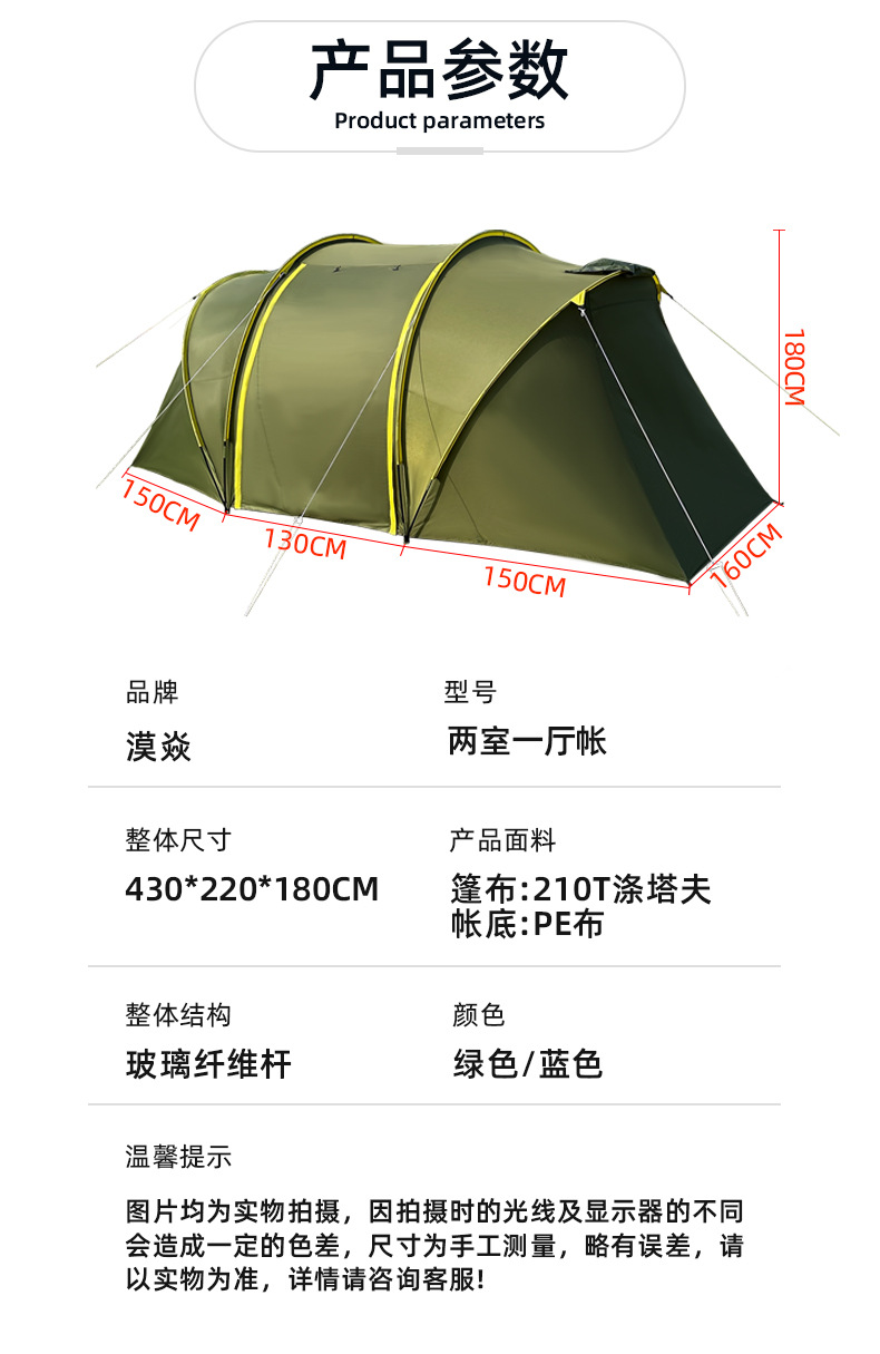 야외 여행 텐트 간단한 건물 터널 텐트 캠핑 가족 텐트 2 방 1 홀 방수 선 스크린 텐트