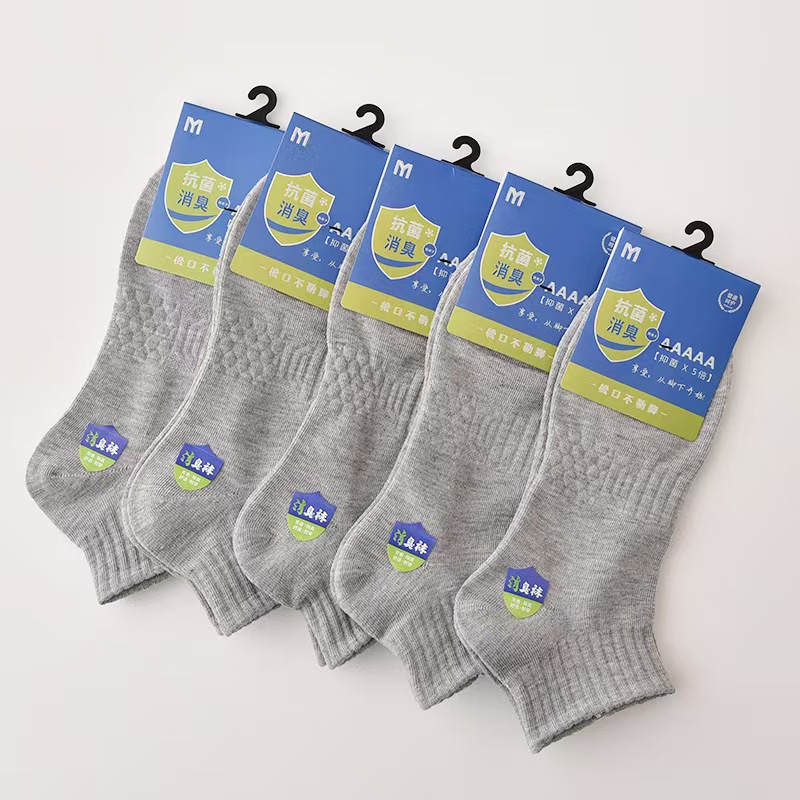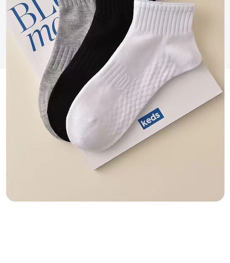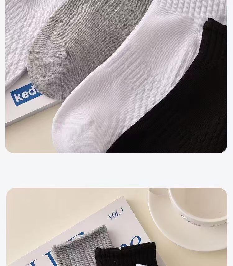 남성용 얇은 봄여름 양말, 흡습, 땀 흡수, 냄새 방지, 흑백 그레이, 심플한 타월 바닥, 충격 흡수, 학생용 중목 양말스토어 가기