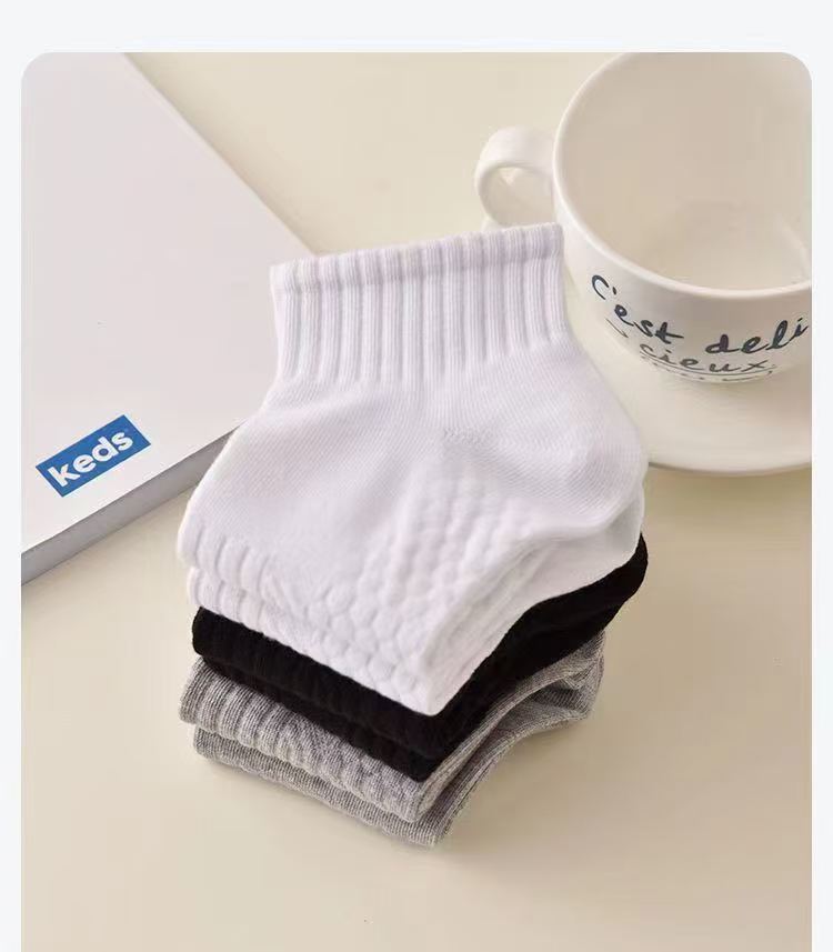 남성용 얇은 봄여름 양말, 흡습, 땀 흡수, 냄새 방지, 흑백 그레이, 심플한 타월 바닥, 충격 흡수, 학생용 중목 양말
