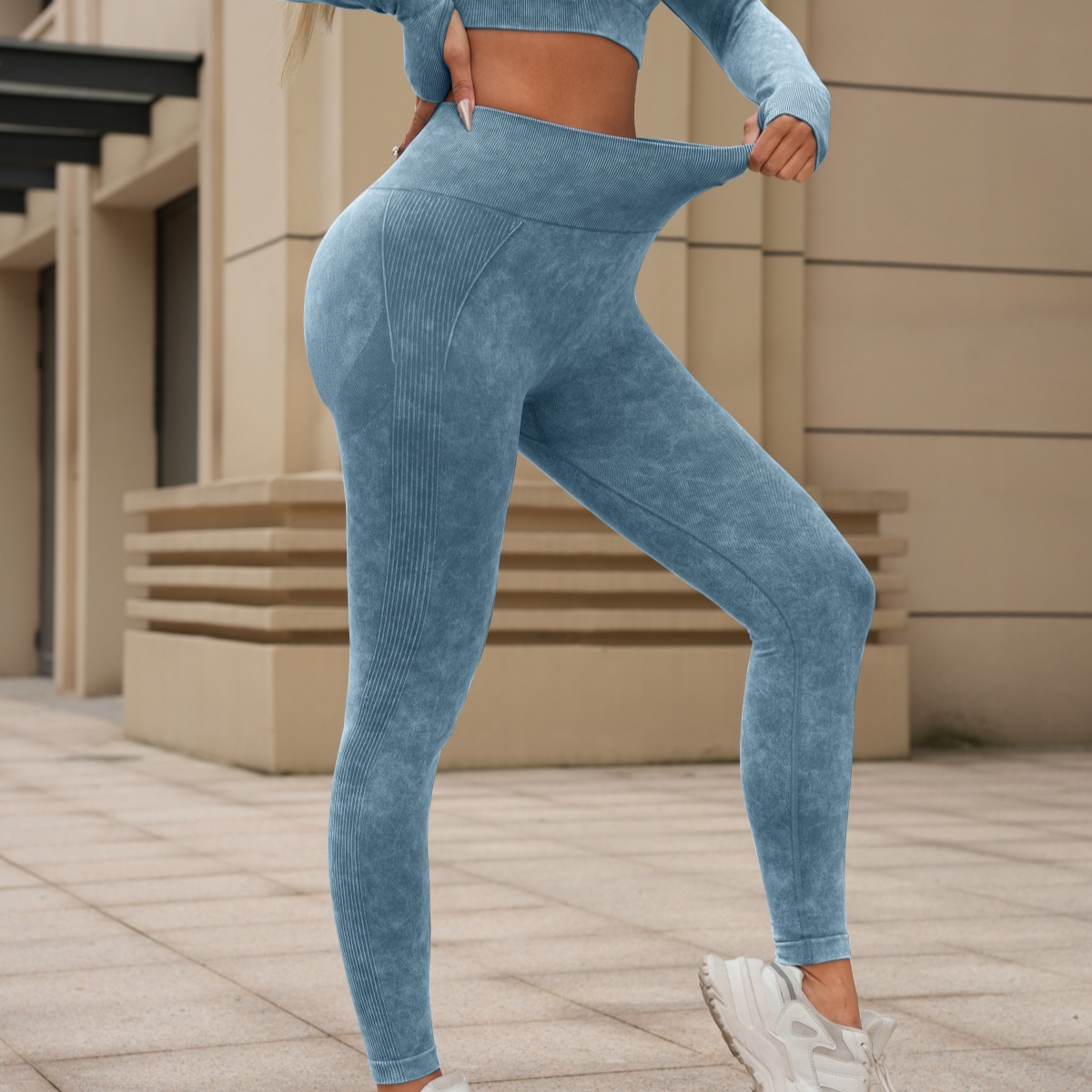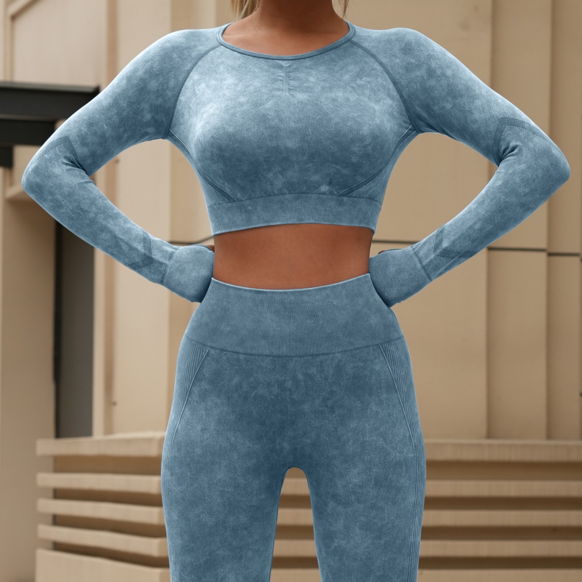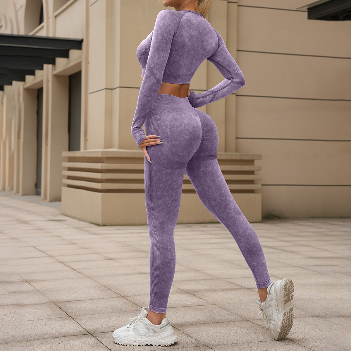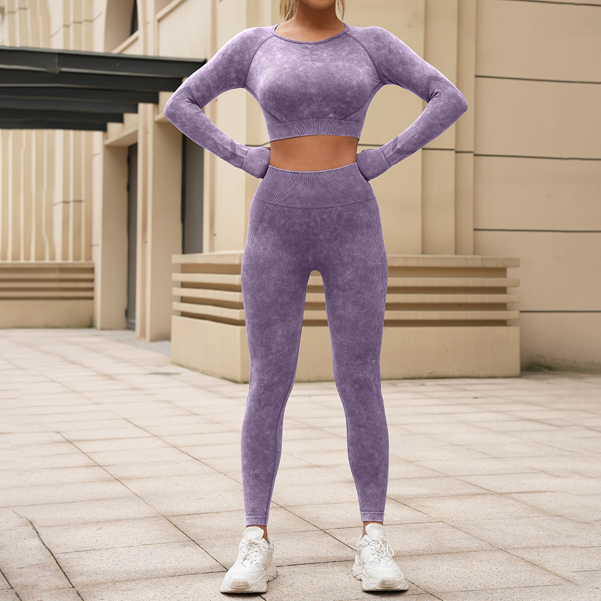 유럽과 미국의 세탁 요가 의류 세트 여성용 긴팔 바지 투피스 세트 슬림핏 허니 힙 세탁 피트니스 바지 세트
