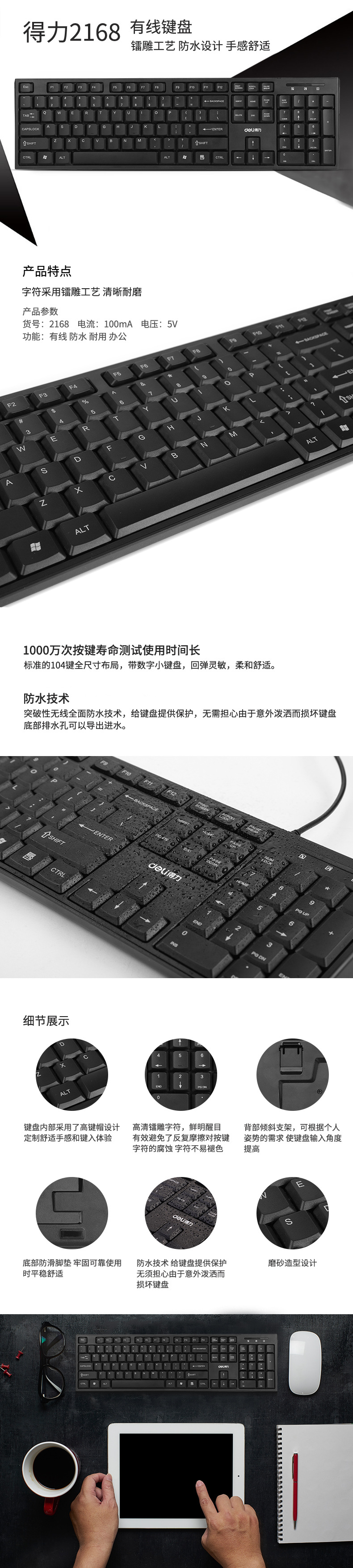 델리 2168 블랙 유선 하이 키캡 키보드 USB 키보드 게이밍 키보드 방수 얇은 디자인스토어 가기