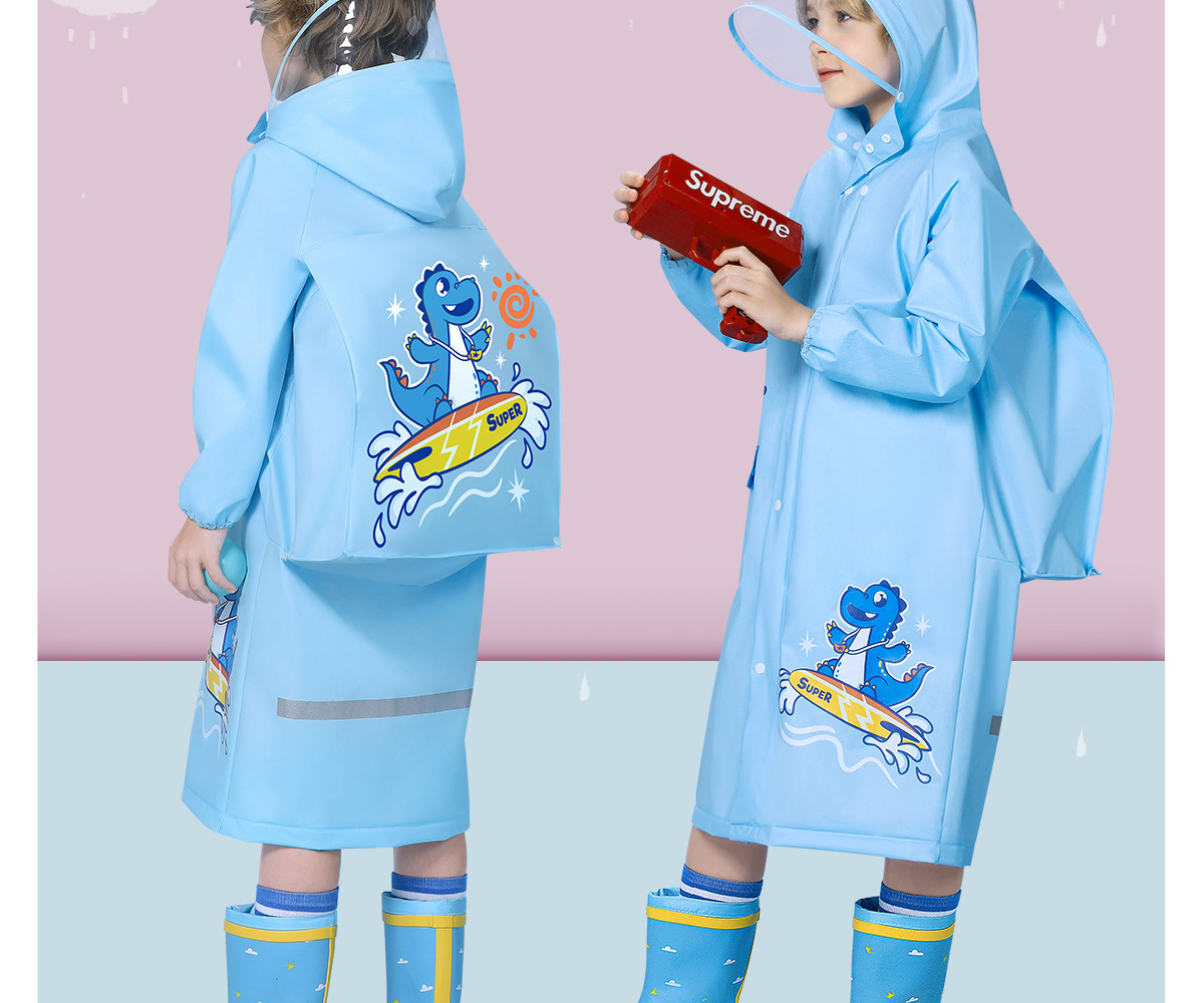 어린이용 긴 기장의 만화 캐릭터 휴대용 EVA 비옷, 남아 여아, 초등학생, 중고등학생용, 책가방 공간이 있는 일체형 비옷스토어 가기
