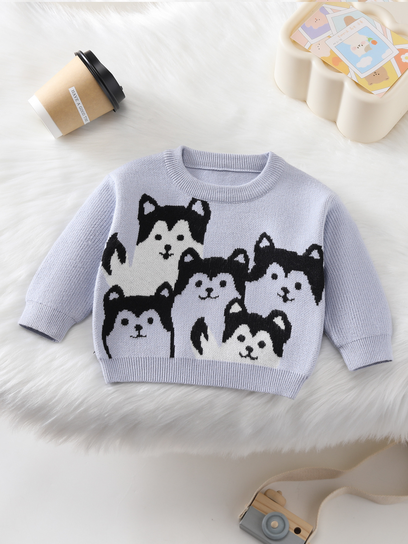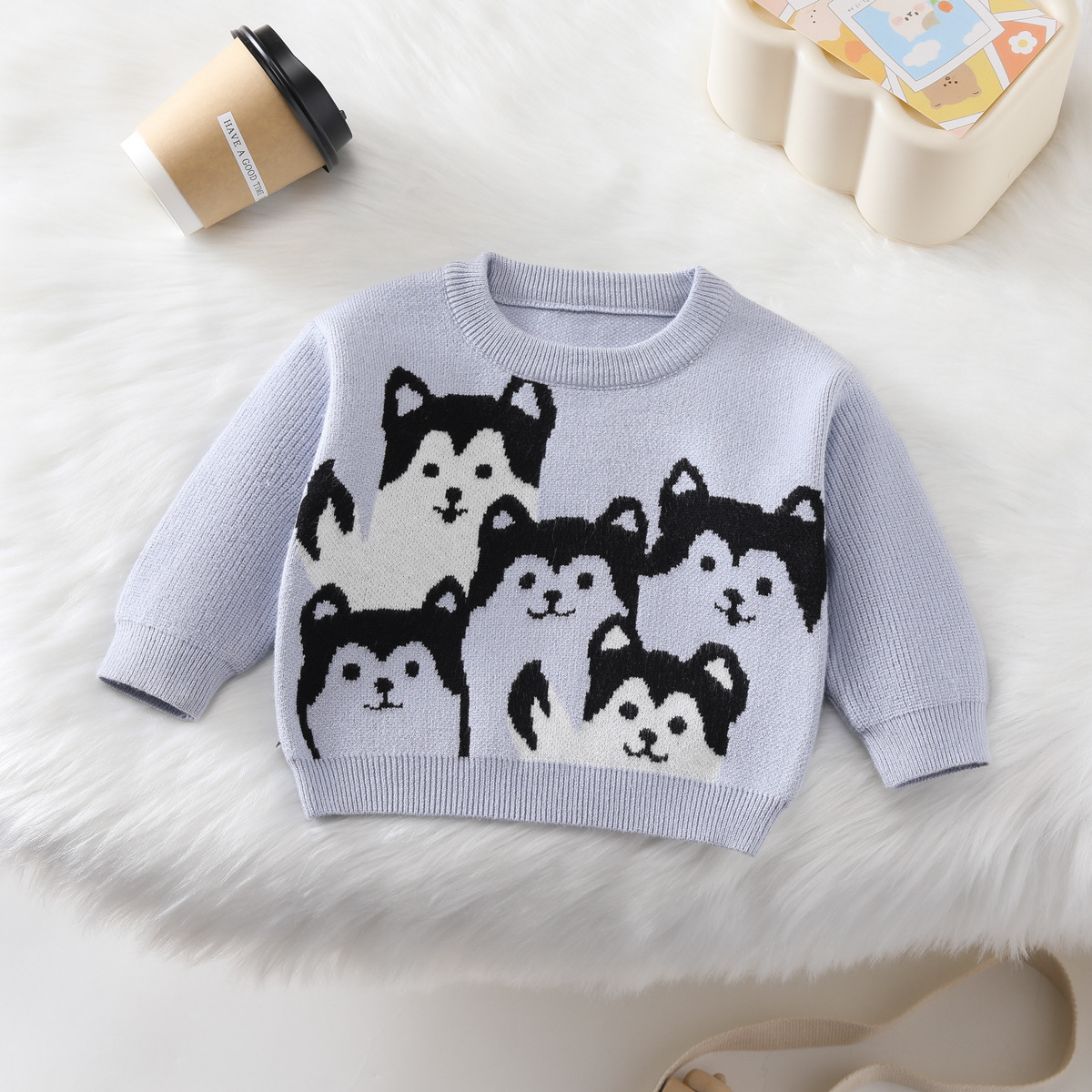• 블루 만화 강아지 풀오버