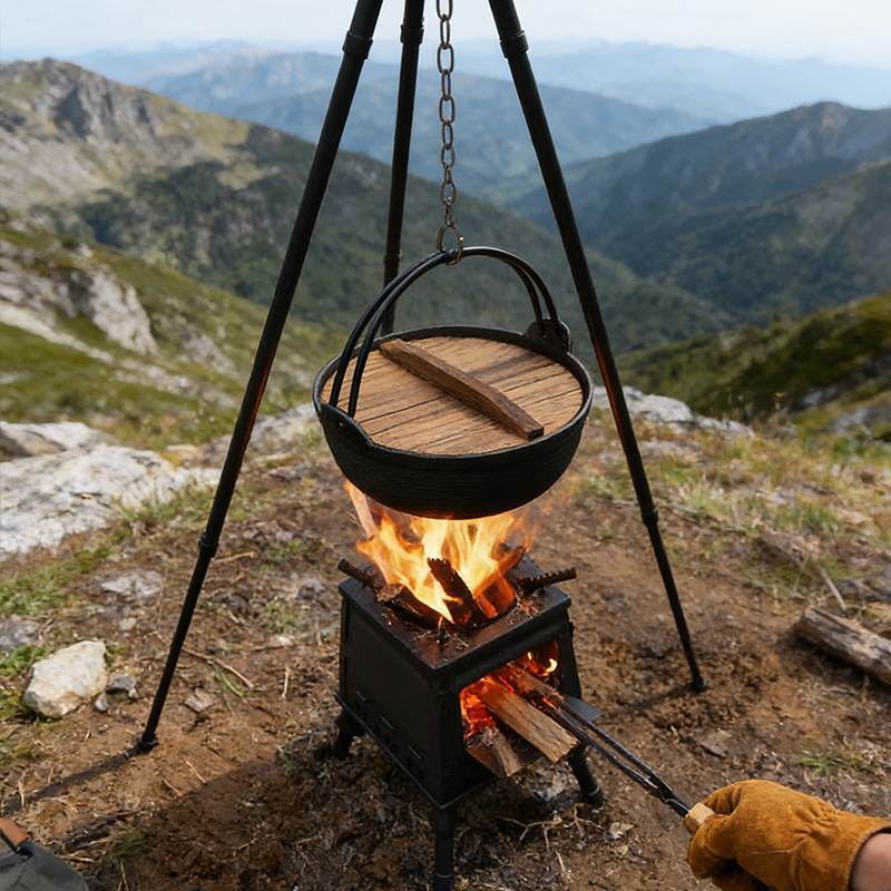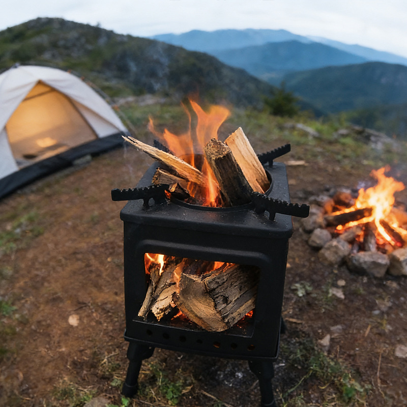 여행 작은 장작 스토브 야외 휴대용 접이식 차가운 넥타이 스틸 작은 장작 스토브 가정용 야외 풀 세트 차 요리