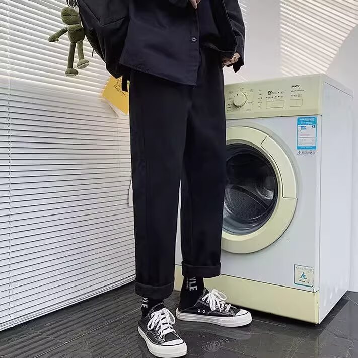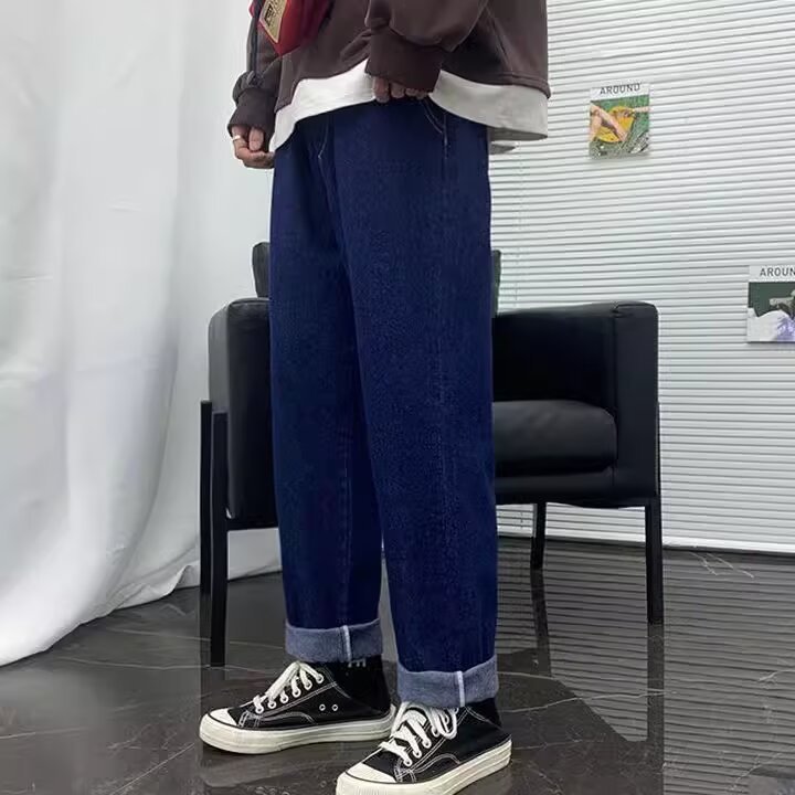 여름 얇은 스트레이트 레그 청바지 남성용 루즈 트렌디 브랜드 한국식 올매치 스타일 웨이스트 자른 남자 트렌디 캐주얼 바지스토어 가기