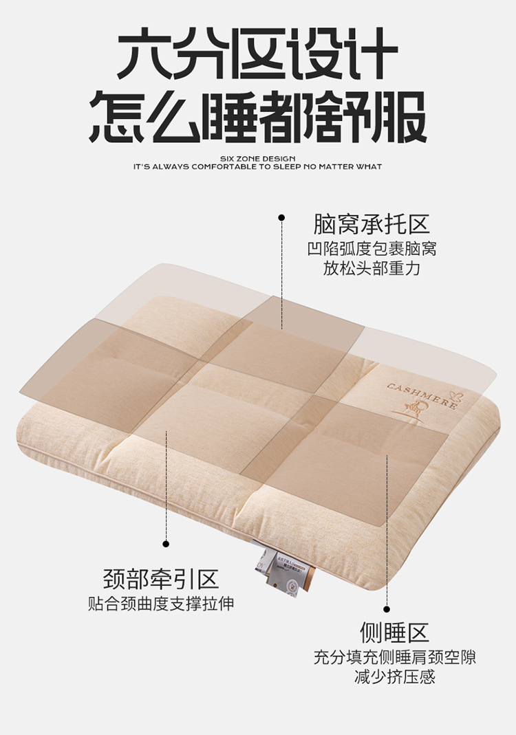 캐시미어 실크 베개 콩 섬유 베개 코어 6 구역 성인 베개 부드러운 잠자는 목 베개 가구 베개스토어 가기