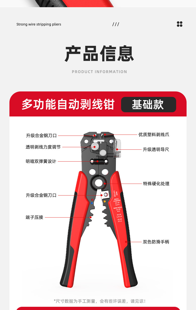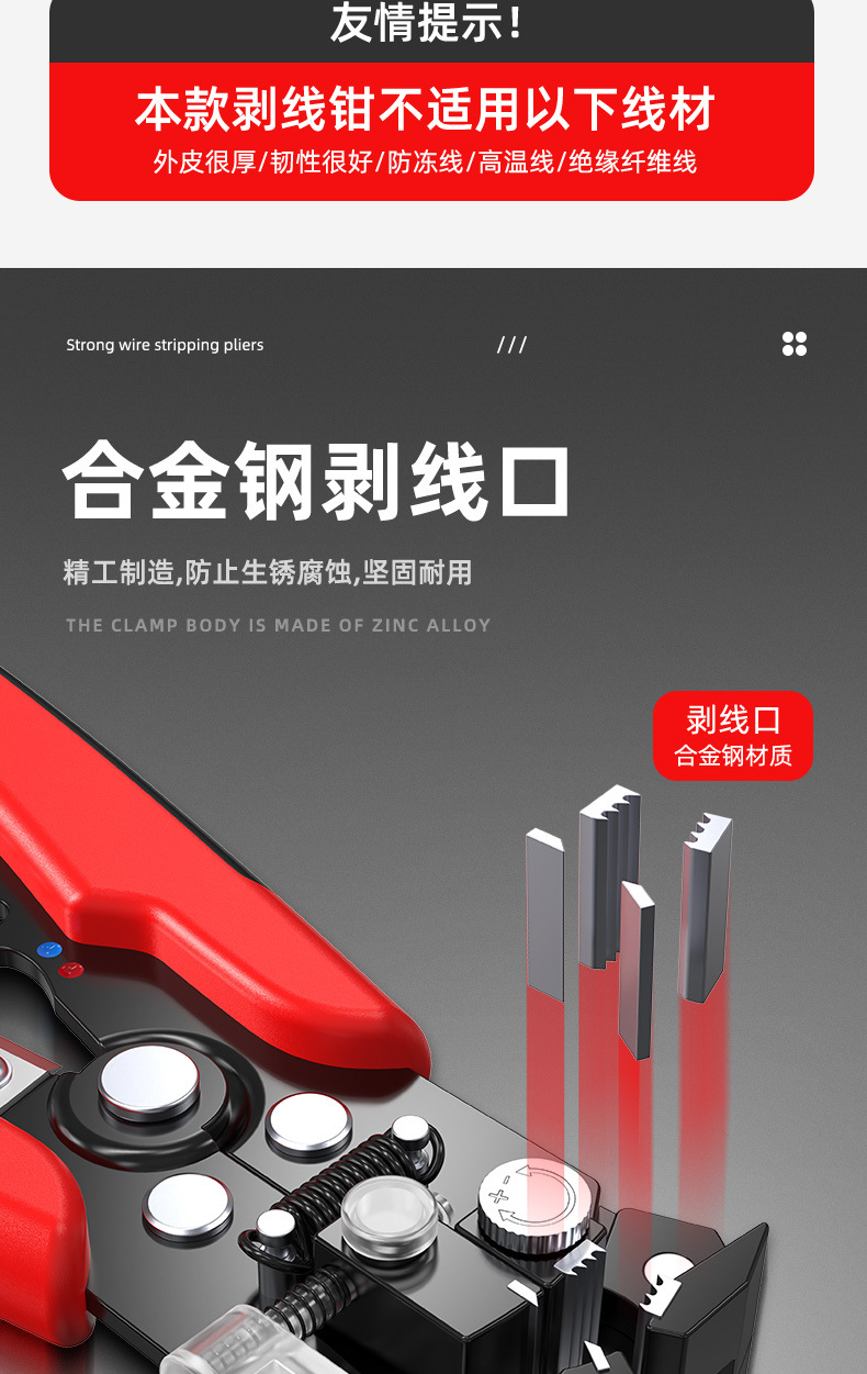 전기 기술자를 위한 자동 와이어 스트리핑 펜치 8inch 다기능 와이어 스트리핑 펜치 하드웨어 도구 터미널 압착 와이어 펜치스토어 가기
