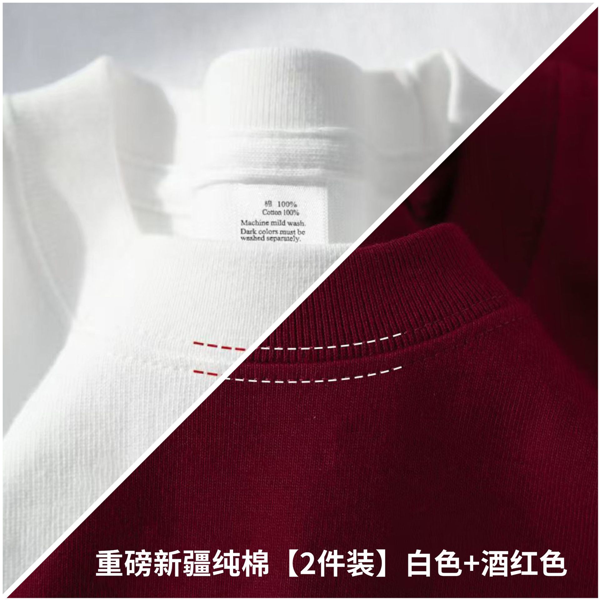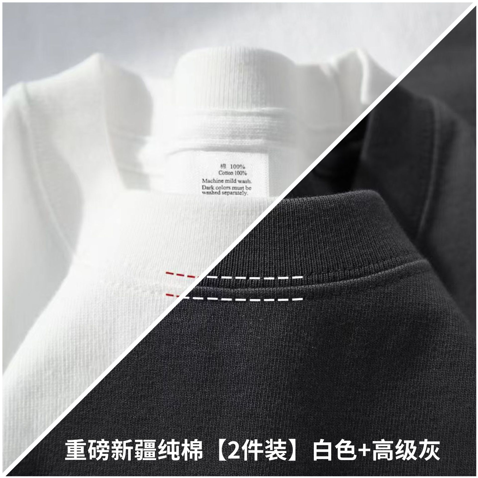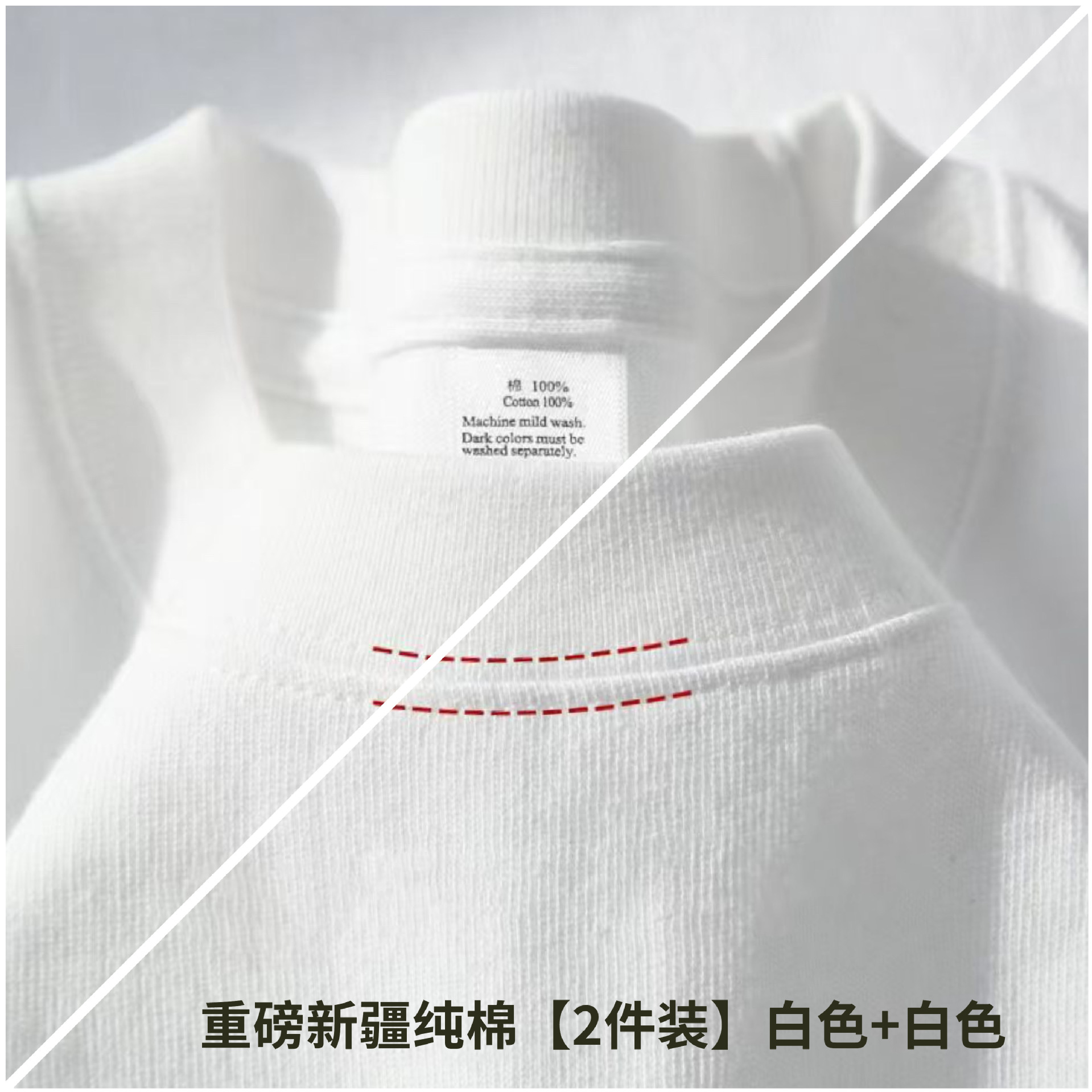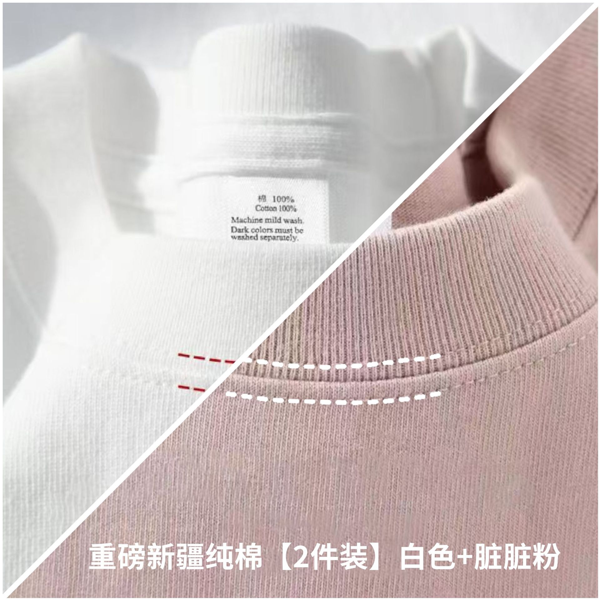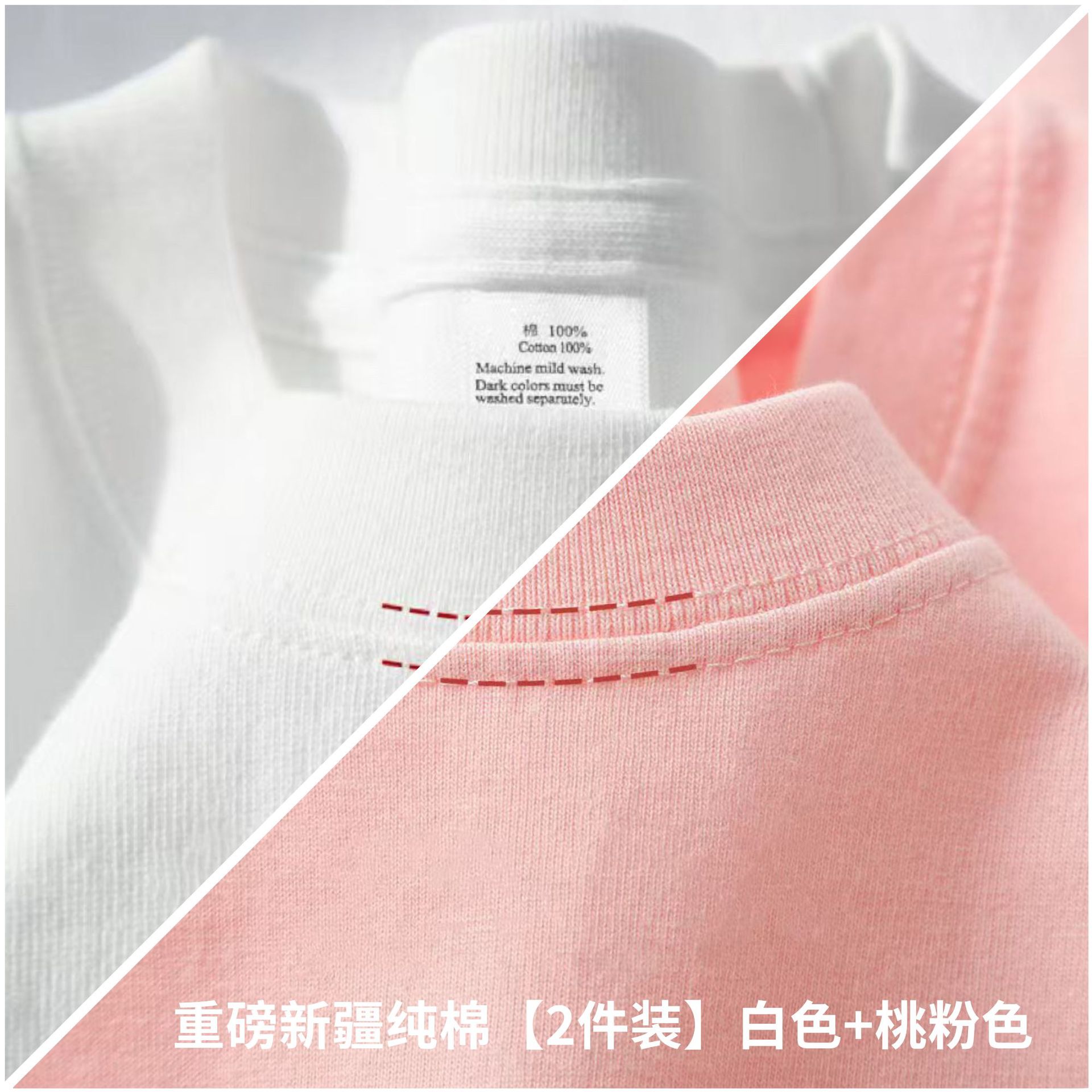 {2 팩} 360G 헤비 신강 코튼 화이트 짧은 소매 티셔츠 여성용 느슨한 솔리드 컬러 조커 하프 슬리브 베이스 남자 여름
