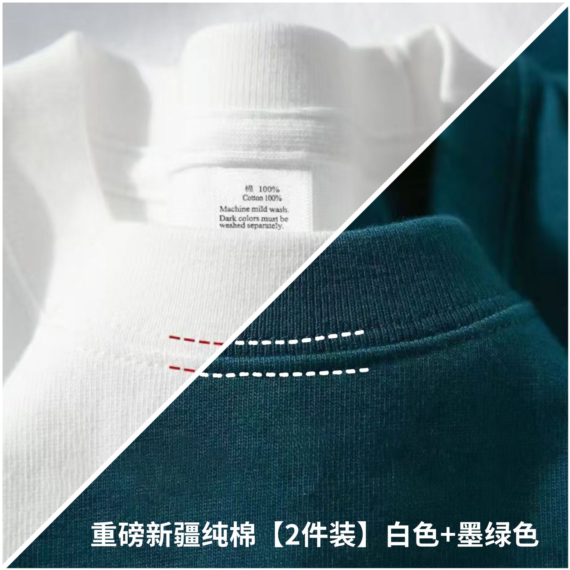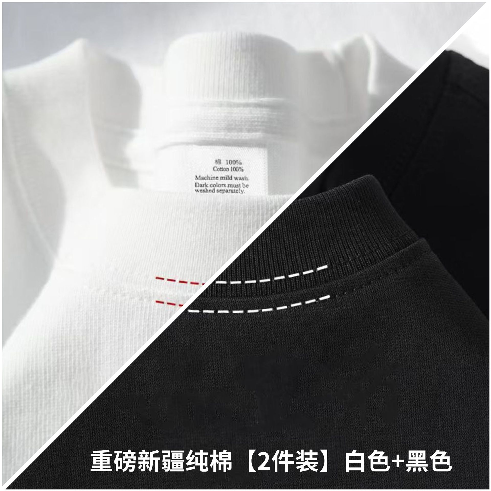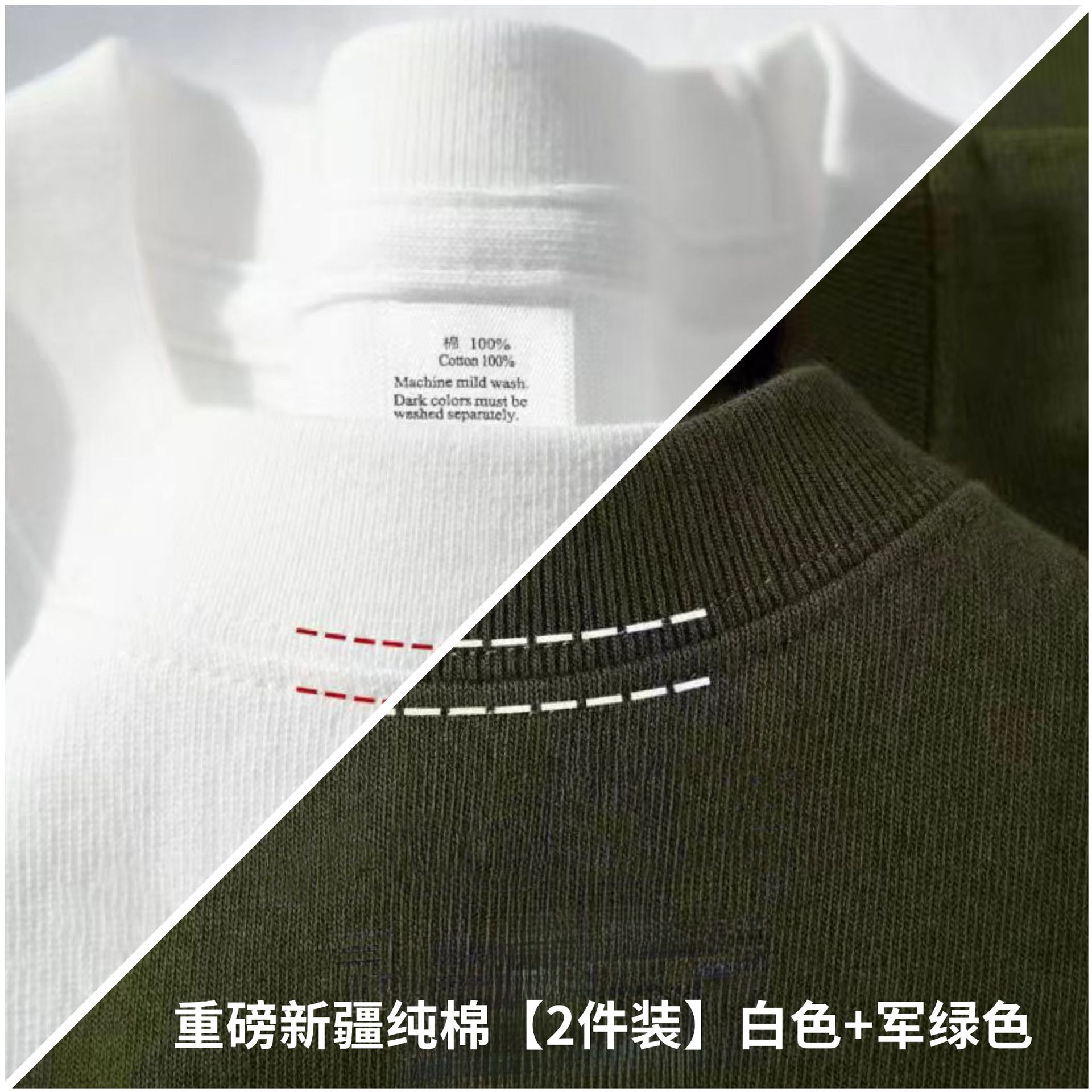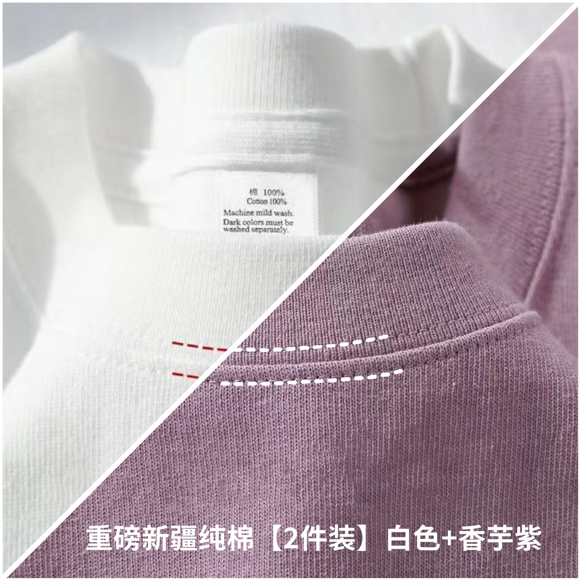 {2 팩} 360G 헤비 신강 코튼 화이트 짧은 소매 티셔츠 여성용 느슨한 솔리드 컬러 조커 하프 슬리브 베이스 남자 여름