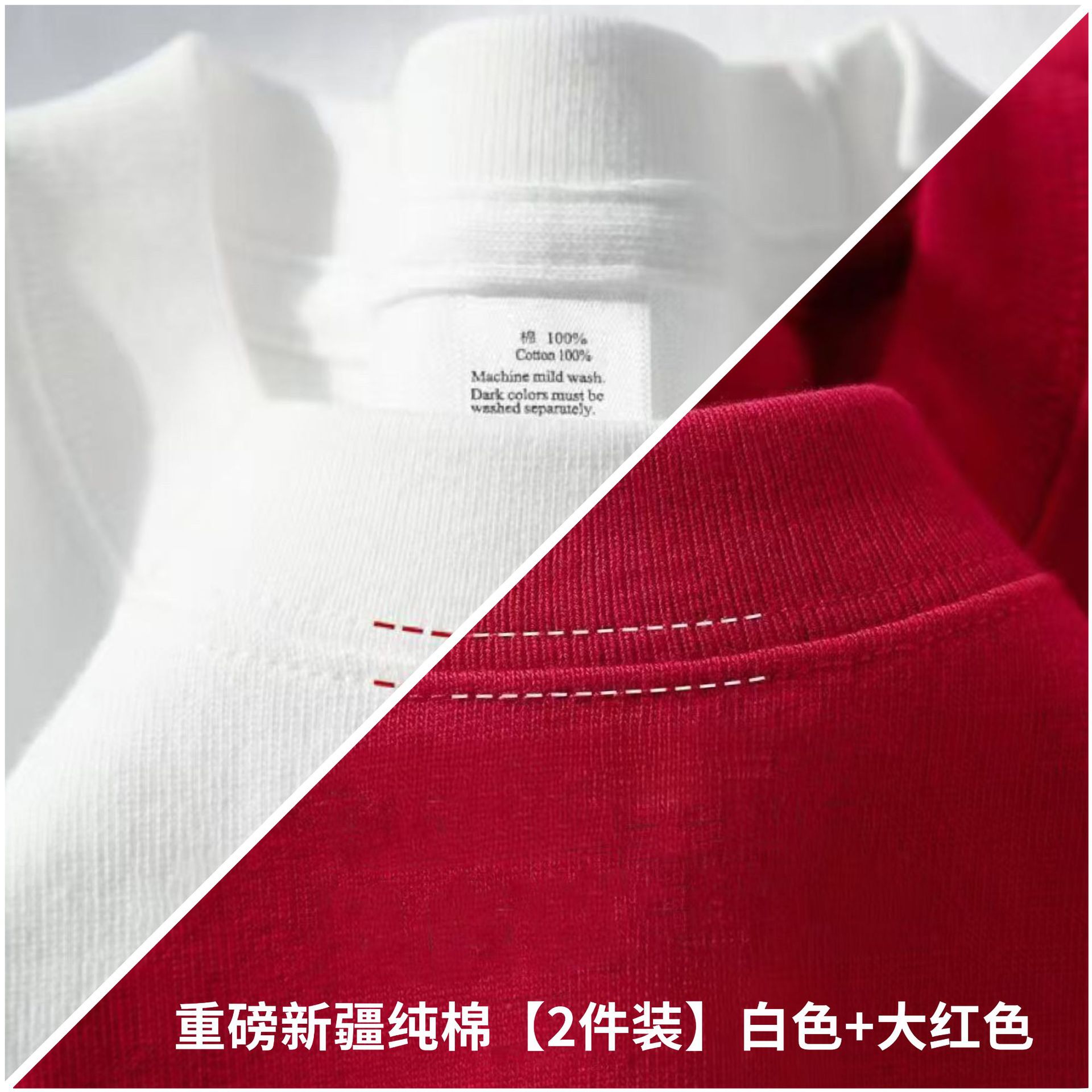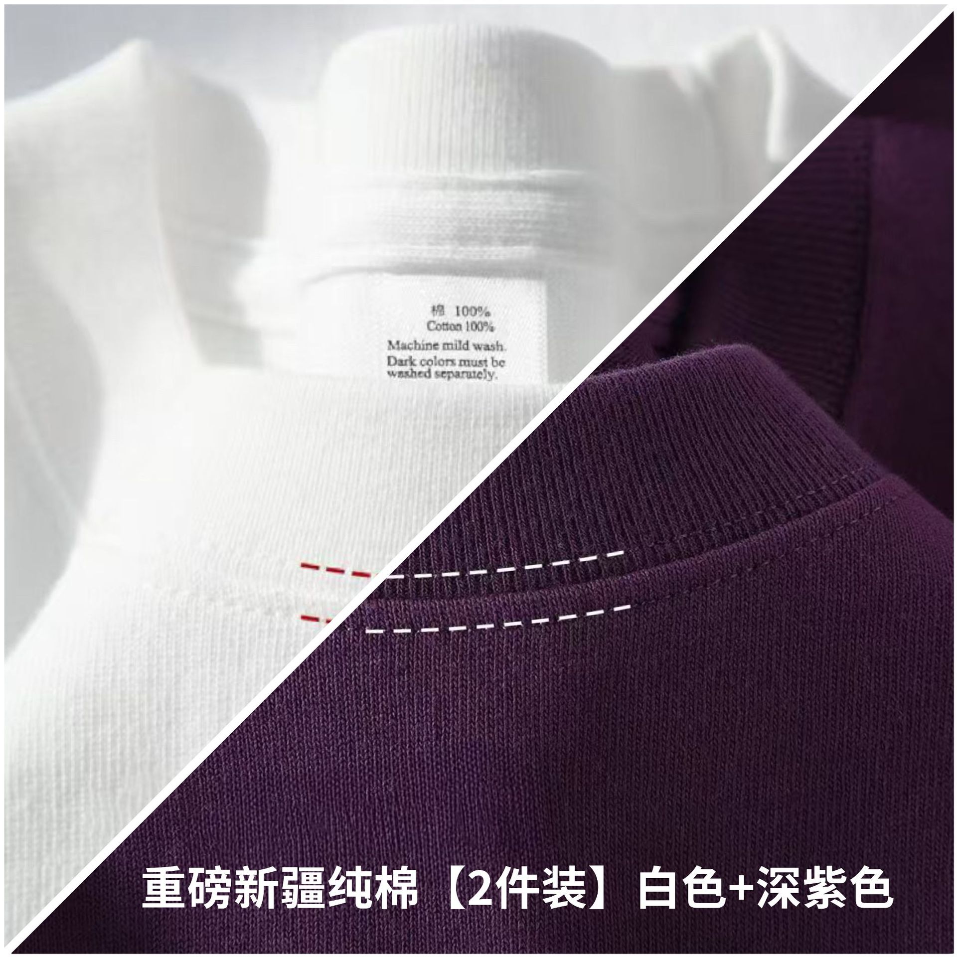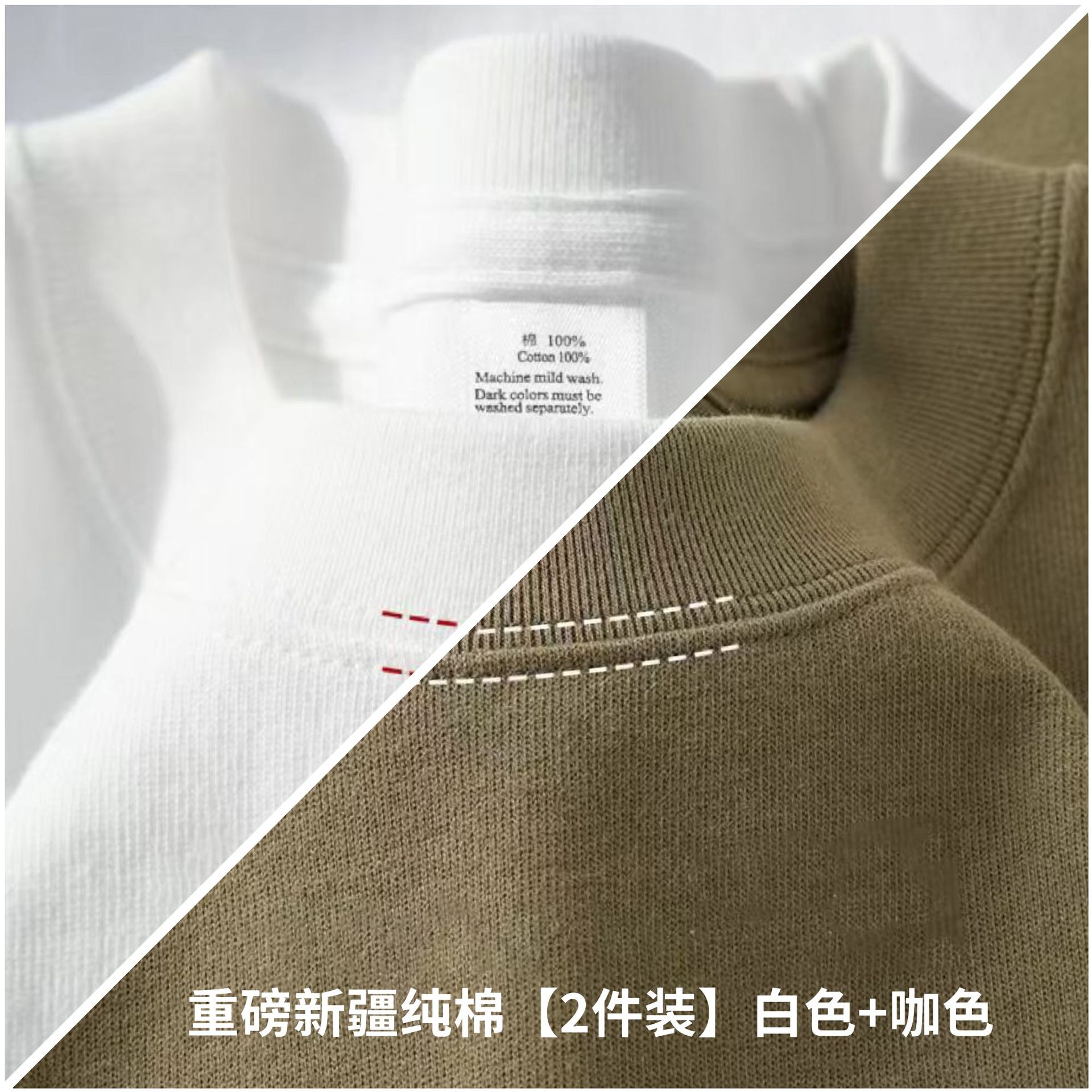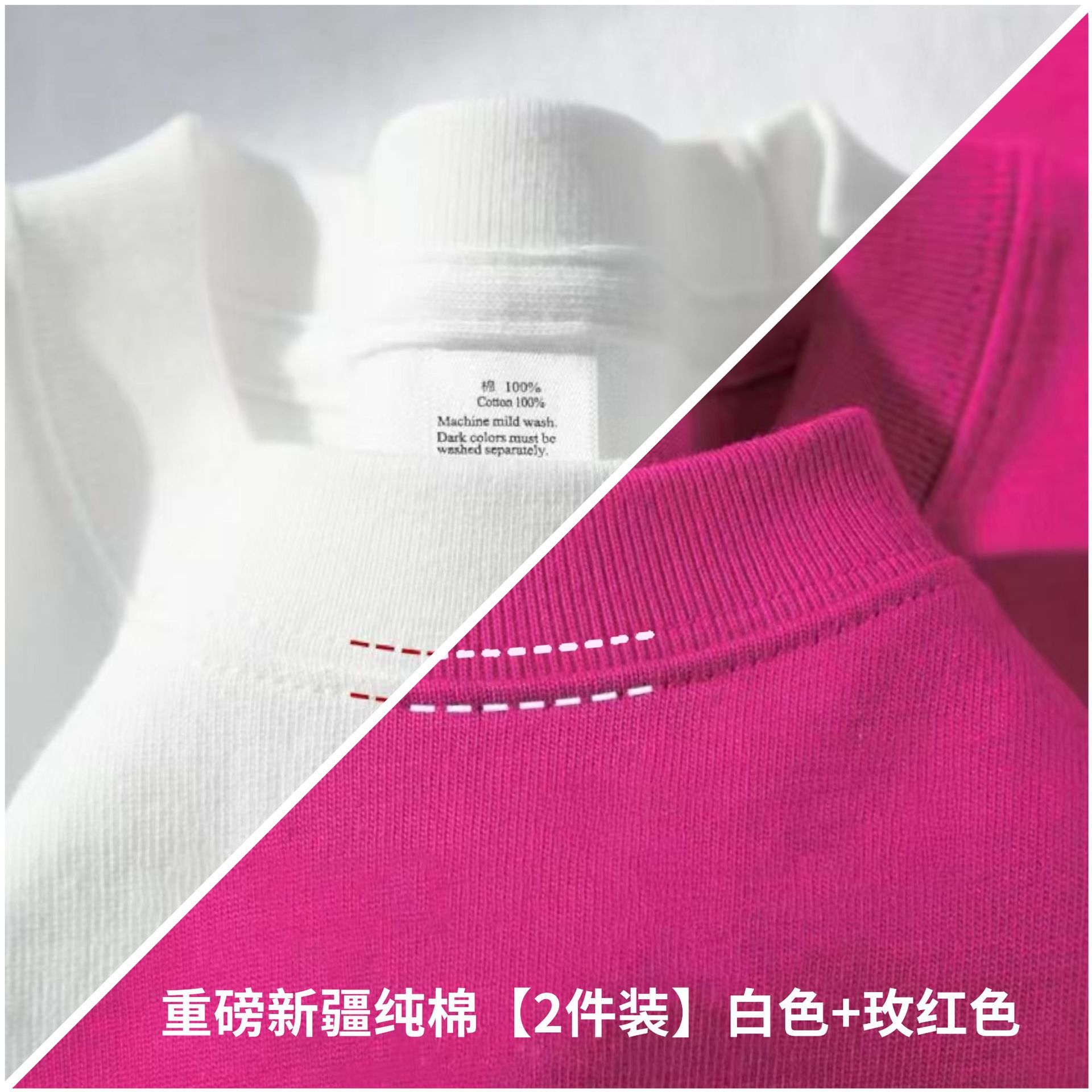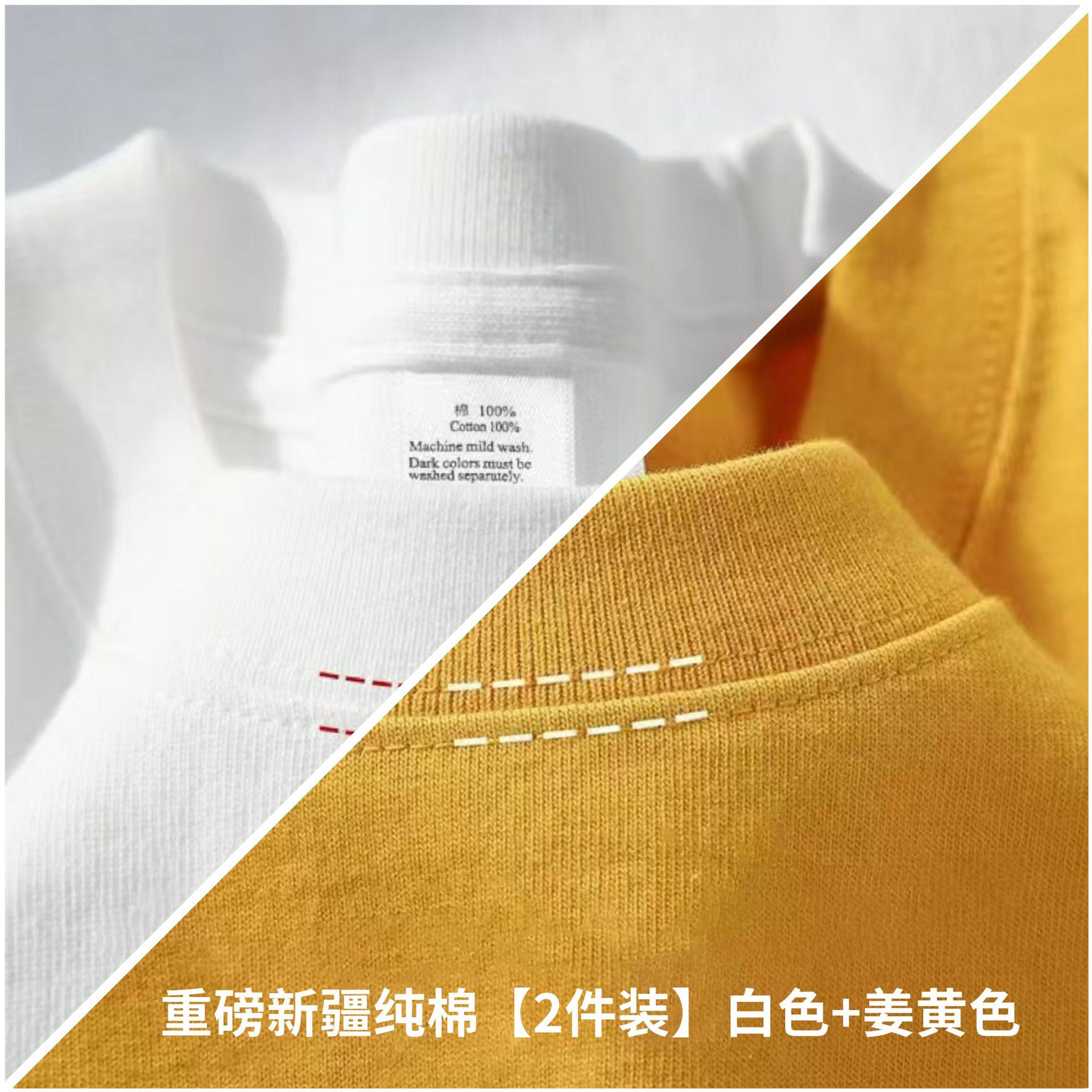 {2 팩} 360G 헤비 신강 코튼 화이트 짧은 소매 티셔츠 여성용 느슨한 솔리드 컬러 조커 하프 슬리브 베이스 남자 여름
