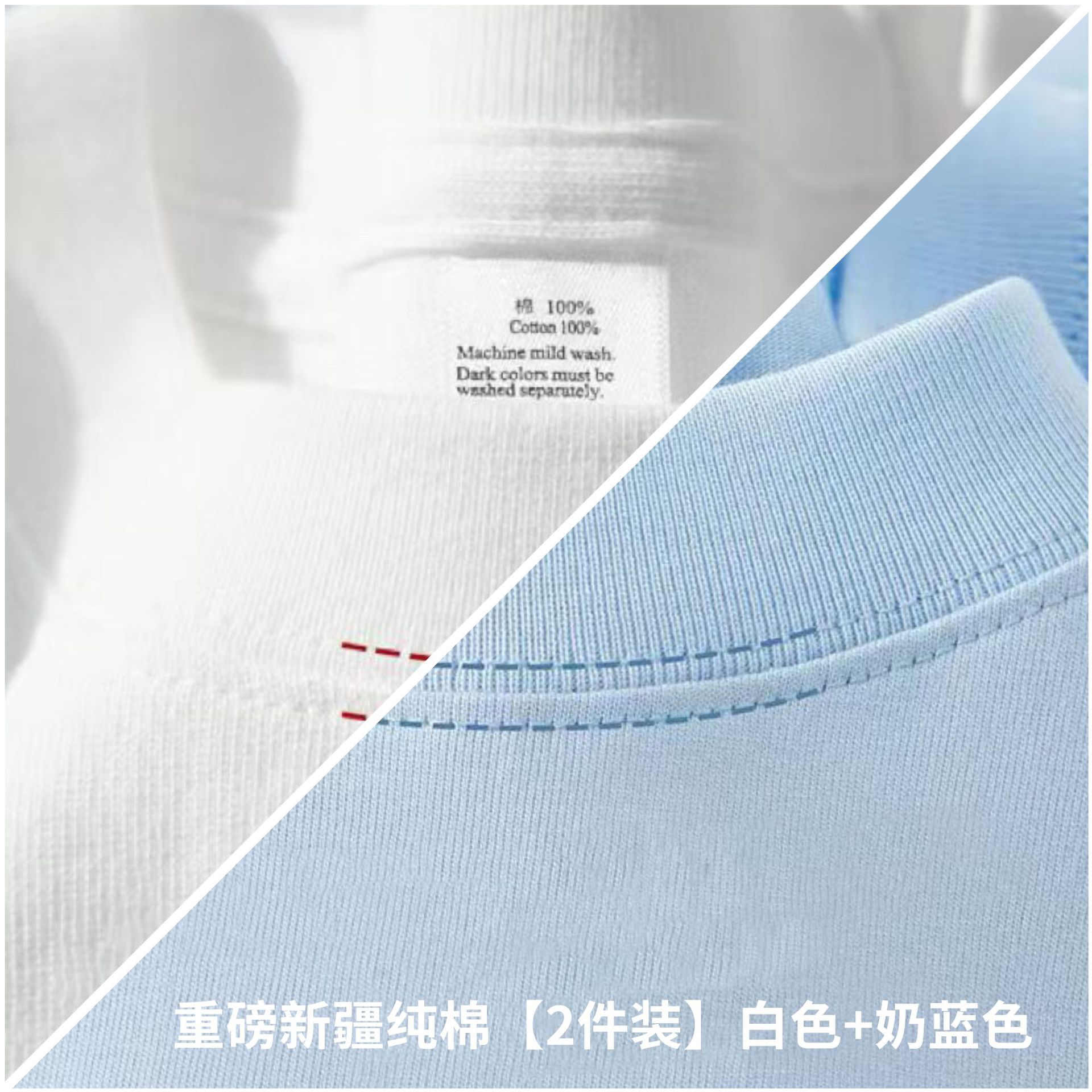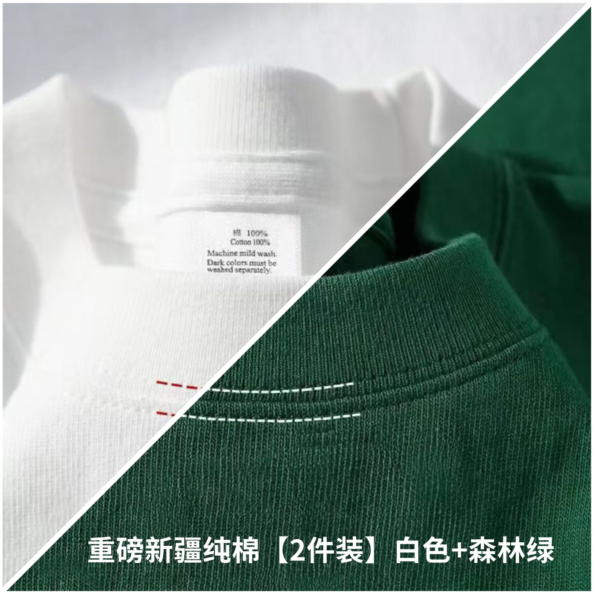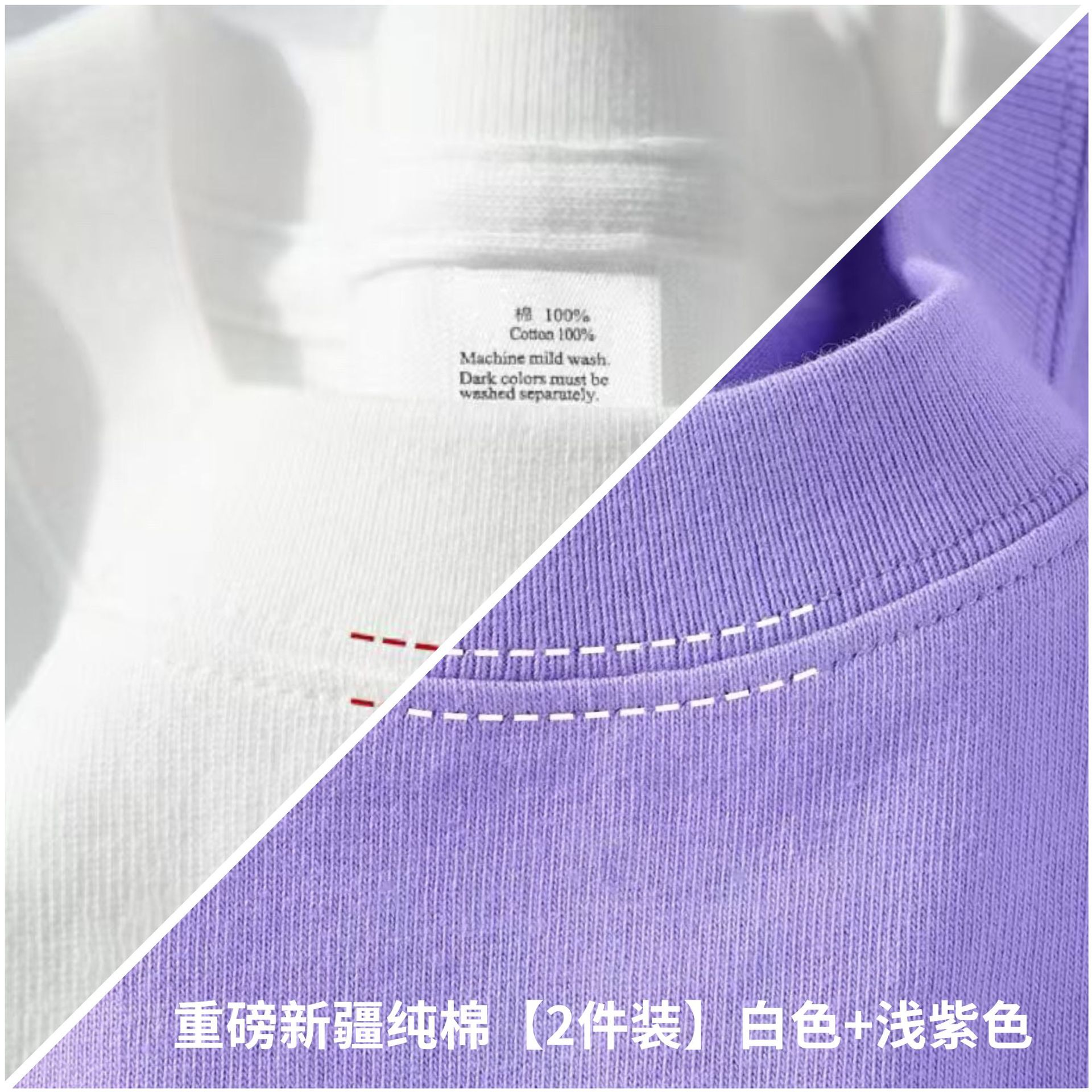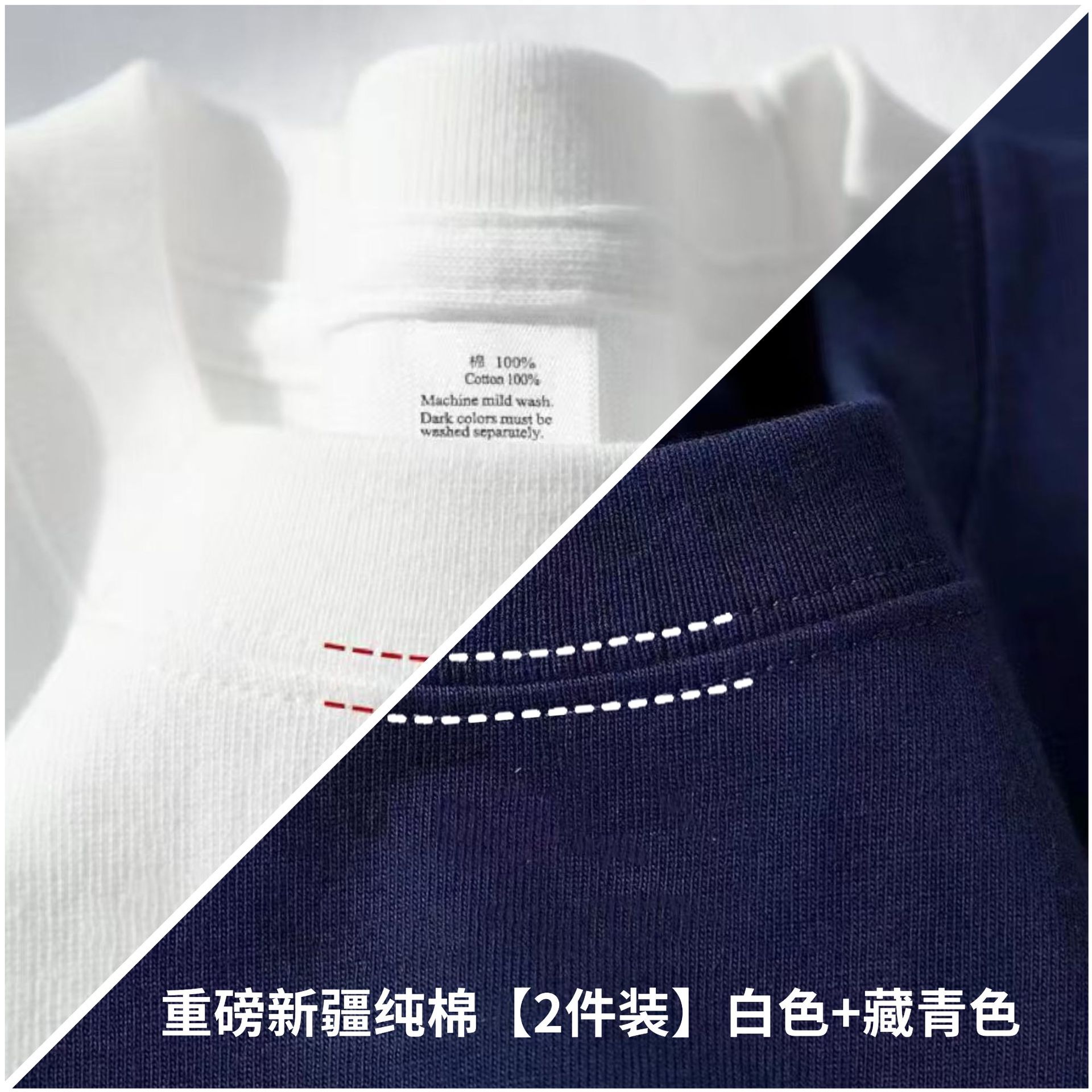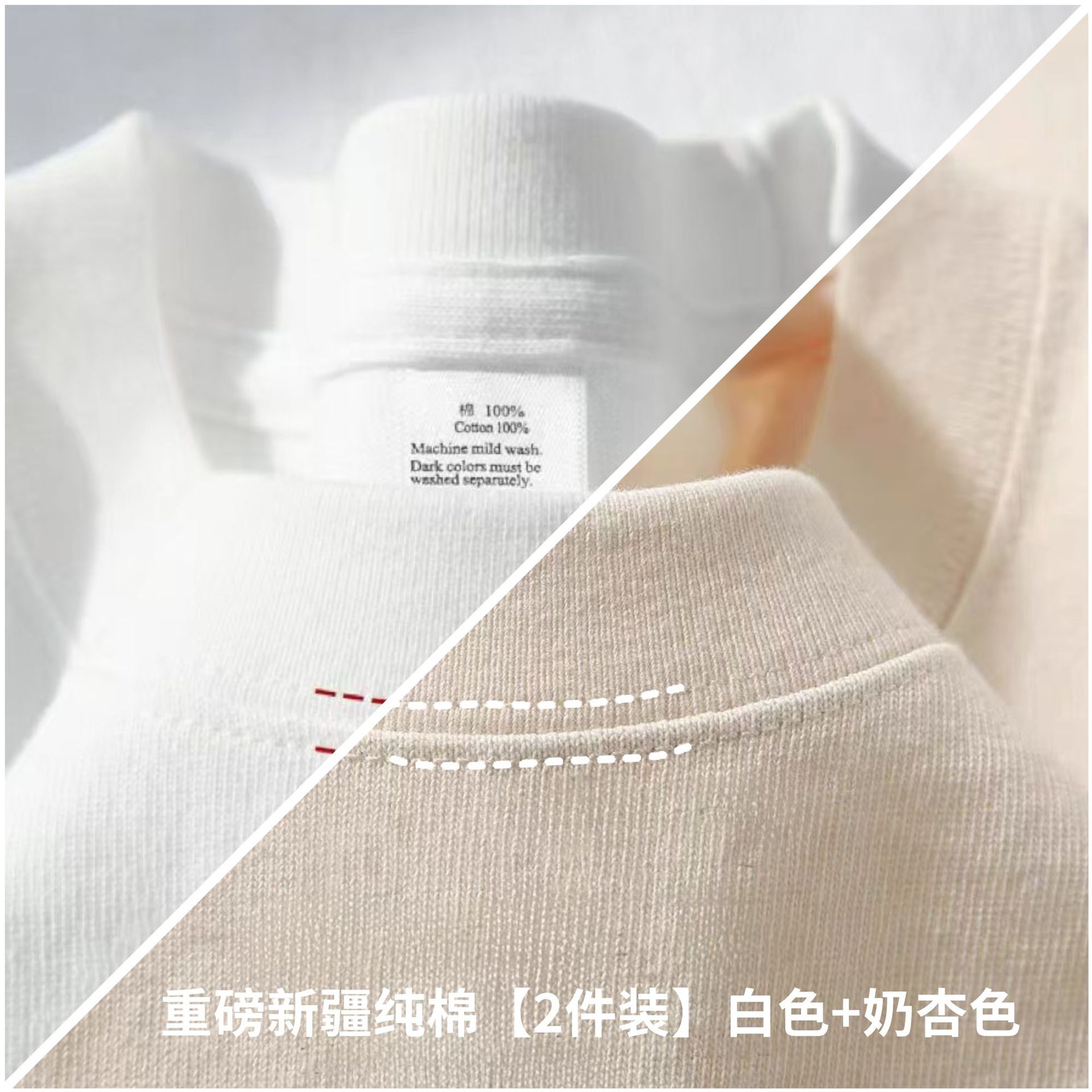 {2 팩} 360G 헤비 신강 코튼 화이트 짧은 소매 티셔츠 여성용 느슨한 솔리드 컬러 조커 하프 슬리브 베이스 남자 여름
