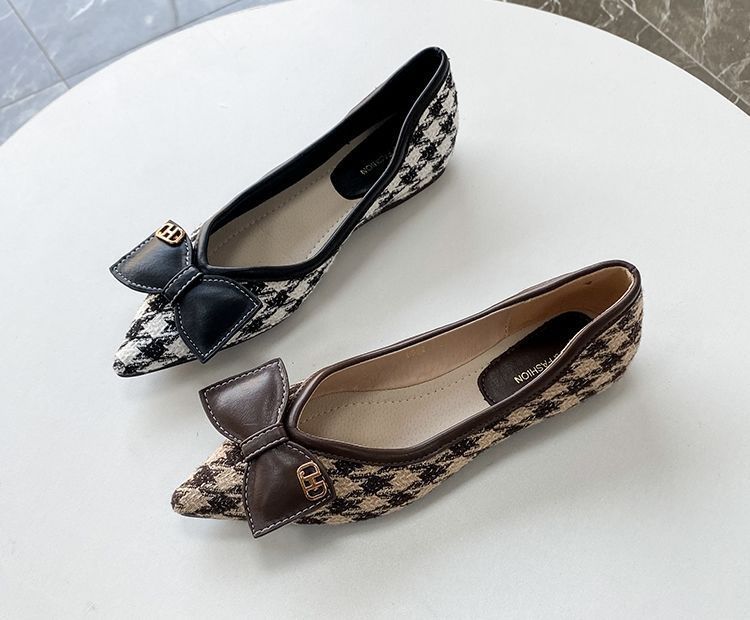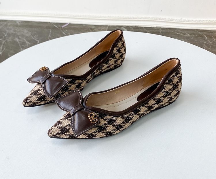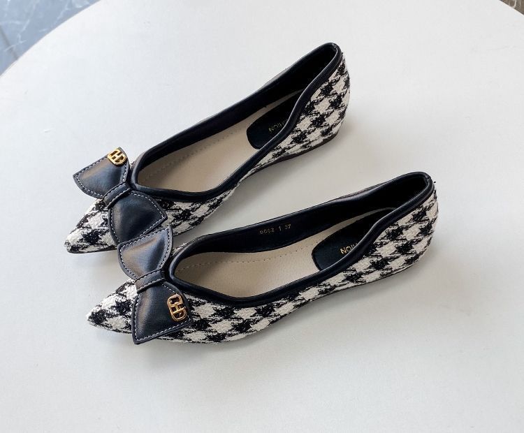 플랫 싱글 레이어 신발 여성의 2025 새로운 가을 포인팅 하운드 투스 스타일 샤넬 스타일 얕은 입 부드러운 바닥 우아한 사교계 특종 신발스토어 가기