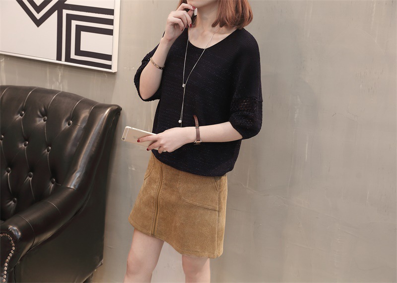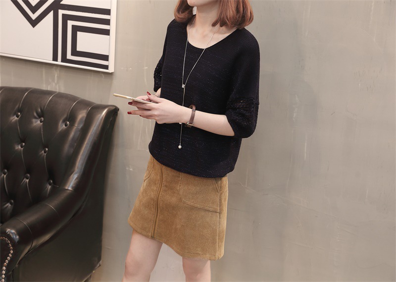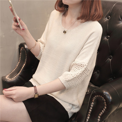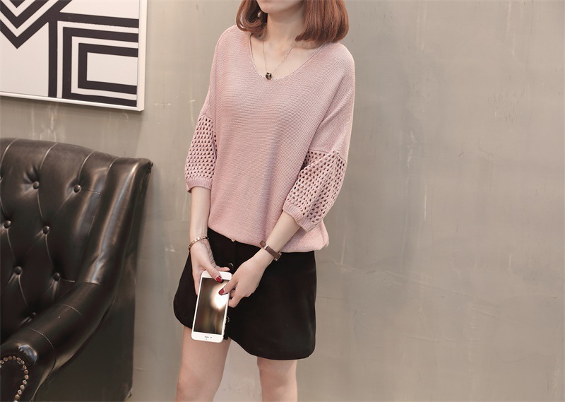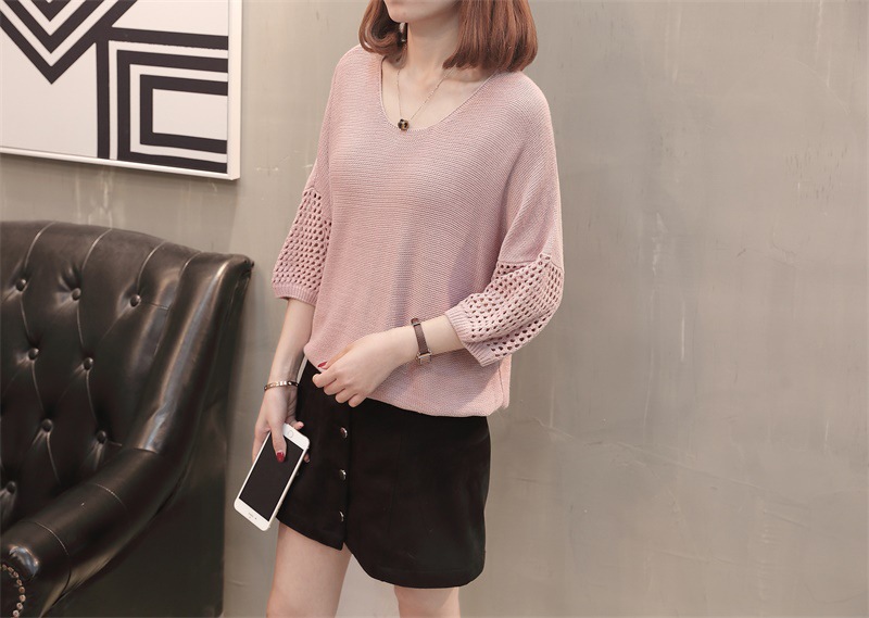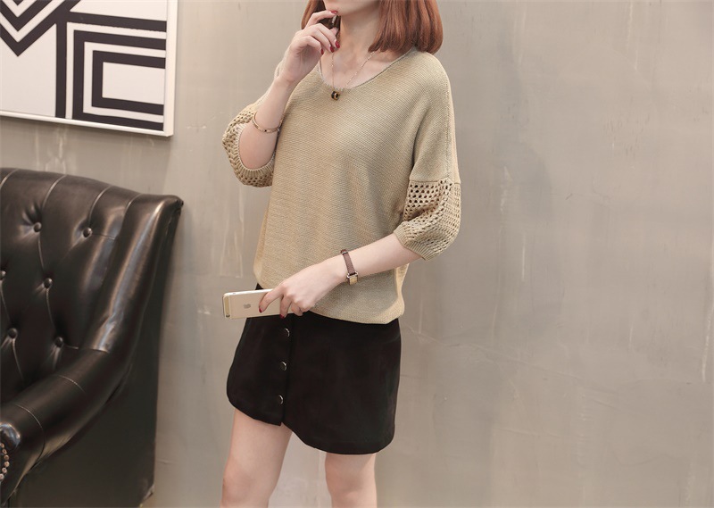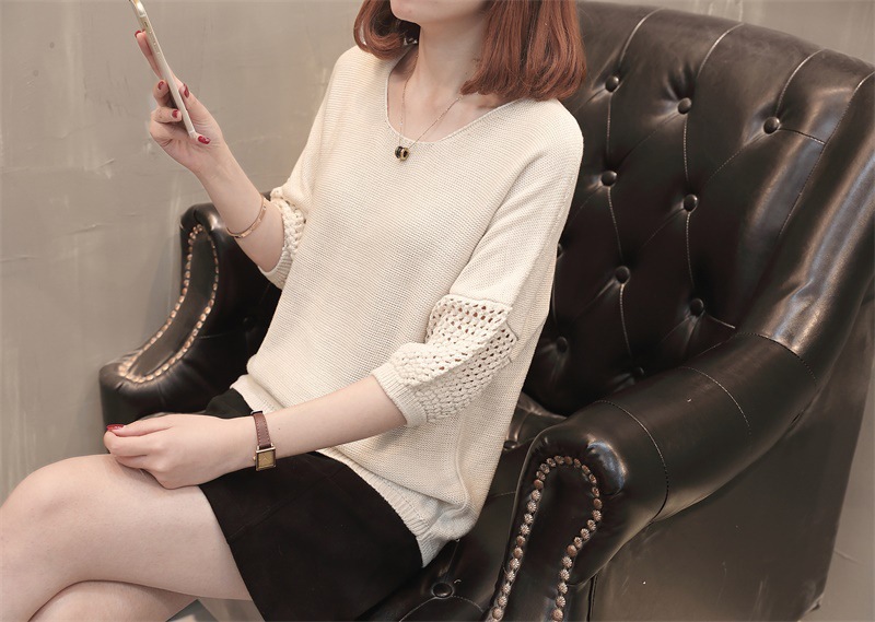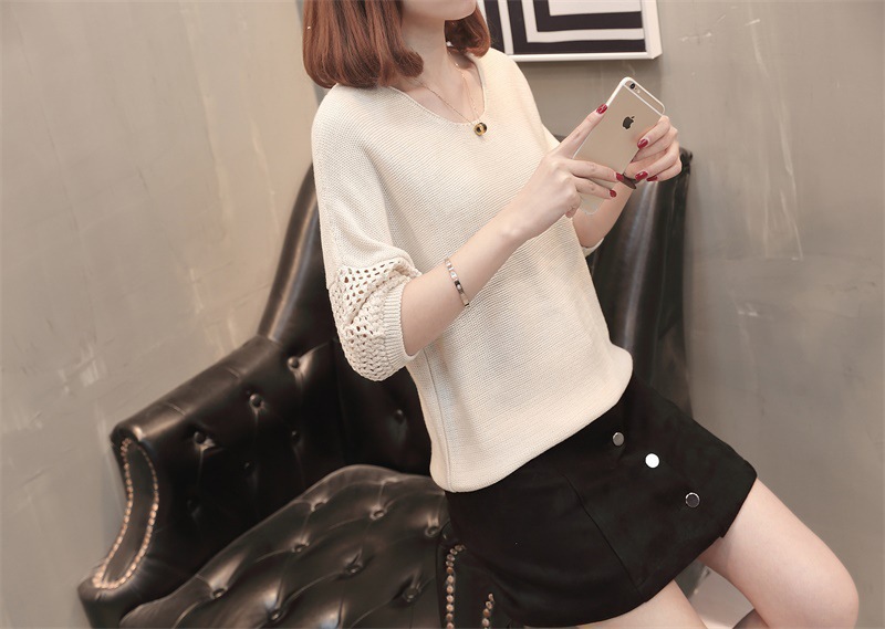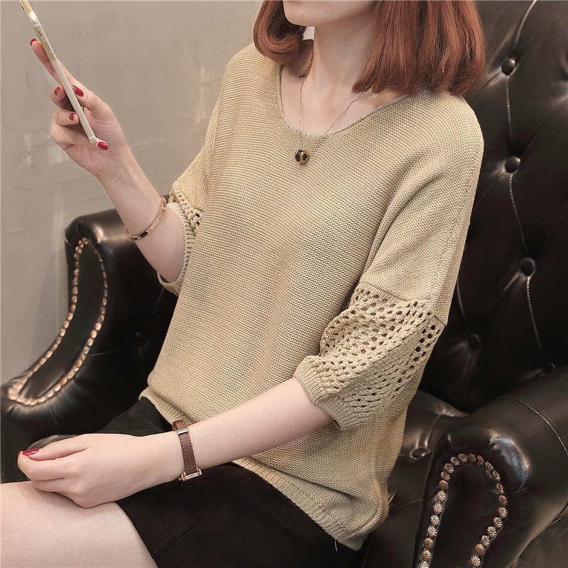유행 및 서양식 여름 얇은 중공 블라우스 라운드 넥 캐주얼 스타일 느슨한 외부 탑 반 소매 스웨터 여성용