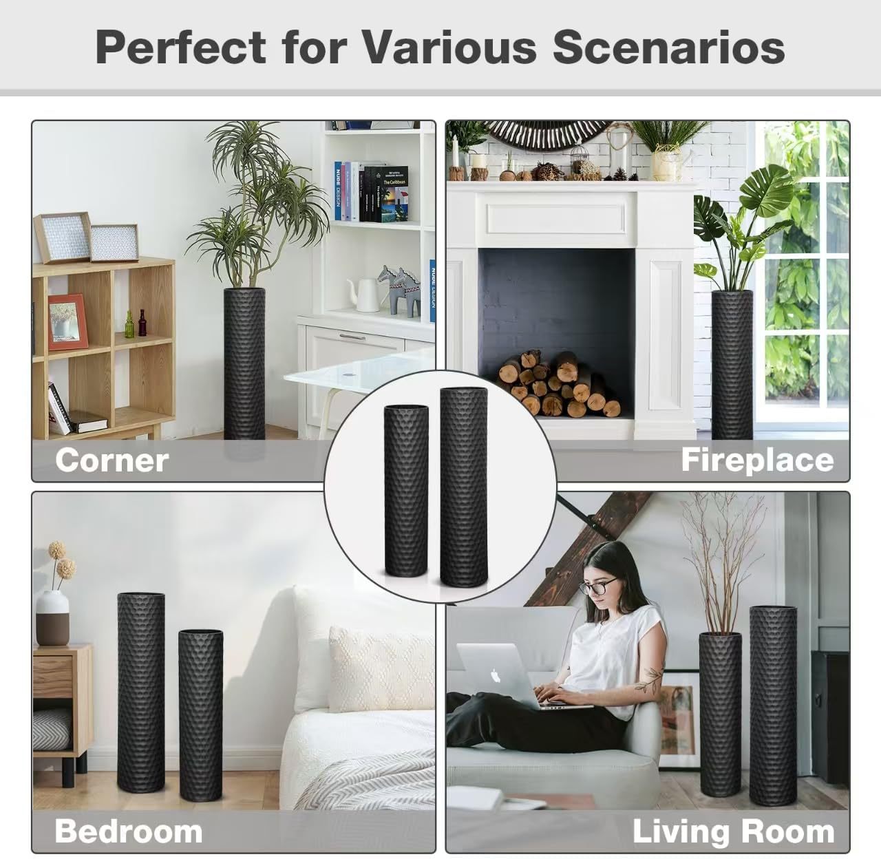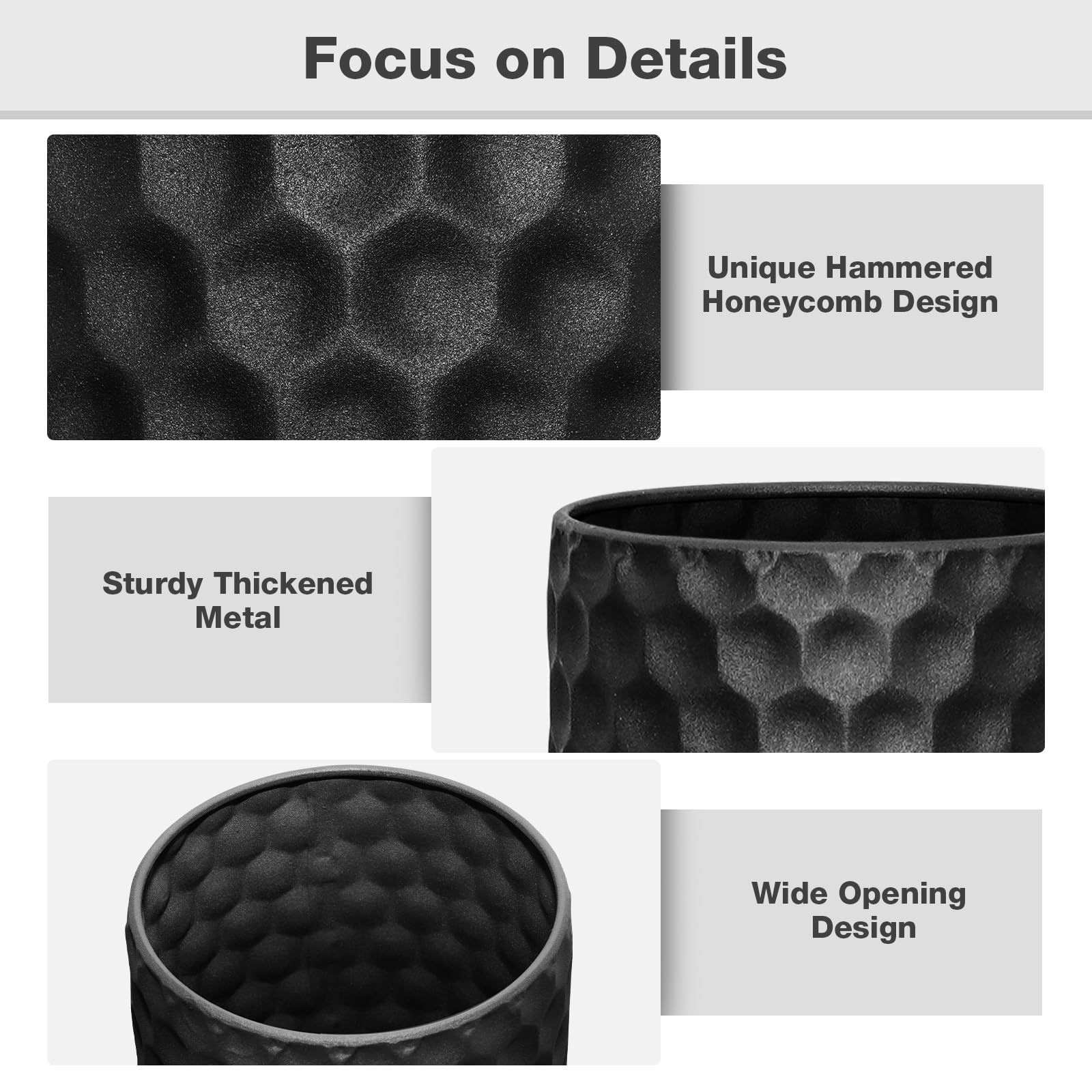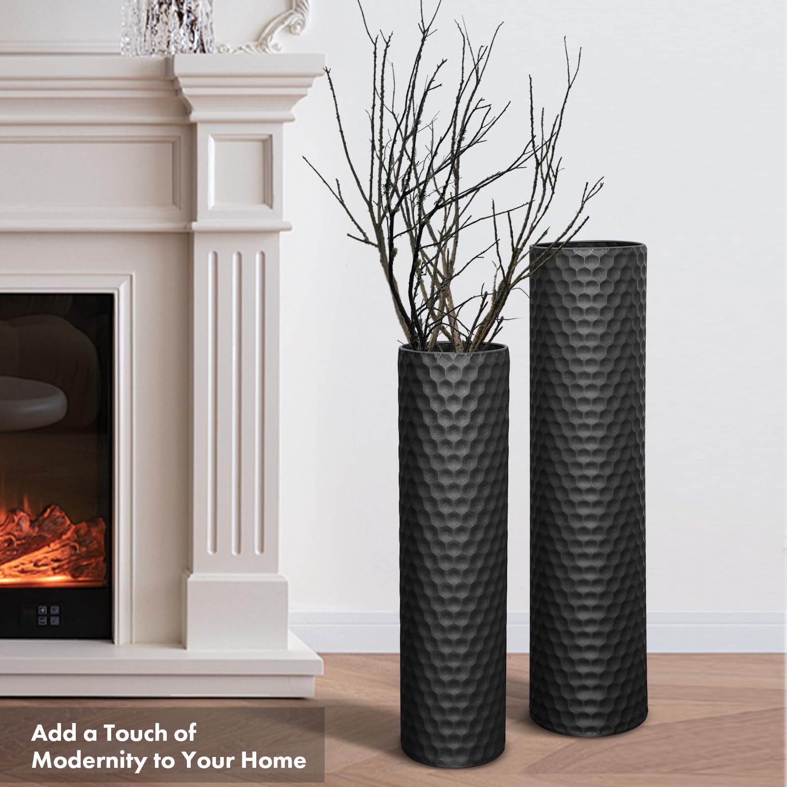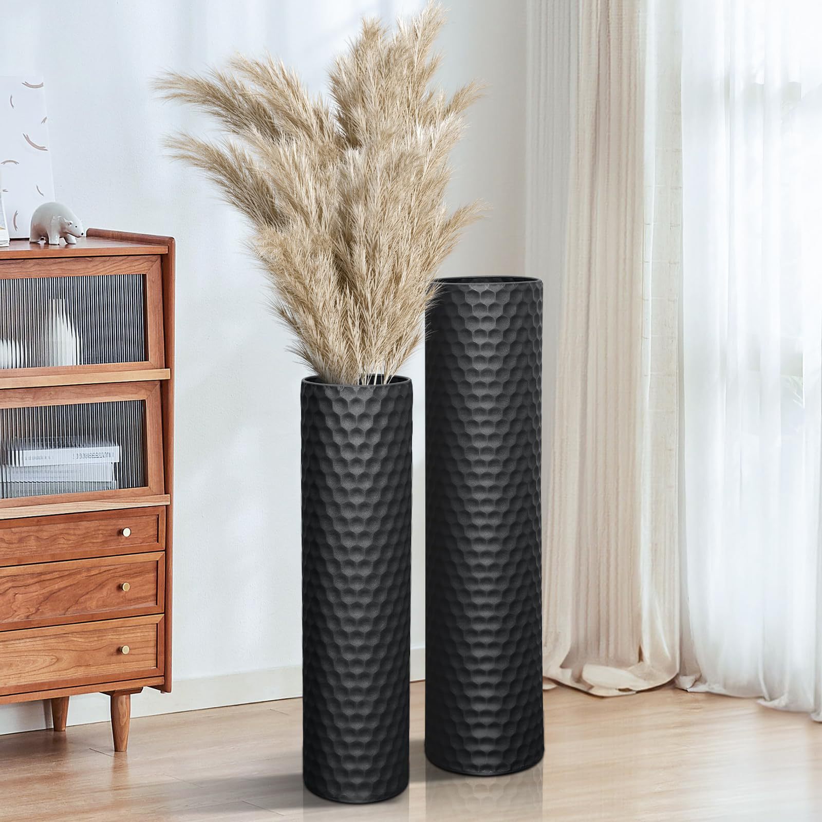 Le Qiao 2 피스 Golden Iron Vase Honeycomb 텍스처 미국 국경 이동식 금속 바닥 꽃병