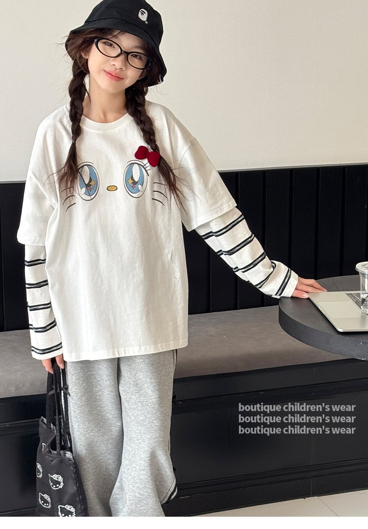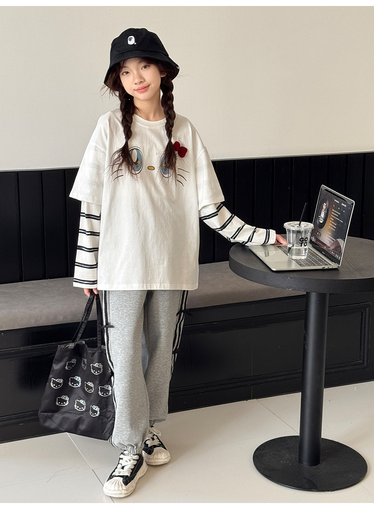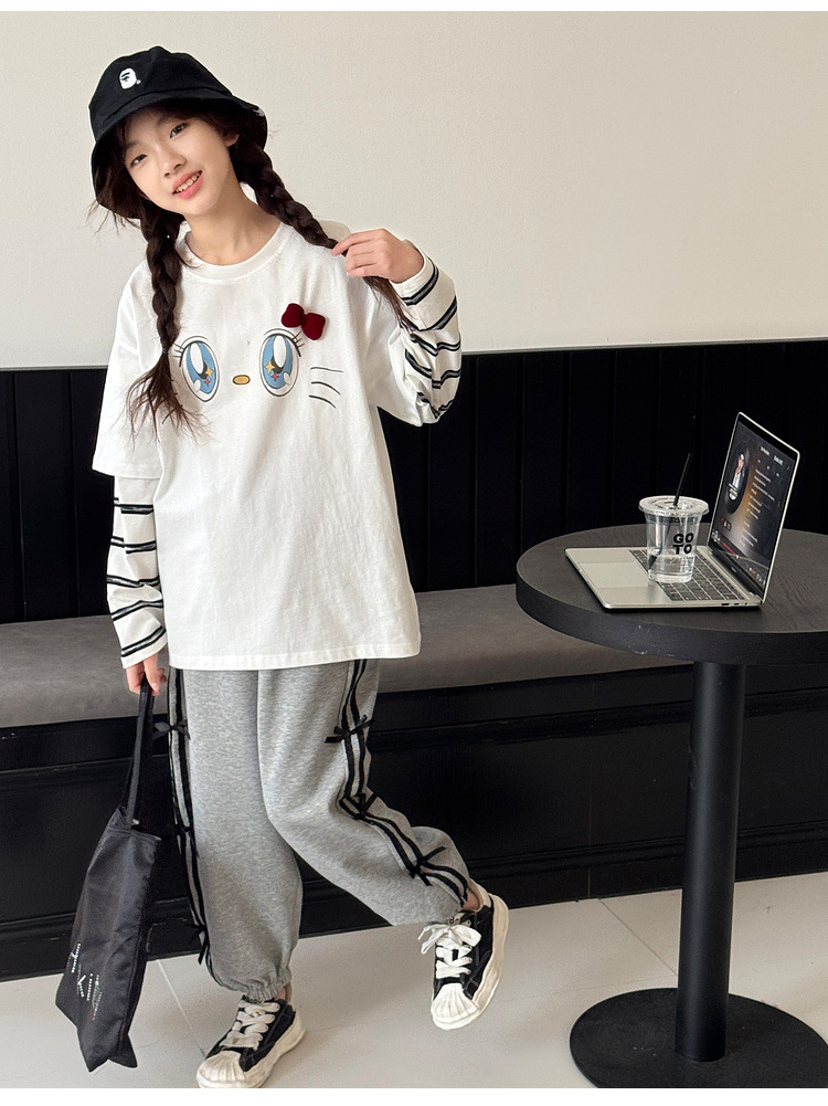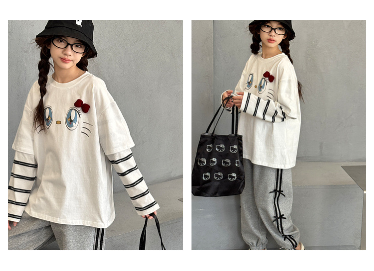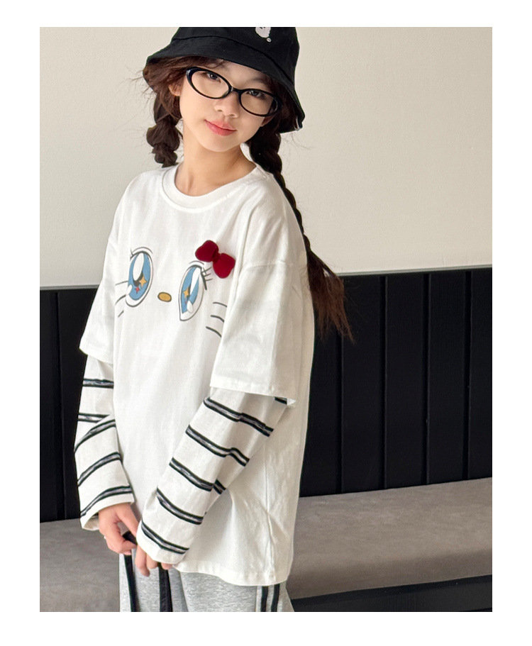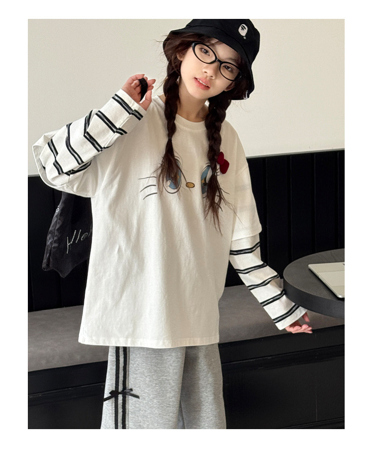 여자 티셔츠 긴 소매 가을 2025 새로운 어린이 느슨한 캐주얼 순수 코튼 다목적 만화 바닥 셔츠 유행 탑