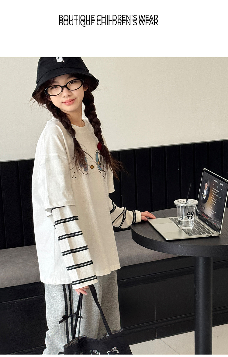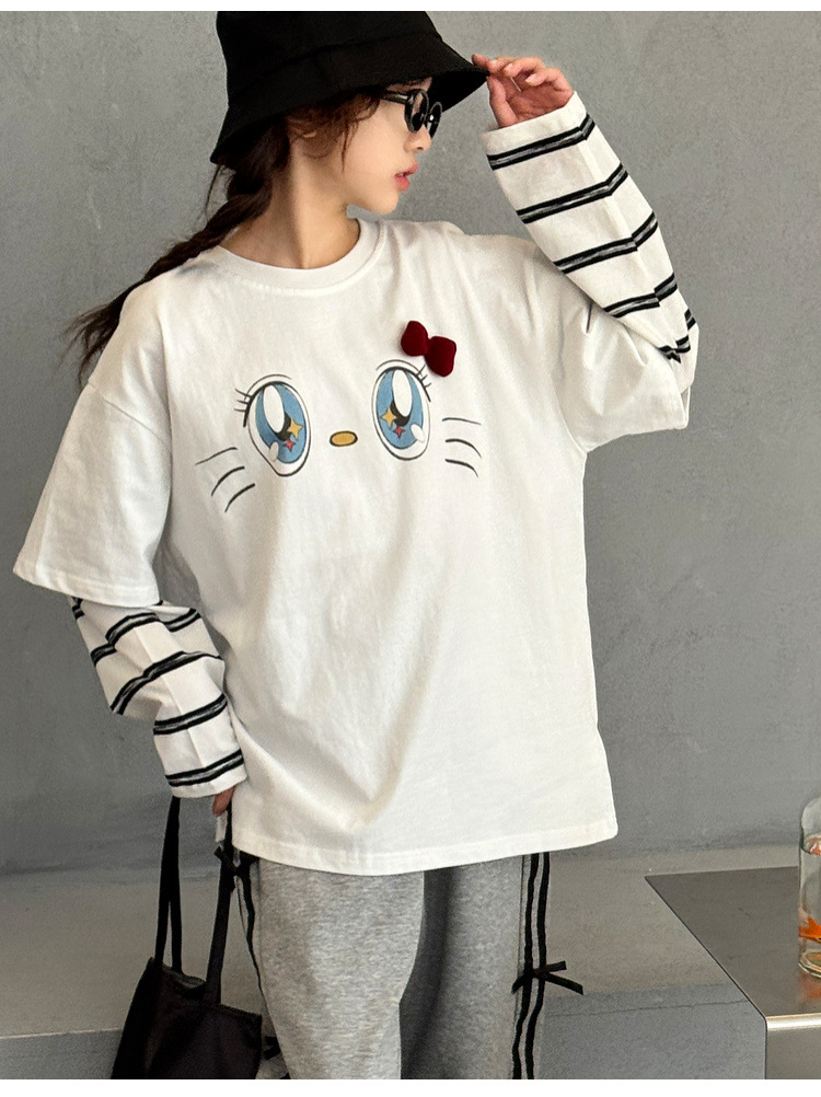 여자 티셔츠 긴 소매 가을 2025 새로운 어린이 느슨한 캐주얼 순수 코튼 다목적 만화 바닥 셔츠 유행 탑스토어 가기