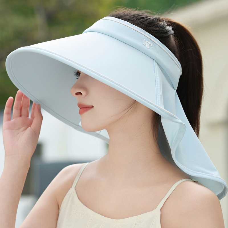 여성용 차양 및 자외선 차단제 모자는 포니 테일 2025 여름 빈 탑 목도리 목 보호 UV 보호 태양 모자로 묶을 수 있습니다.스토어 가기