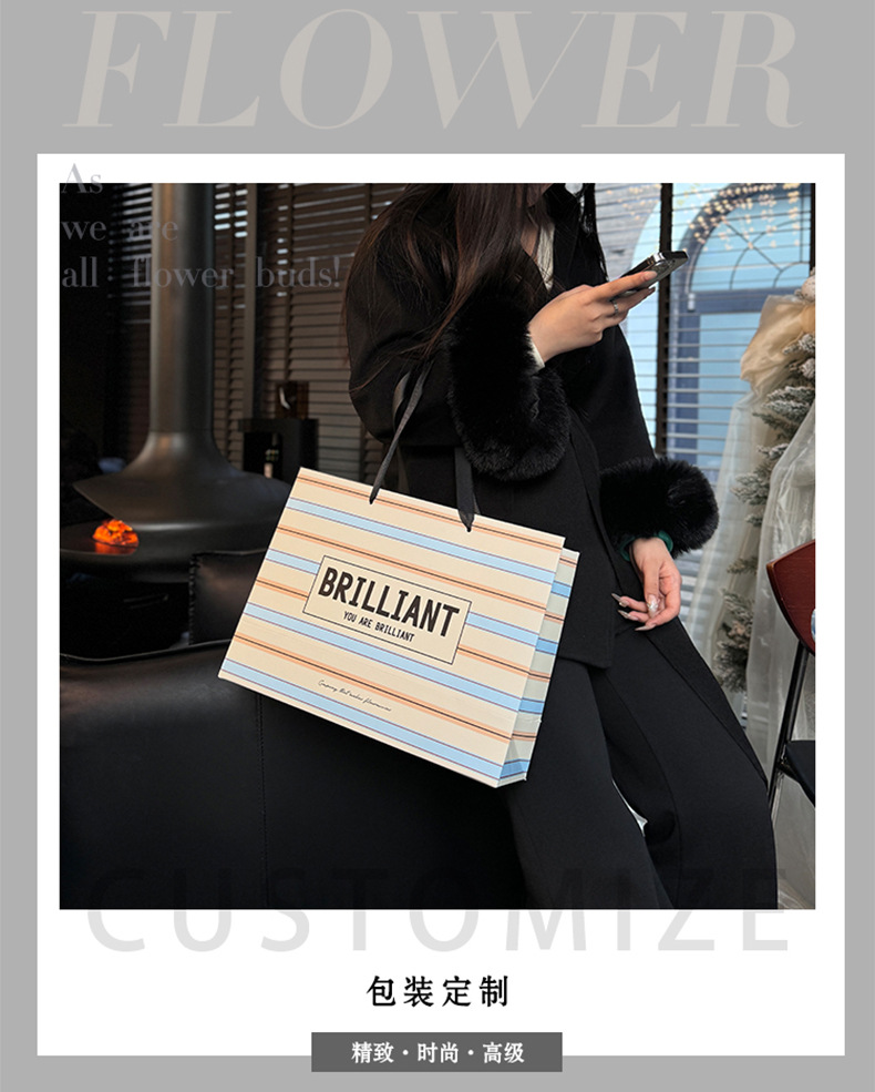 높은 가치의 아름다운 의류 매장 핸드백 재고 하이 엔드 라이트 럭셔리 인 선물 가방 대외 무역 종이 가방 사용자 정의스토어 가기