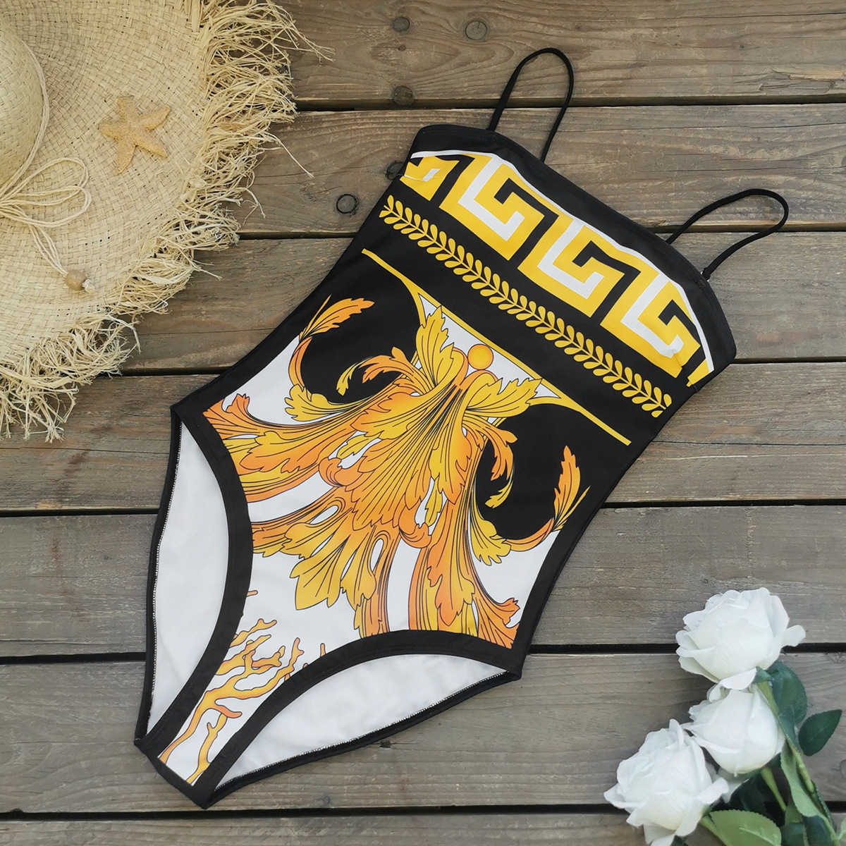 여성용 삼각형 원피스 수영복 2026 신상 튜브탑 유럽풍 레트로 프린트 스커트 투피스 세트 수출용
