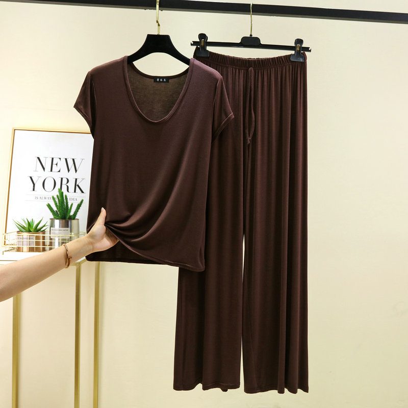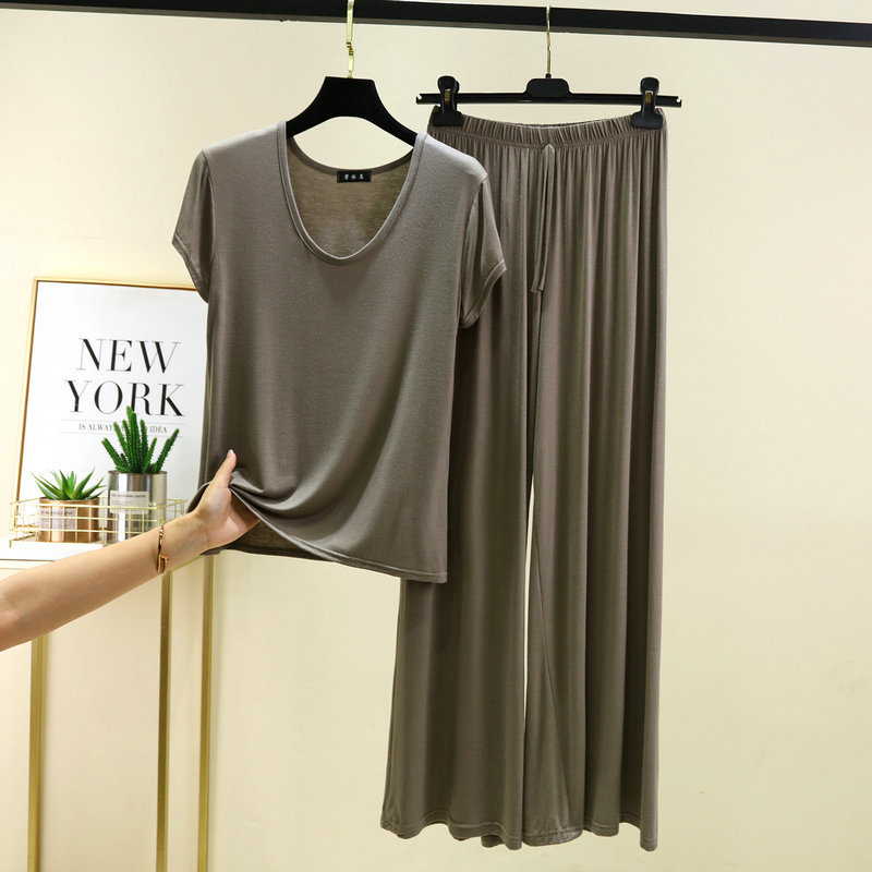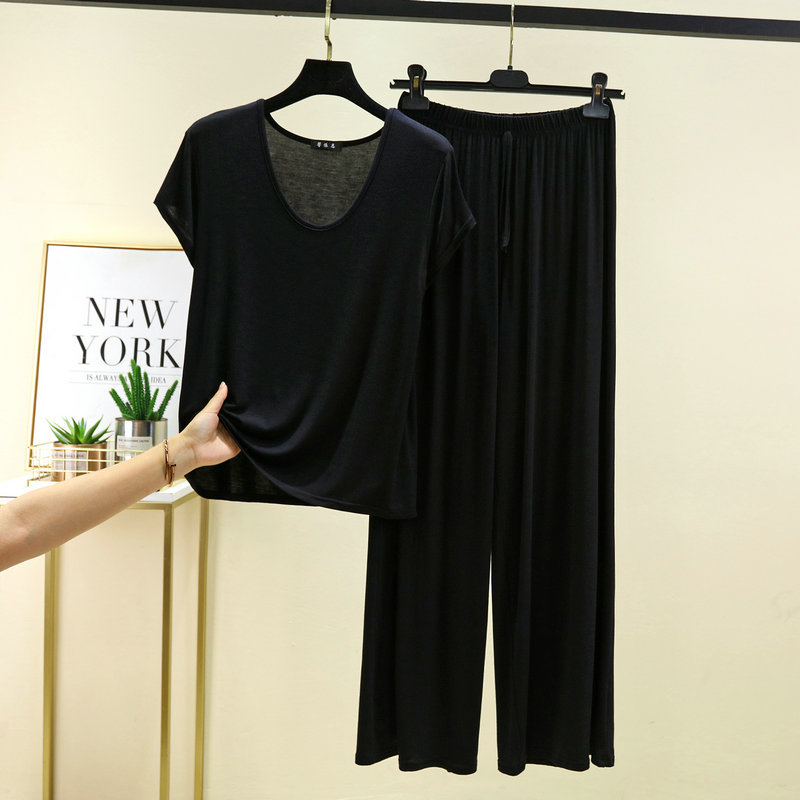모달 U-넥 반소매 바지 홈 여름 얇은 외장 세트 여성 플러스 사이즈 통기성 2 피스 세트