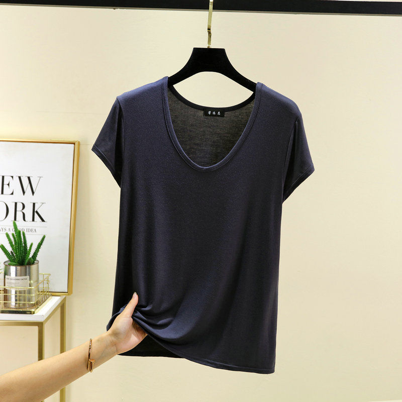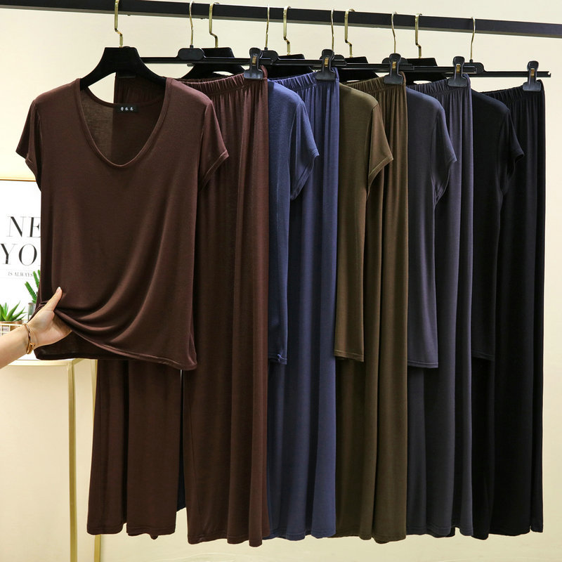 모달 U-넥 반소매 바지 홈 여름 얇은 외장 세트 여성 플러스 사이즈 통기성 2 피스 세트스토어 가기