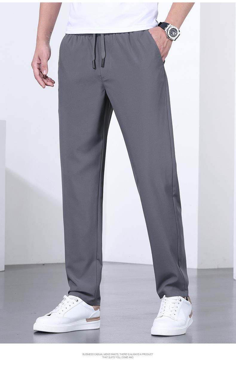 2025 봄 새 남자 캐주얼 바지 남자 젊고 중년 슬림 핏 올매치 스트레이트 레그 팬츠 엘랩틱 허리 끈 바지스토어 가기