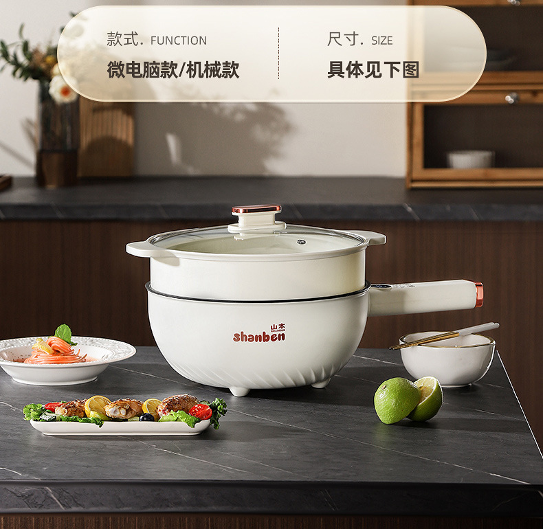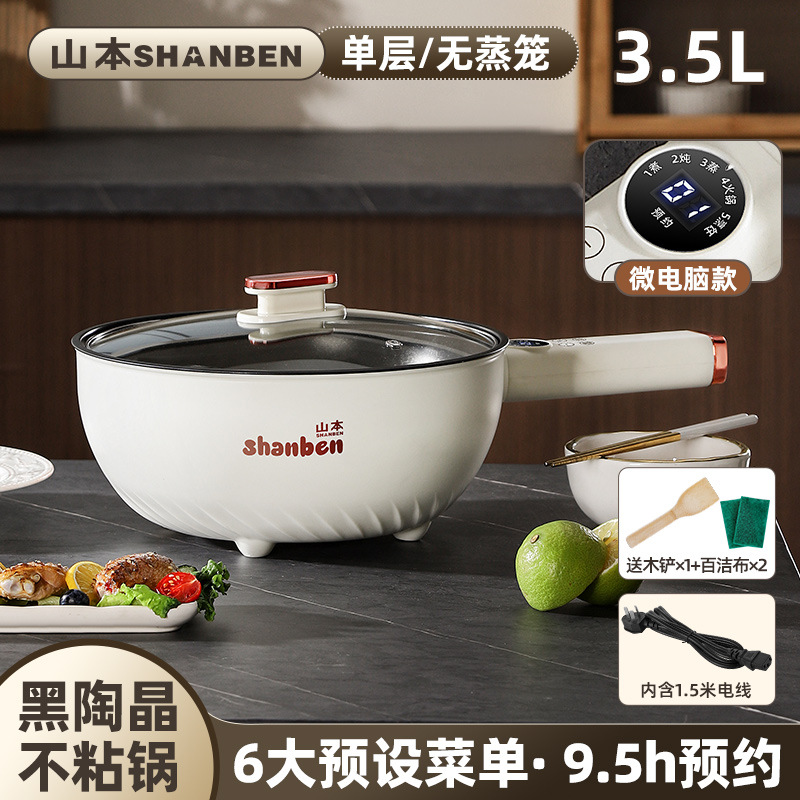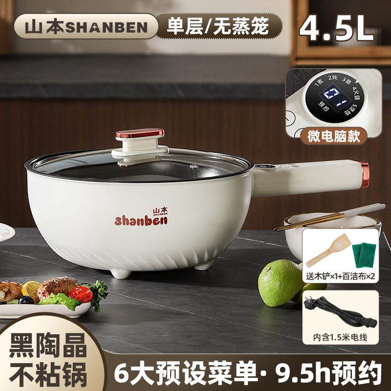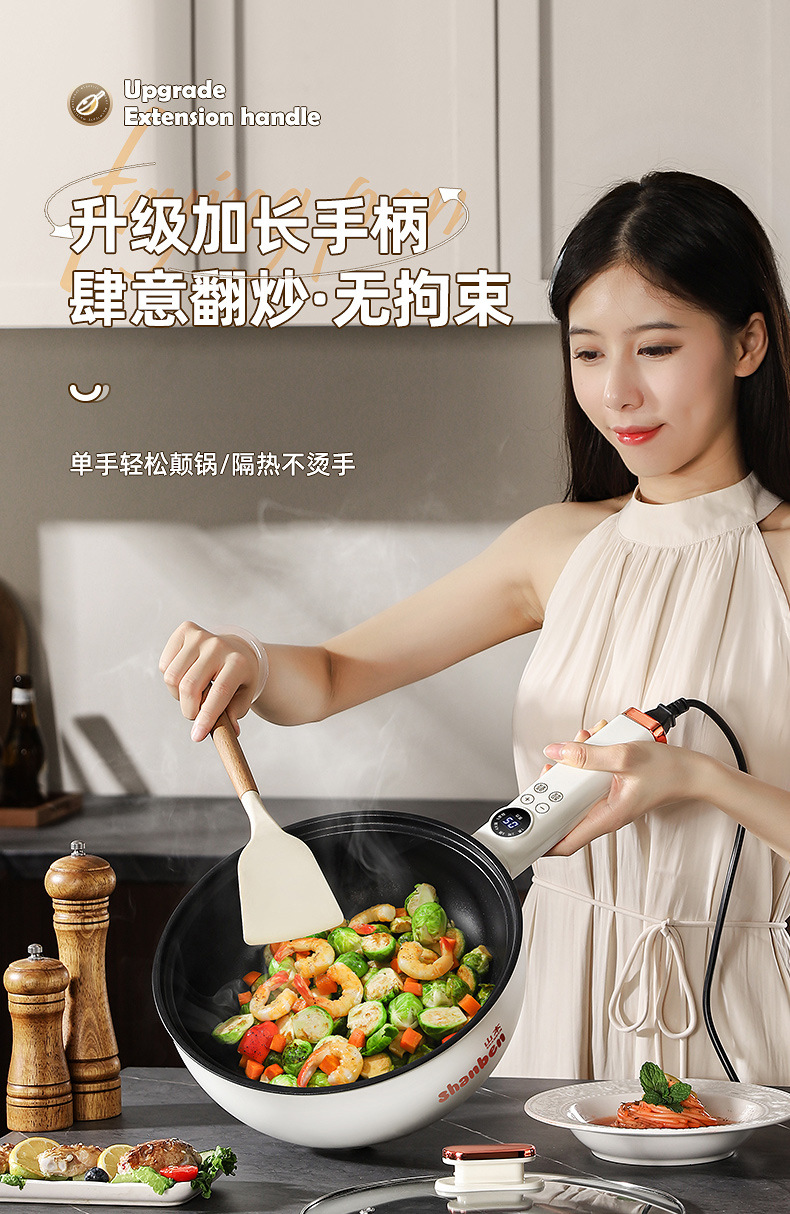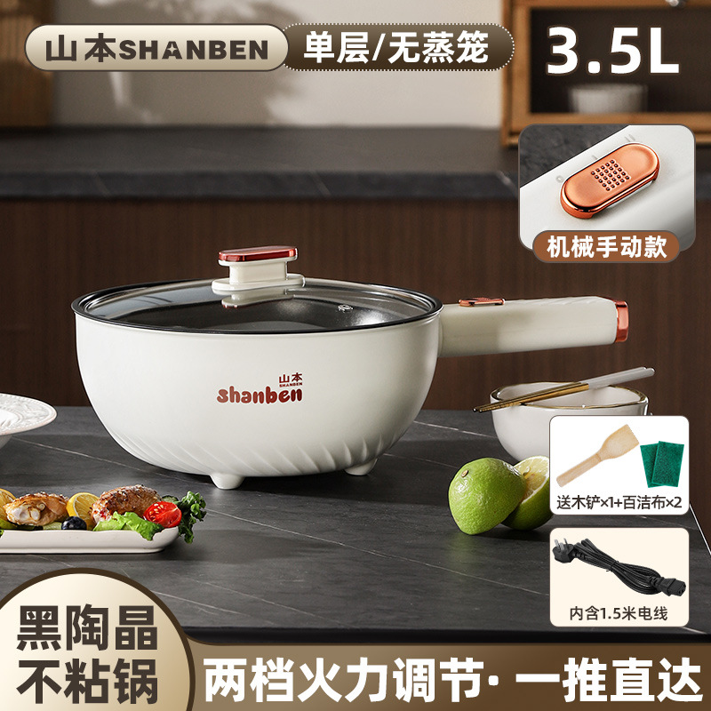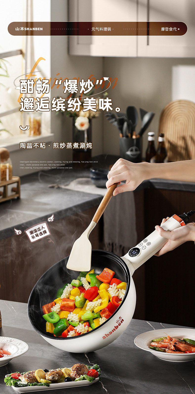 야마모토 전기 볶음 팬 가정용 다기능 통합 전기 요리 팬 전기 팬 튀김 및 김이 나는 비 스틱 팬 전기 뜨거운 냄비