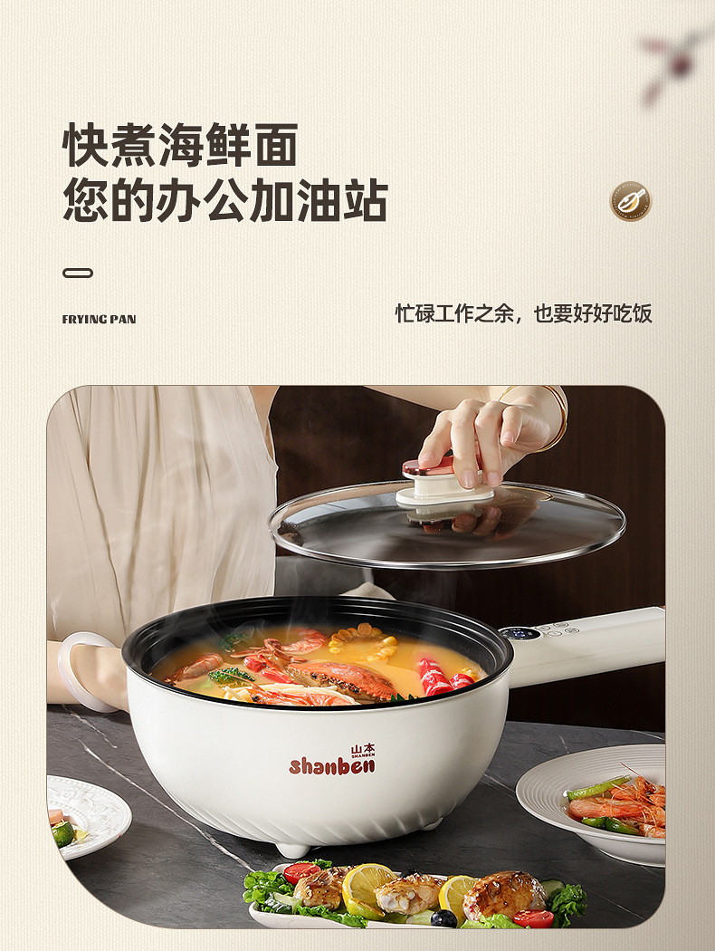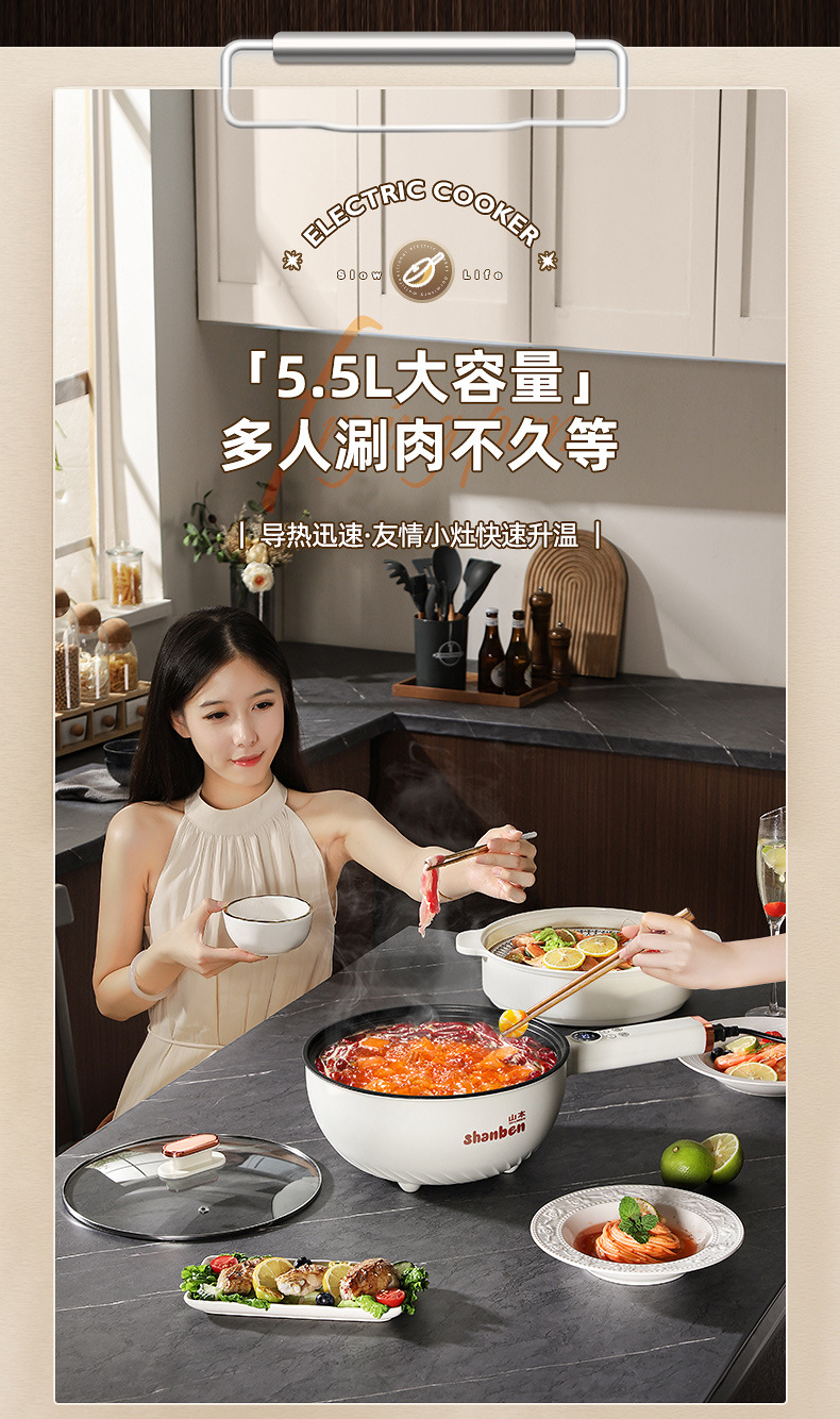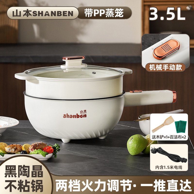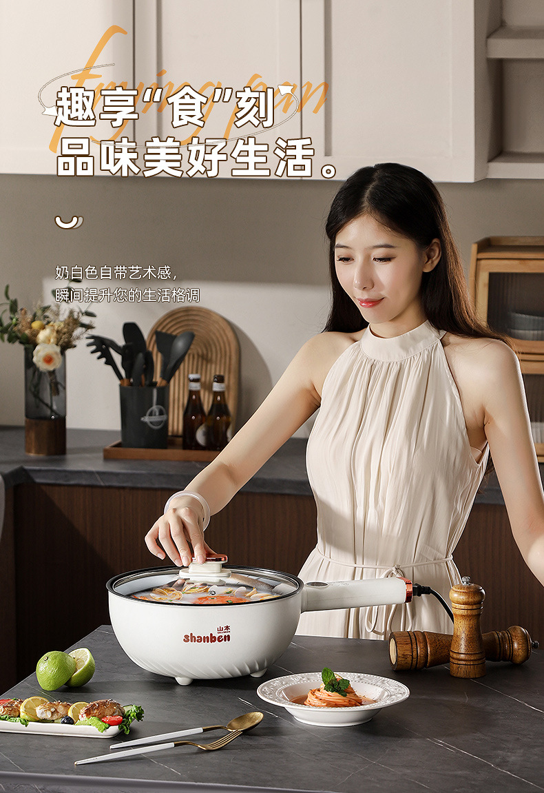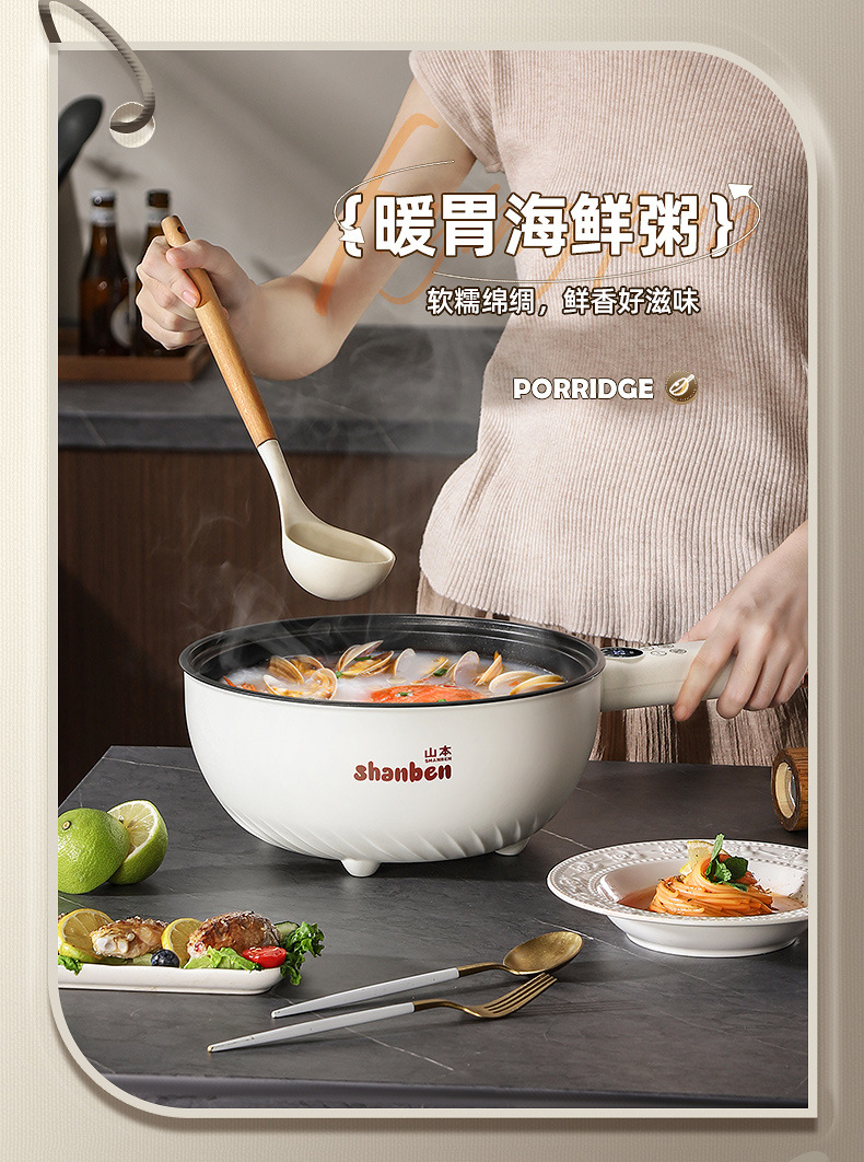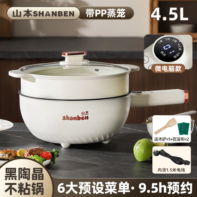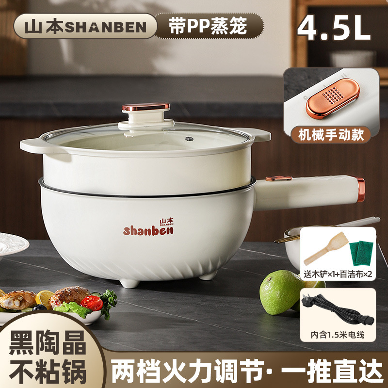 야마모토 전기 볶음 팬 가정용 다기능 통합 전기 요리 팬 전기 팬 튀김 및 김이 나는 비 스틱 팬 전기 뜨거운 냄비