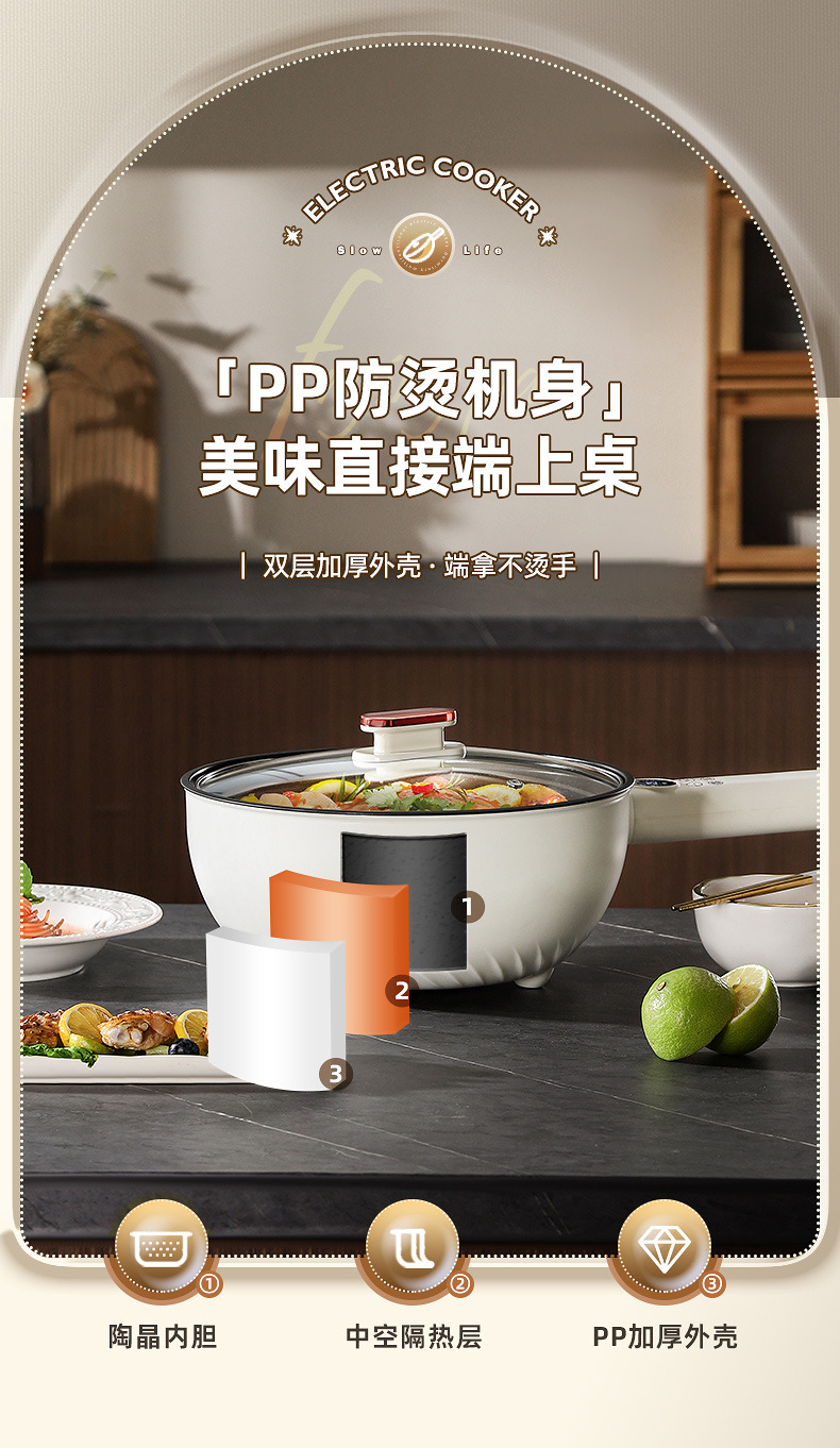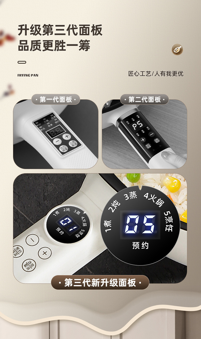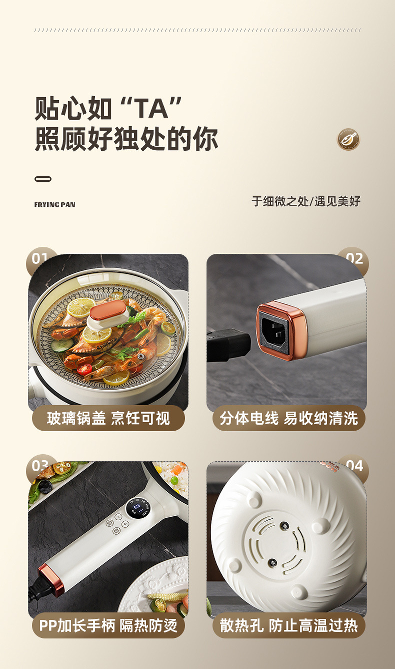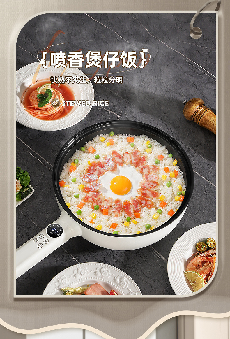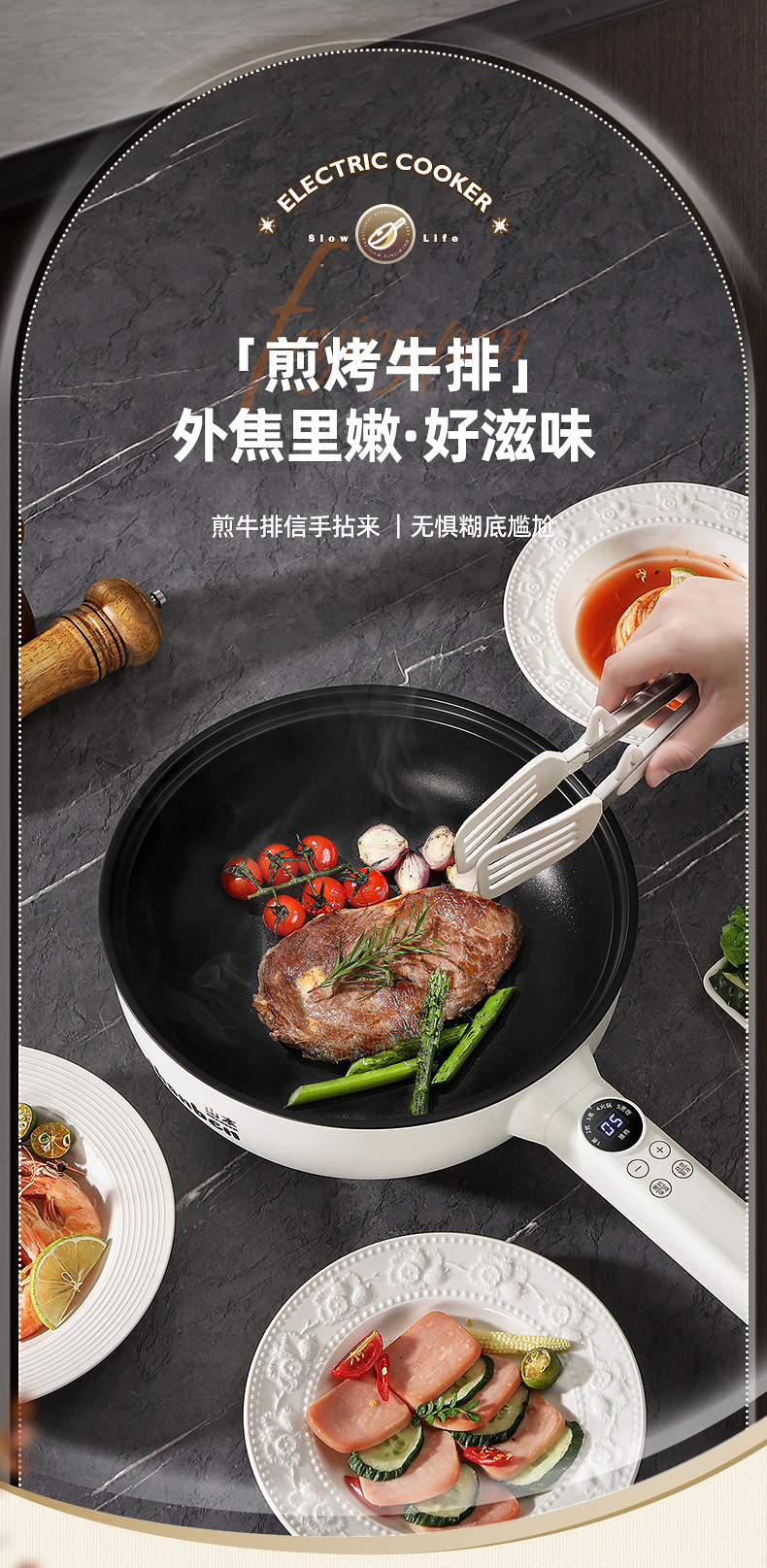 야마모토 전기 볶음 팬 가정용 다기능 통합 전기 요리 팬 전기 팬 튀김 및 김이 나는 비 스틱 팬 전기 뜨거운 냄비