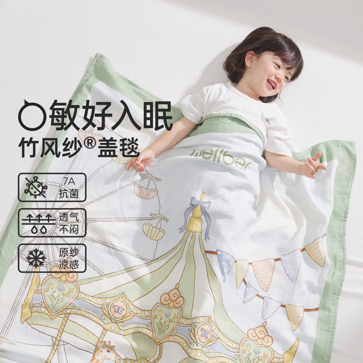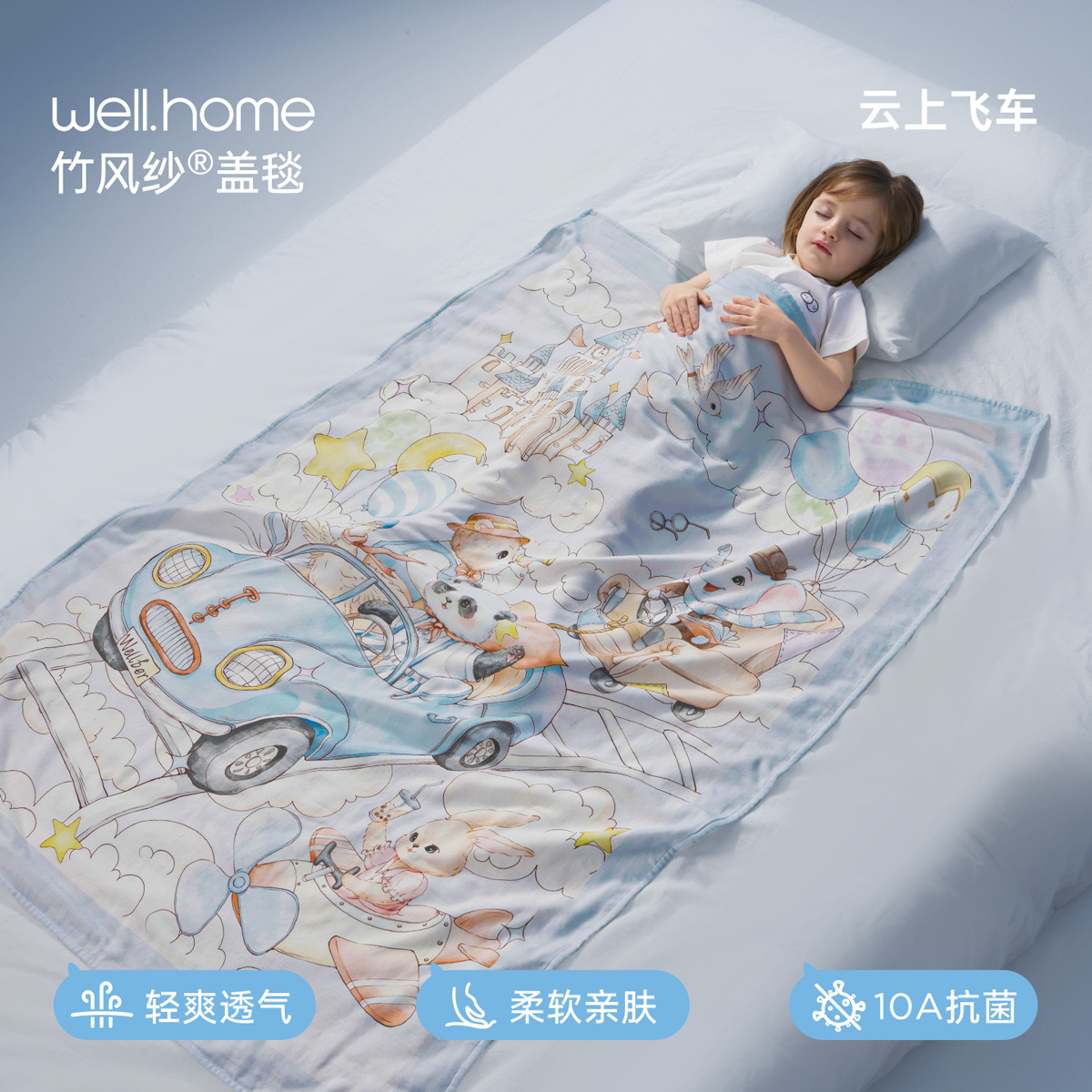 Wilberu 클래스 a 항균 통기성 아기 대나무 섬유 담요 아기 대나무 면화 거즈 이불 만화 봄, 가을스토어 가기