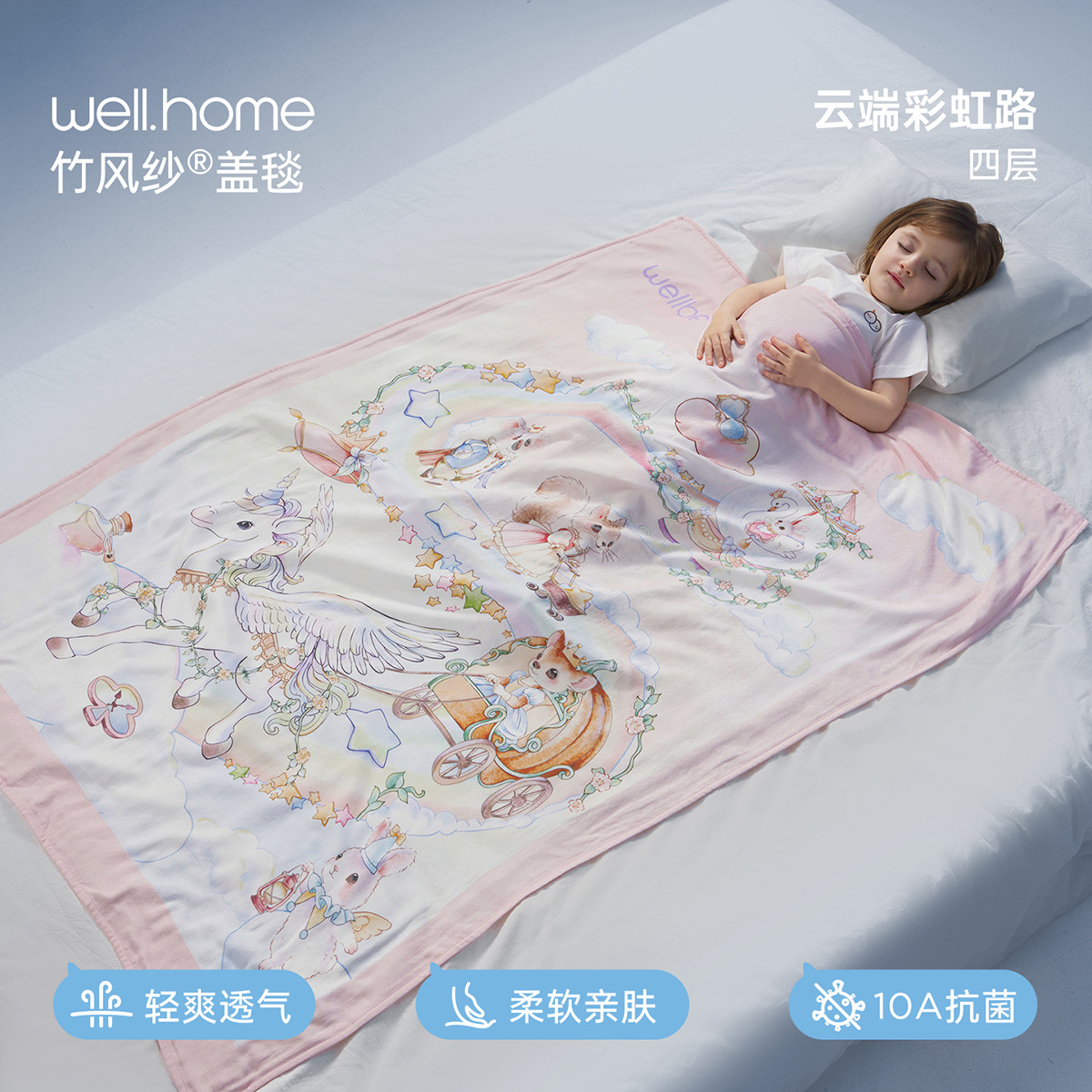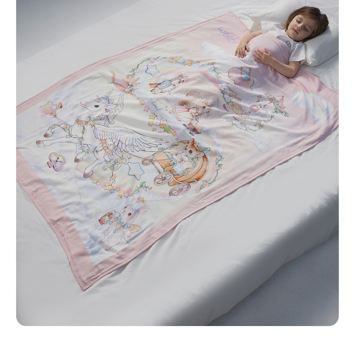Wilberu 클래스 a 항균 통기성 아기 대나무 섬유 담요 아기 대나무 면화 거즈 이불 만화 봄, 가을