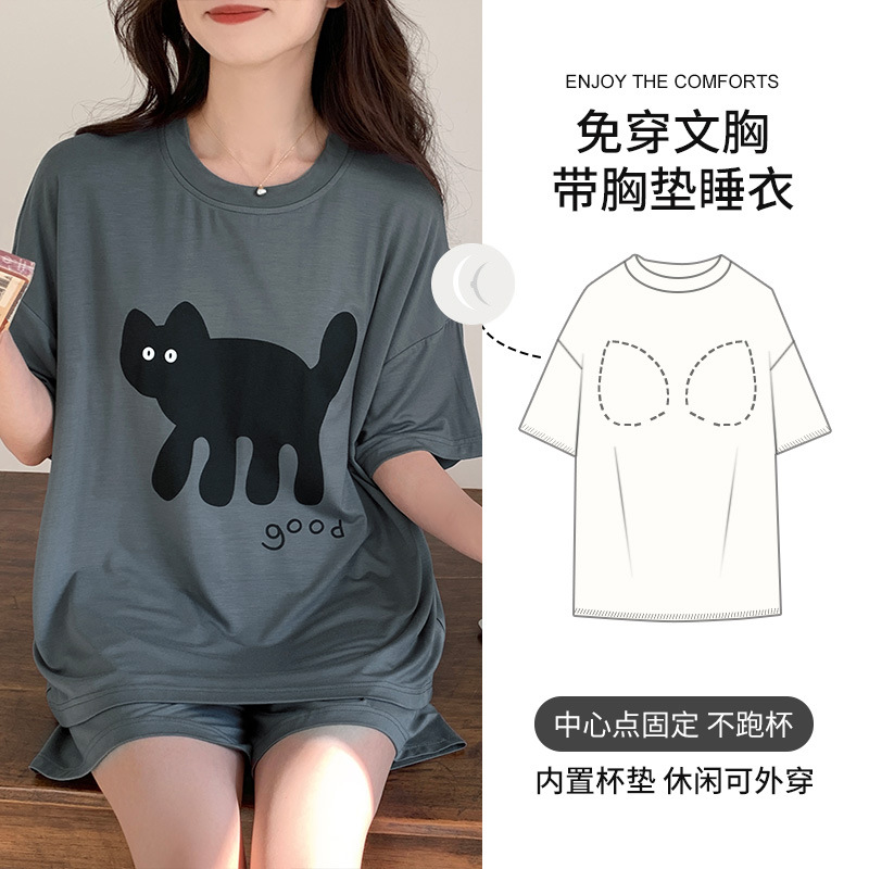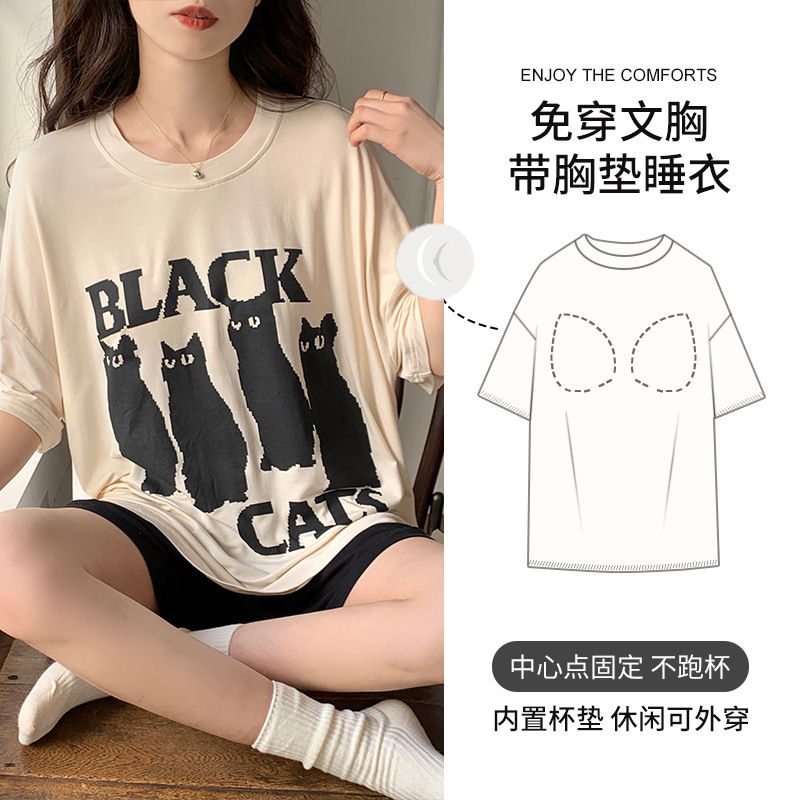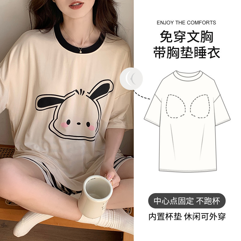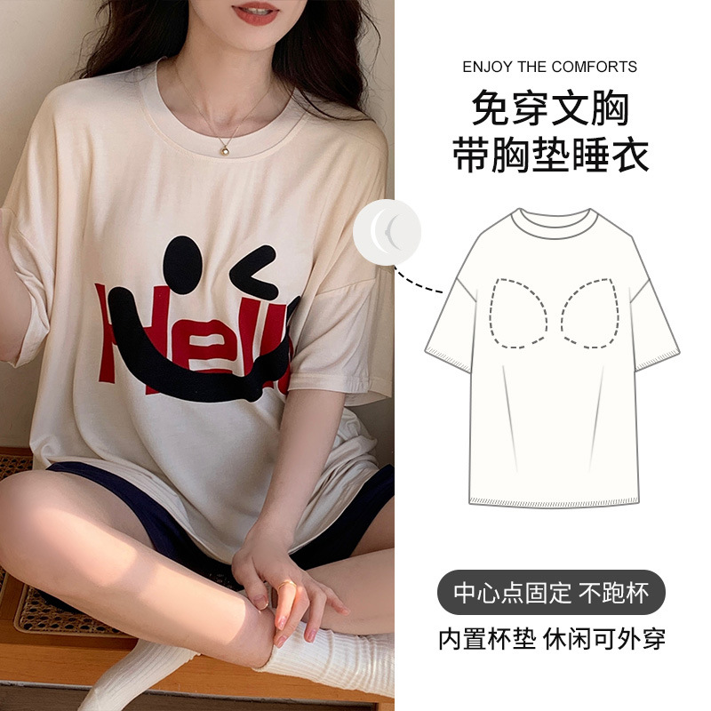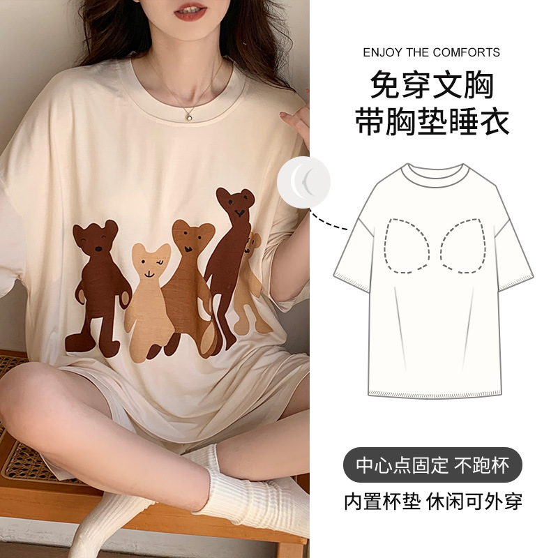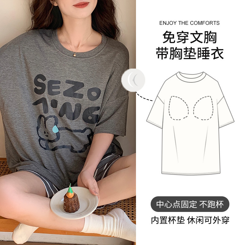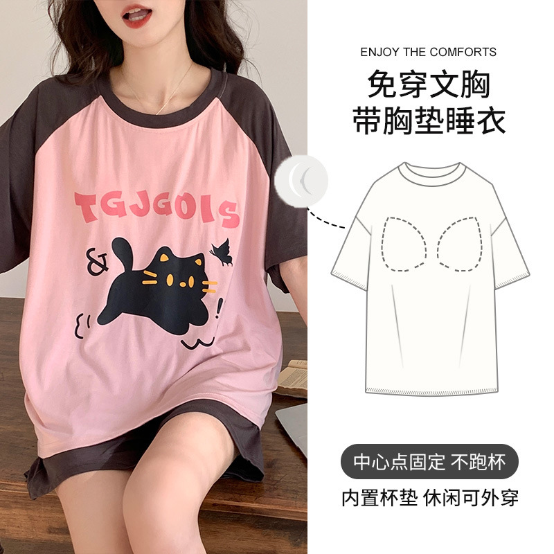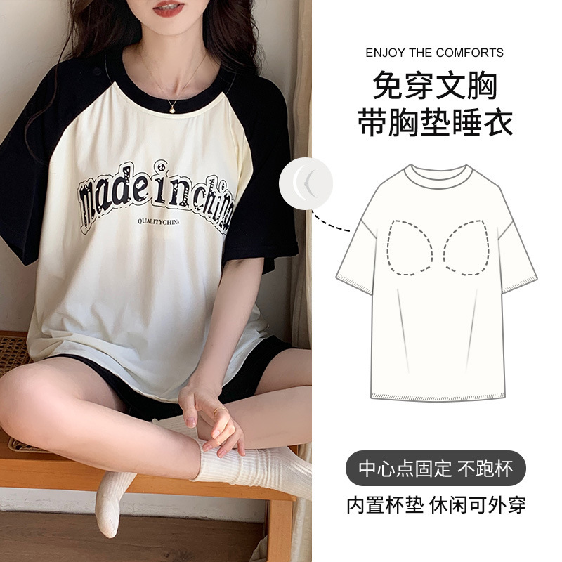 자립형 가슴 패드 잠옷 여성 반소매 브래지어없는 원피스 여름 안티 범프 중학교 학생들의 세트 입고 큰 아이들스토어 가기