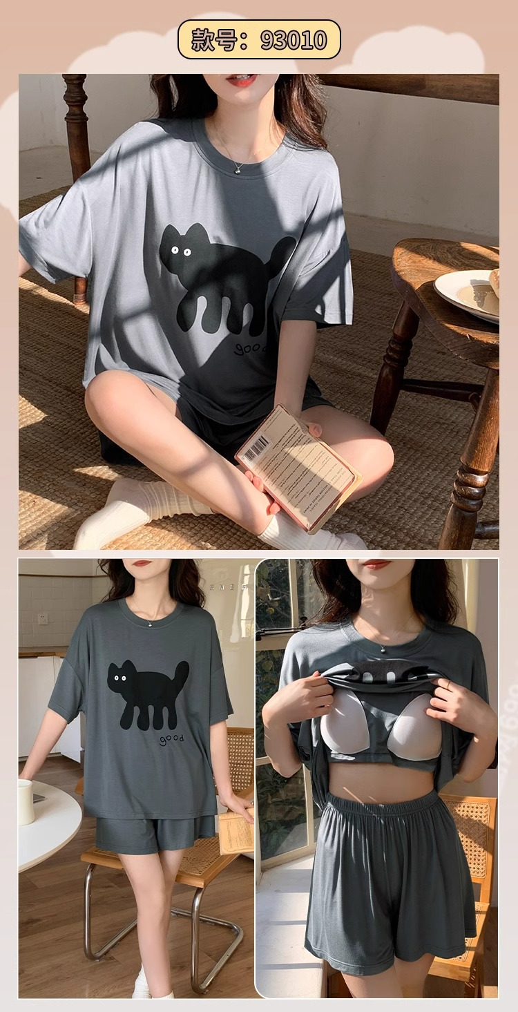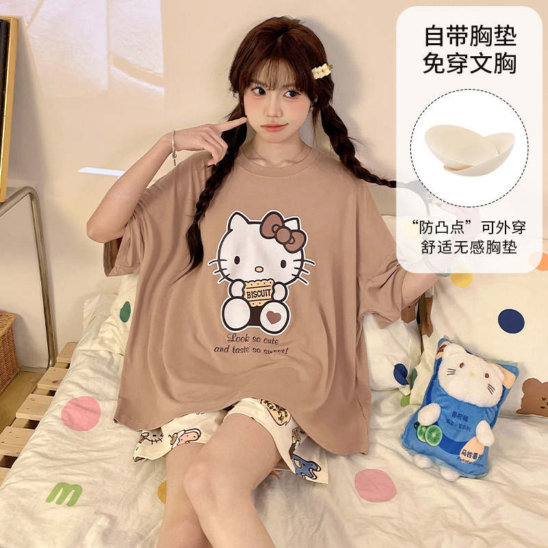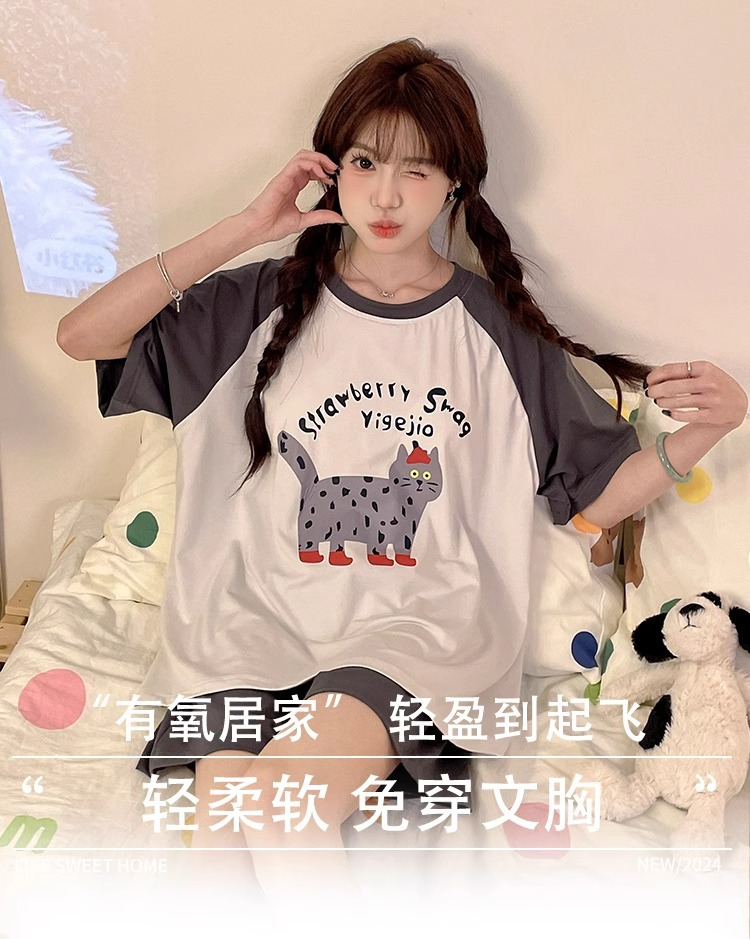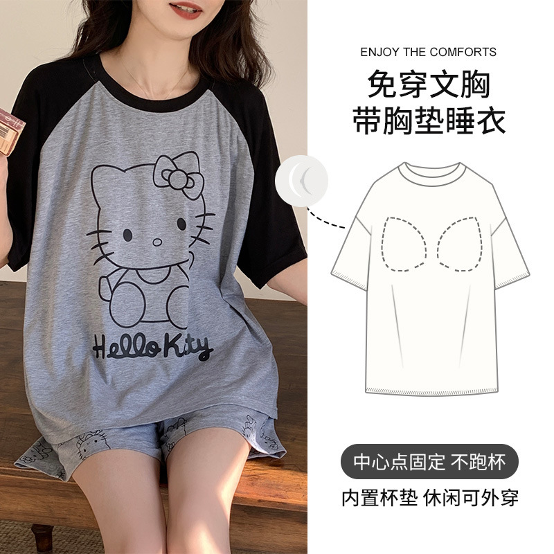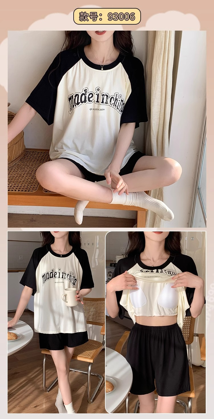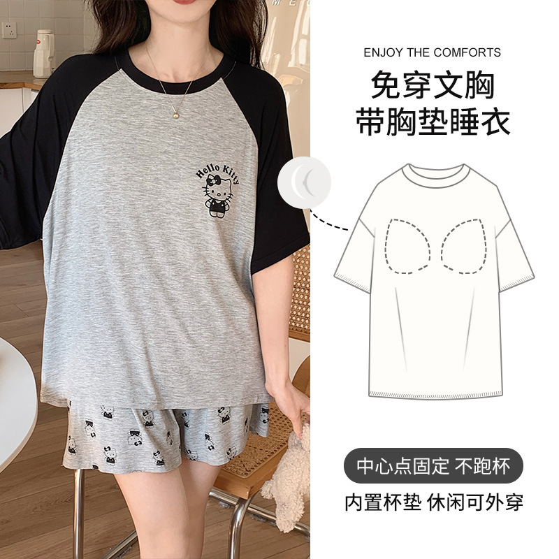 자립형 가슴 패드 잠옷 여성 반소매 브래지어없는 원피스 여름 안티 범프 중학교 학생들의 세트 입고 큰 아이들스토어 가기