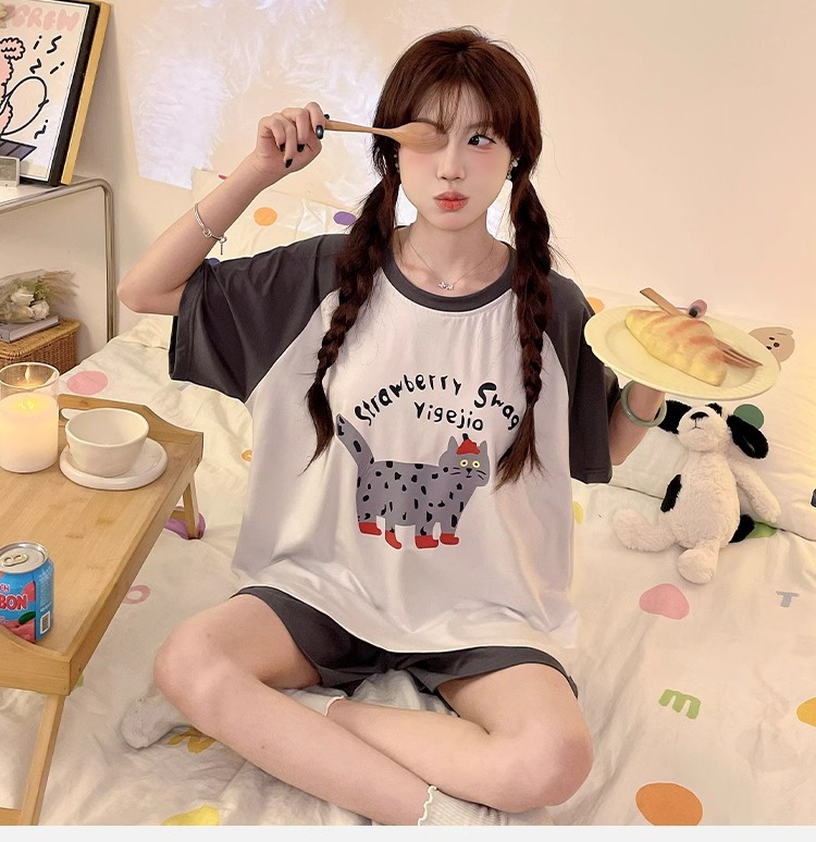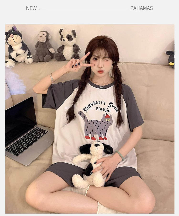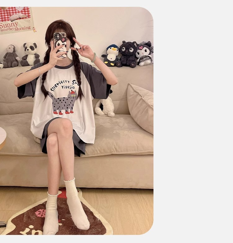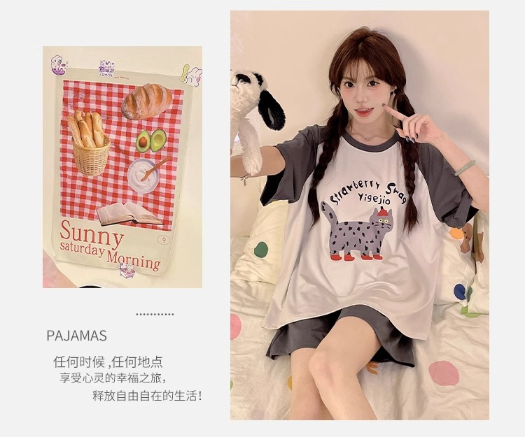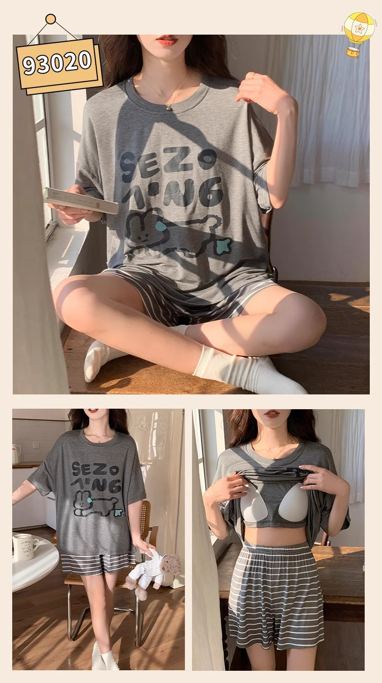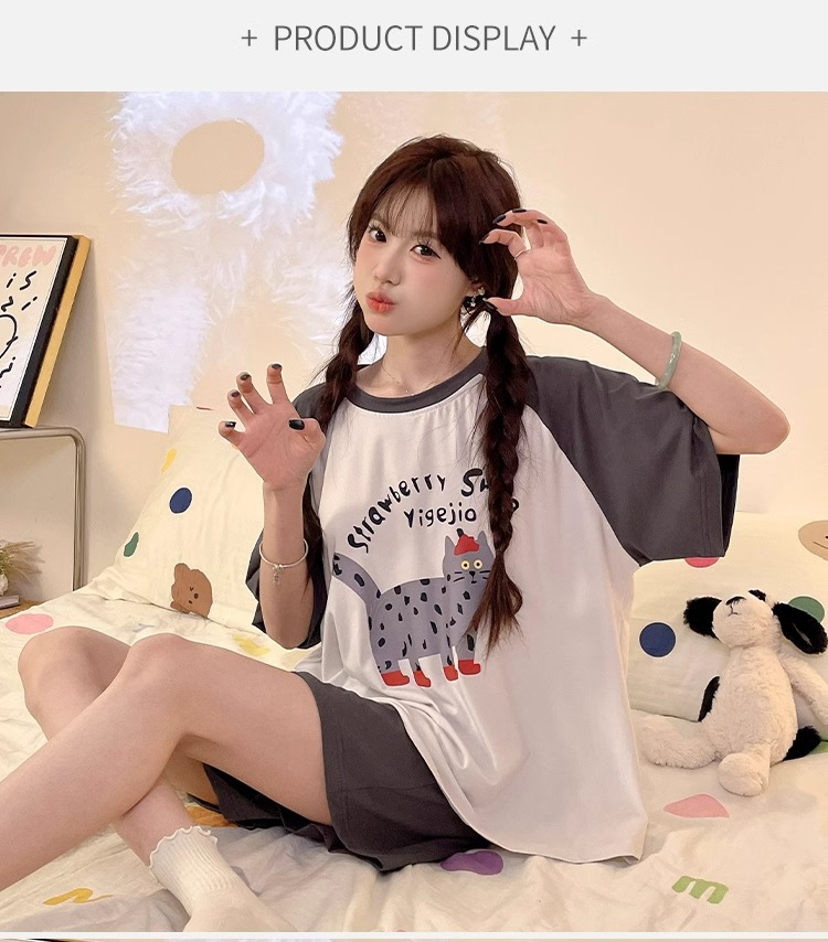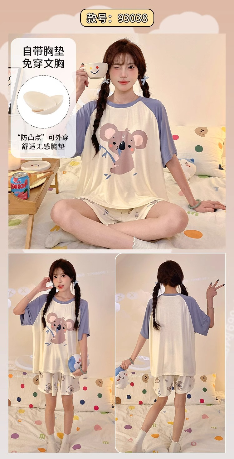 자립형 가슴 패드 잠옷 여성 반소매 브래지어없는 원피스 여름 안티 범프 중학교 학생들의 세트 입고 큰 아이들스토어 가기