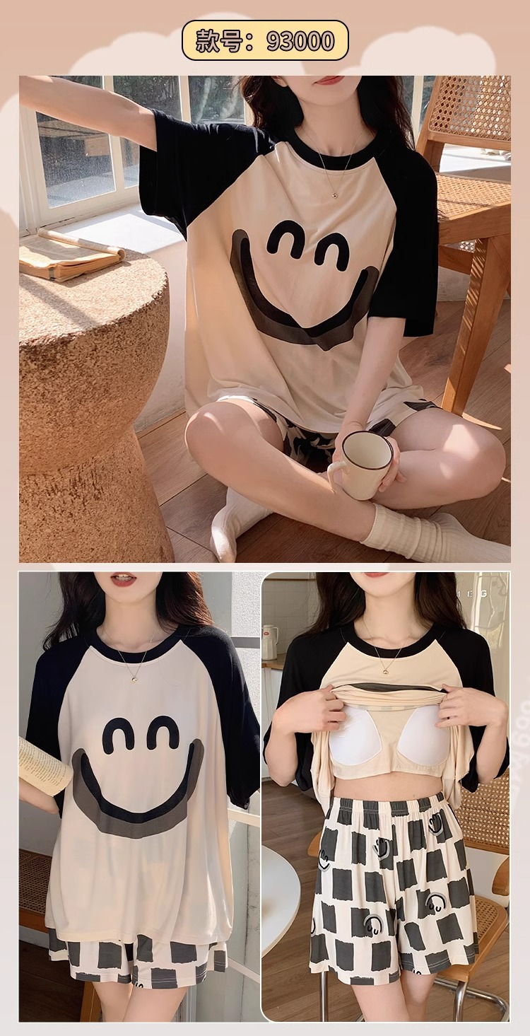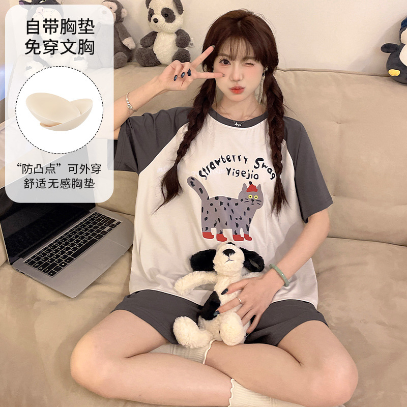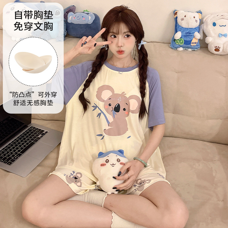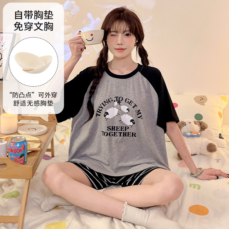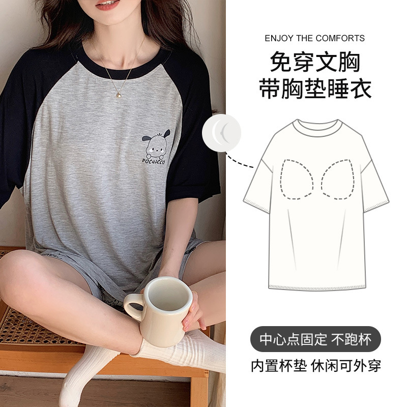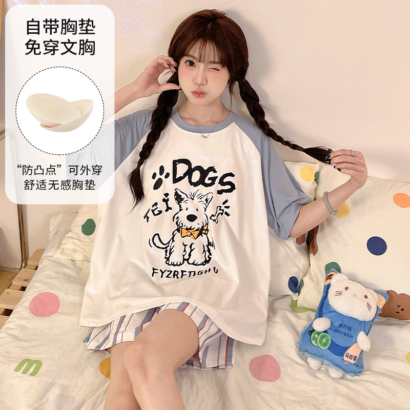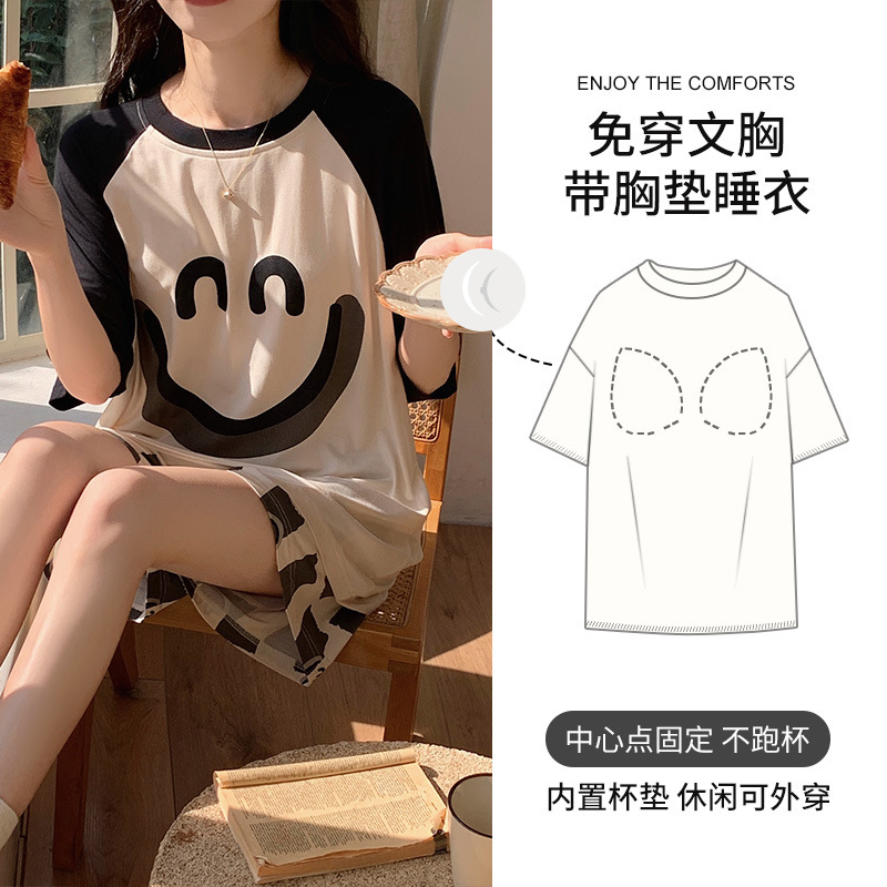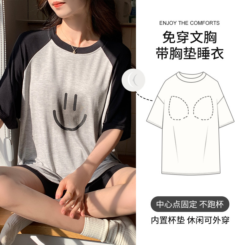 자립형 가슴 패드 잠옷 여성 반소매 브래지어없는 원피스 여름 안티 범프 중학교 학생들의 세트 입고 큰 아이들
