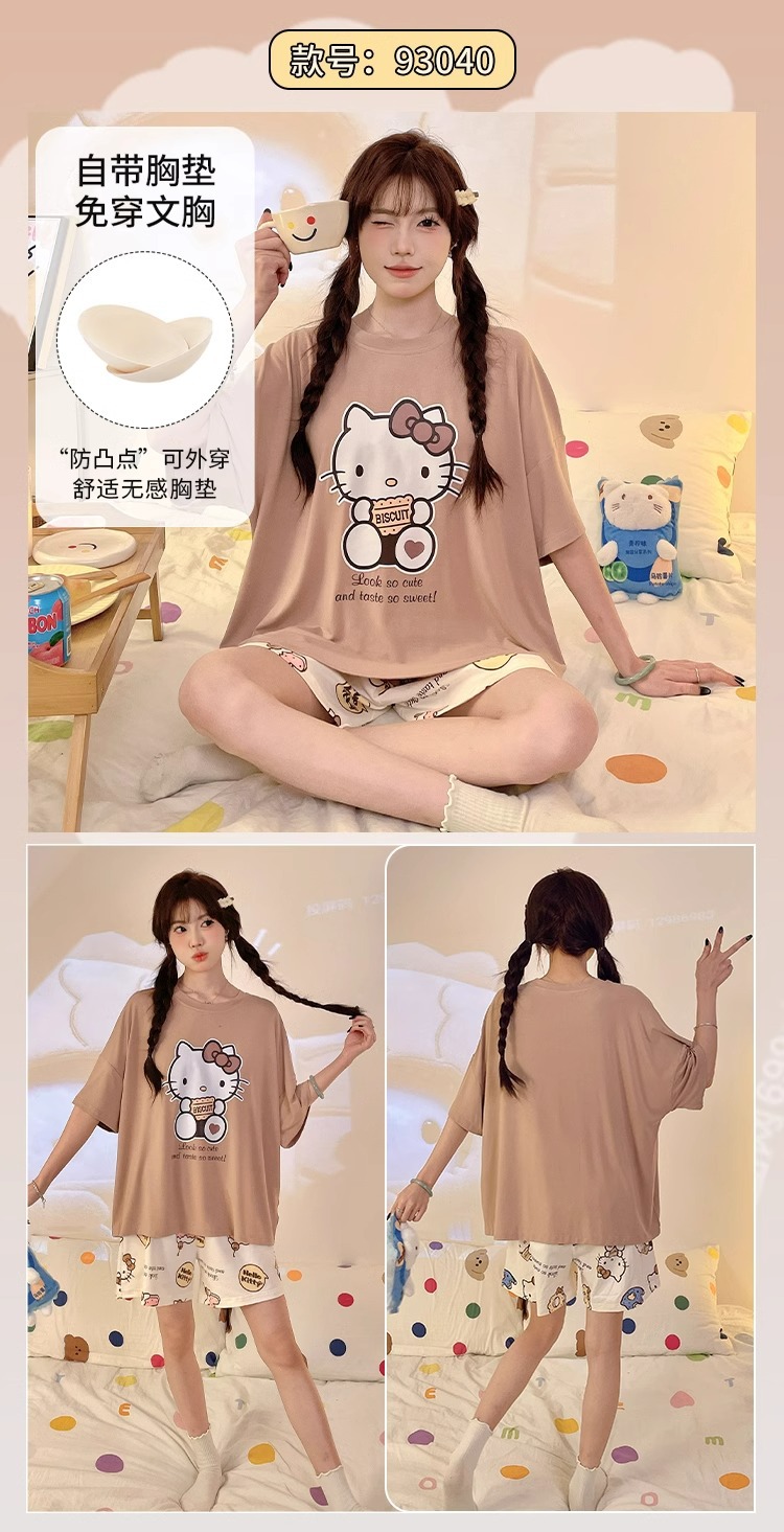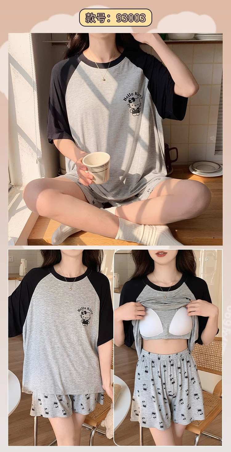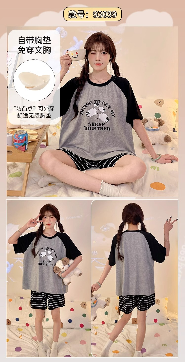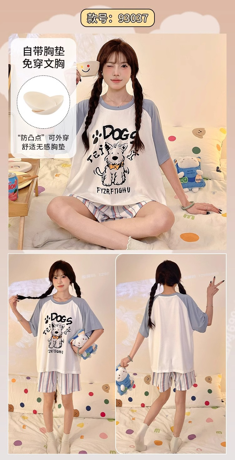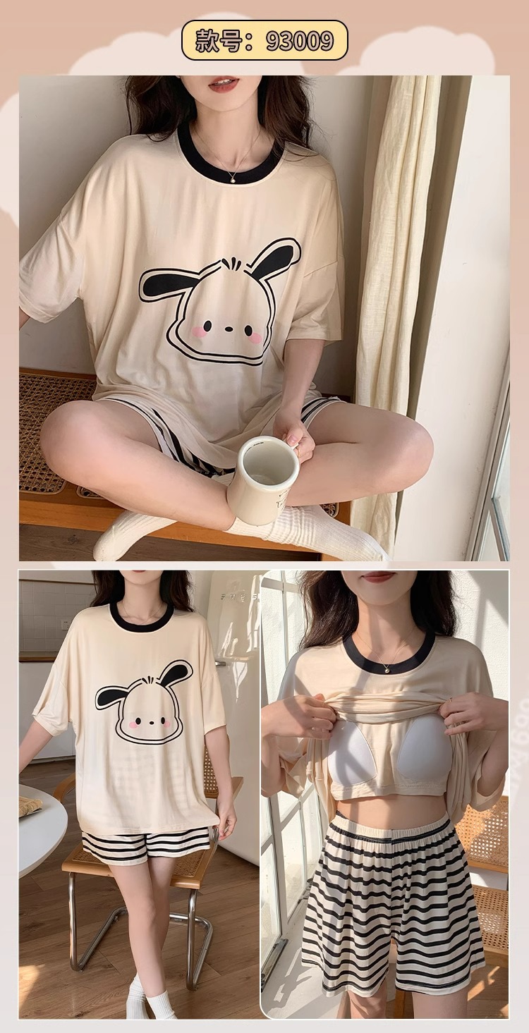 자립형 가슴 패드 잠옷 여성 반소매 브래지어없는 원피스 여름 안티 범프 중학교 학생들의 세트 입고 큰 아이들