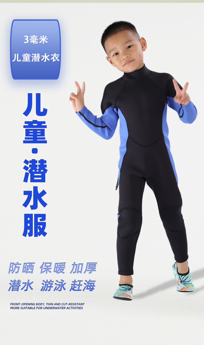 3MM 다이빙 슈트 어린이용 일체형 두꺼운 보온 방한 다이빙 슈트 청소년 스노클링 서핑 슈트 프리다이빙