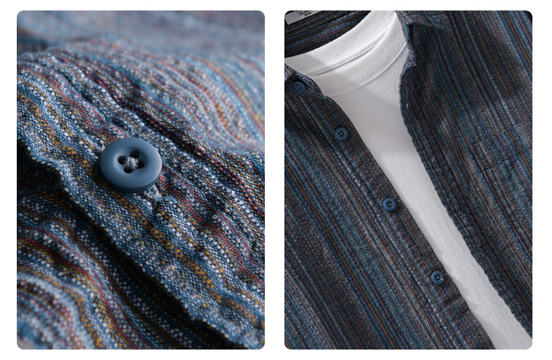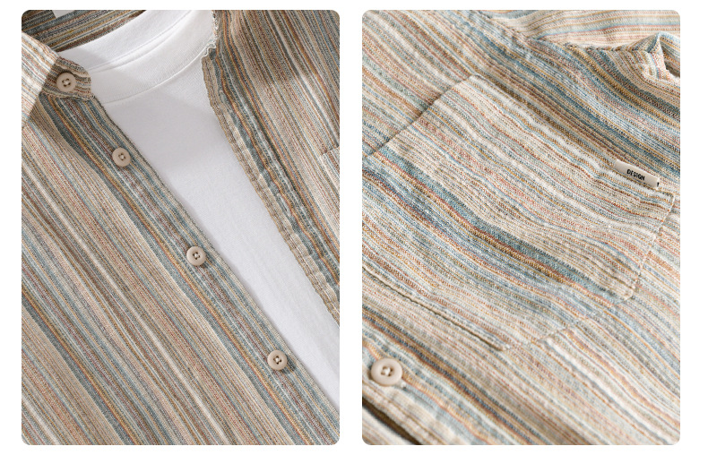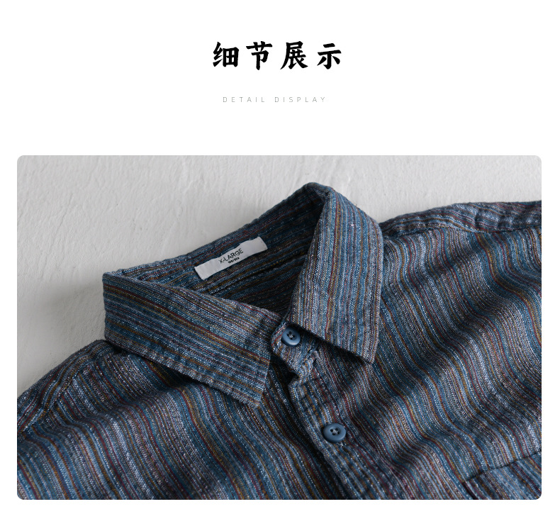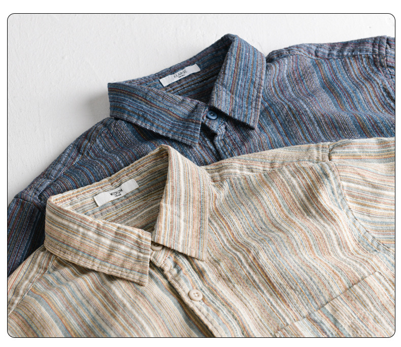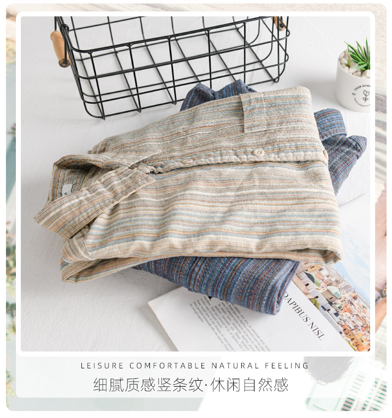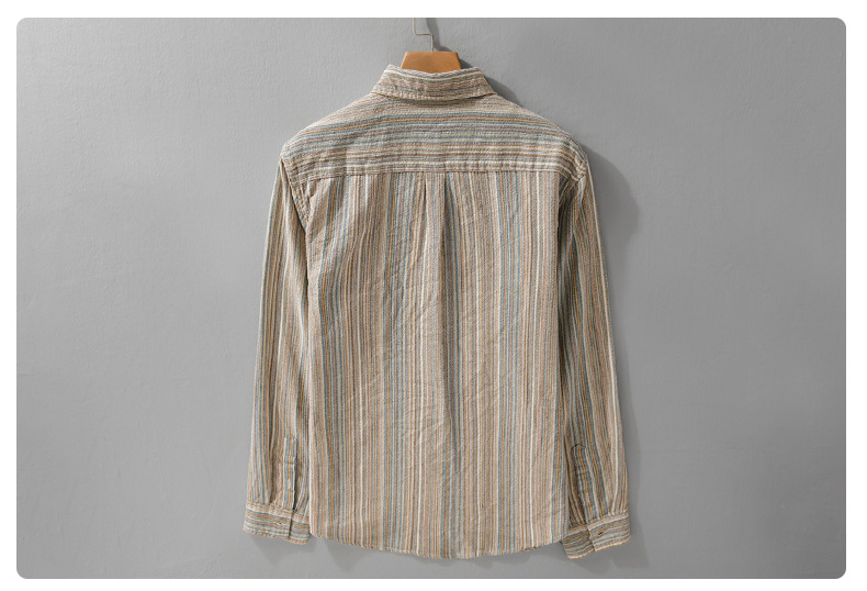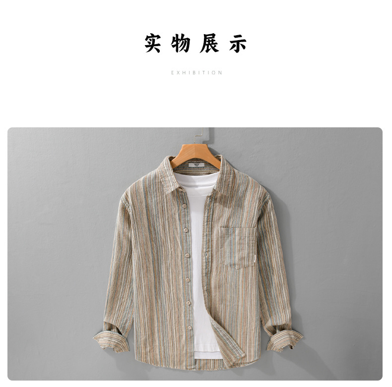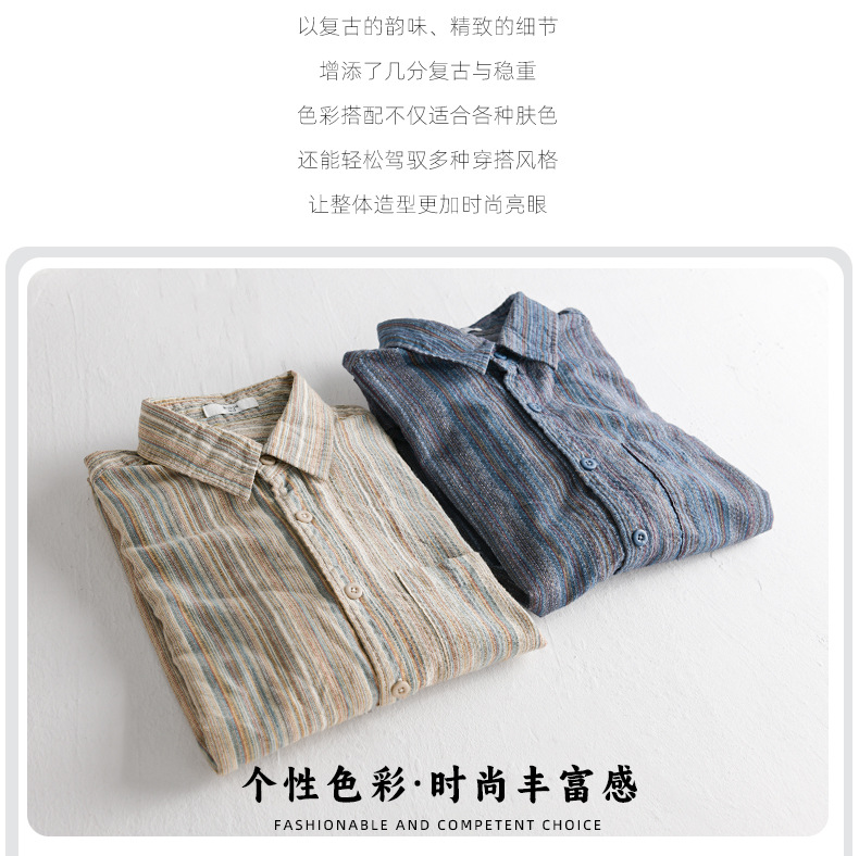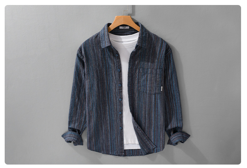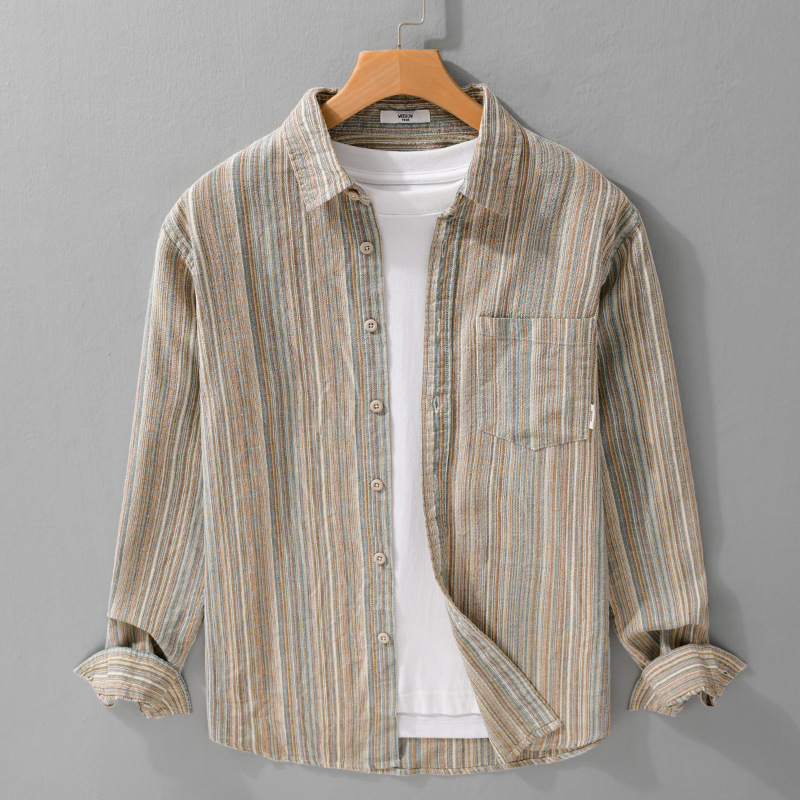 봄 남성 일본 복고풍 줄무늬 간단한 작업복 긴팔 셔츠 트렌디 캐주얼 루즈 인기 남성 셔츠 6158