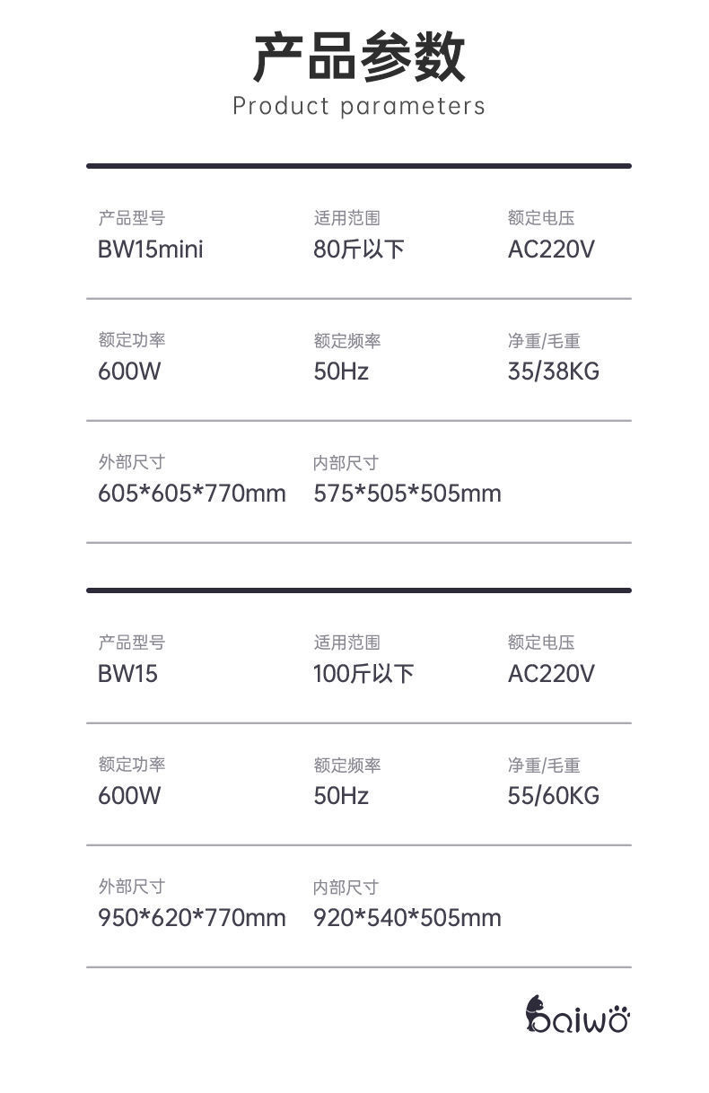 • BW15( 50kg에 적용 가능)