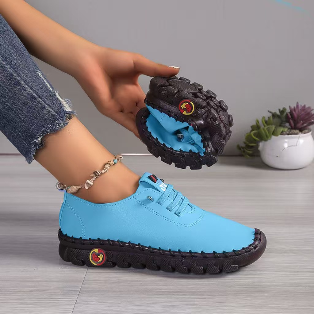 2025 년 국경 간 대외 무역 봉합 고무 단독 신발 여성의 부드러운 바닥 부드러운 가죽 어머니 신발 플러스 사이즈 35-45 여성 신발 도매