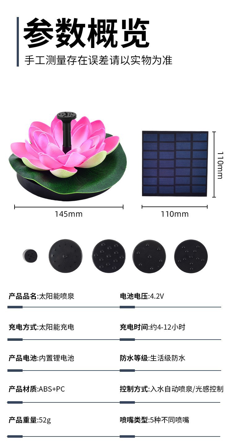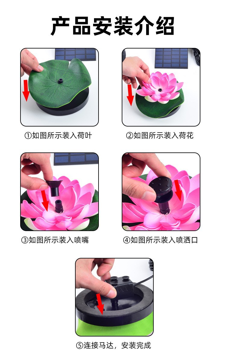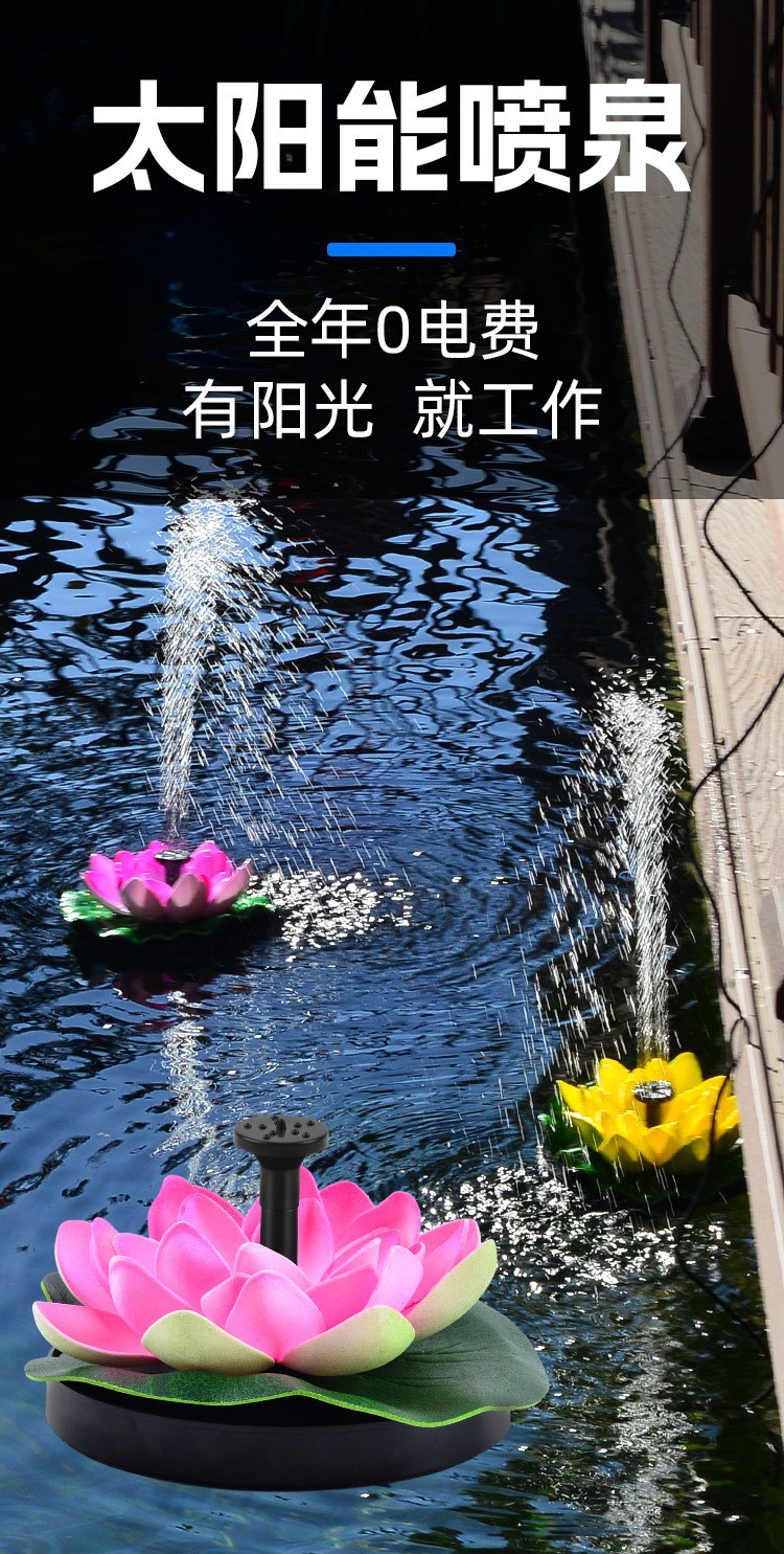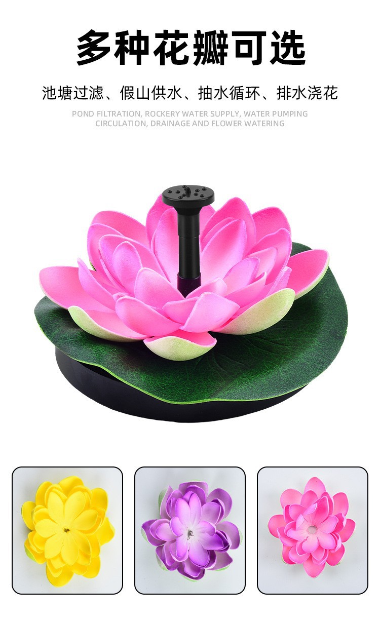 태양광 연꽃 조명 분수, 전선 연결 야경 정원 분수 장식품