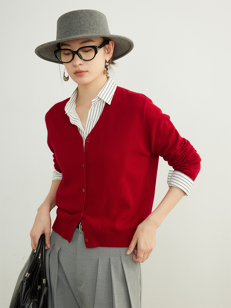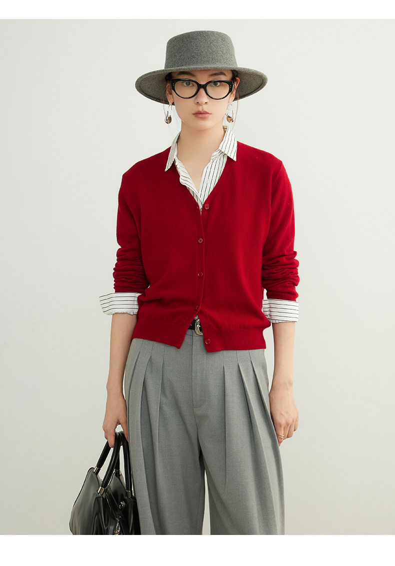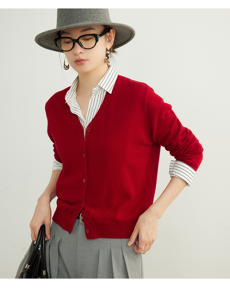 심플한 100% 울 가디건 V넥 니트 자켓 여성복 26 신상 슬림핏 스웨터 아우터 다용도 초봄 상의